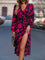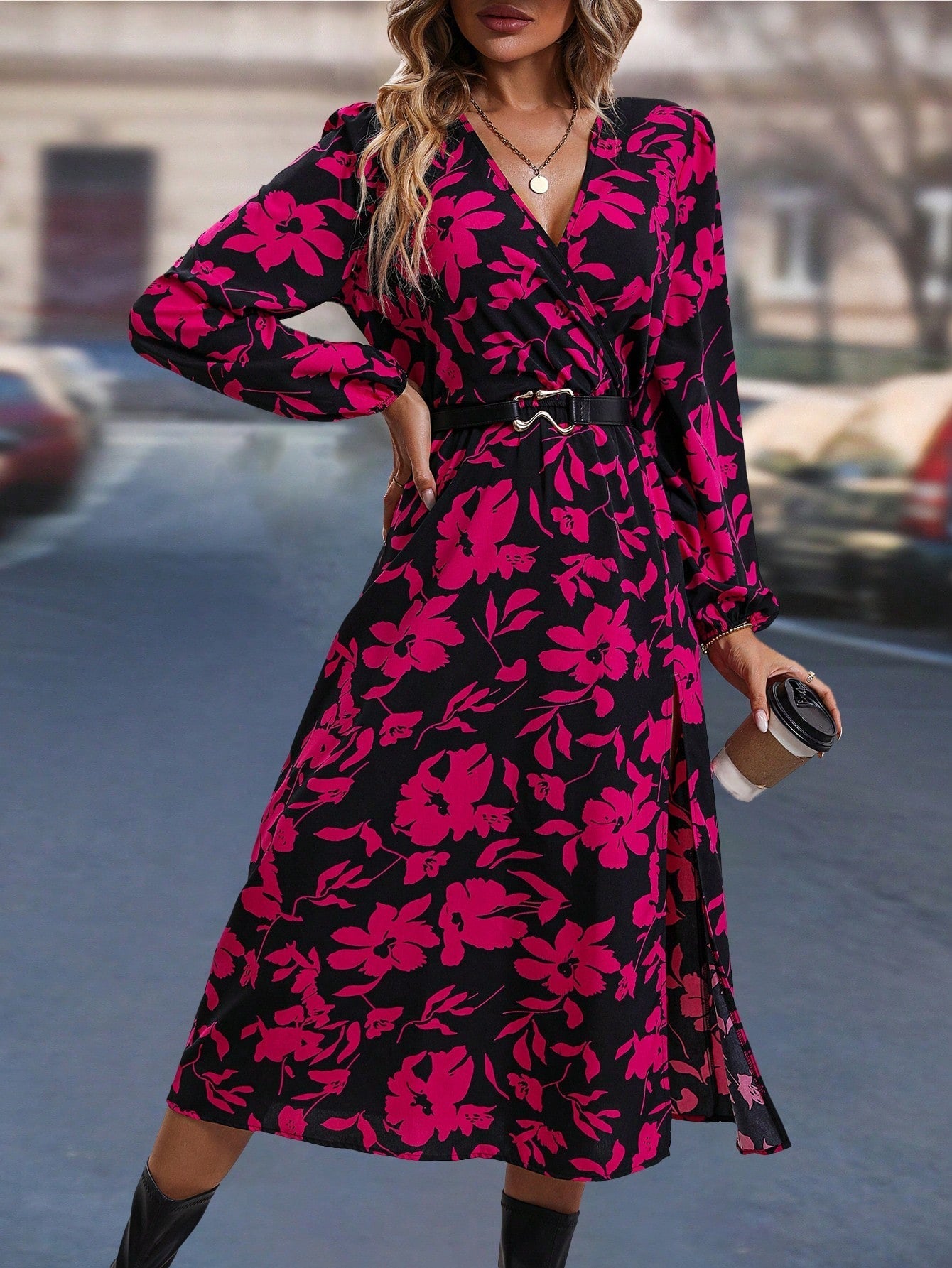 Abito lungo da donna con stampa floreale, maniche a lanterna e spacco laterale sulla coscia