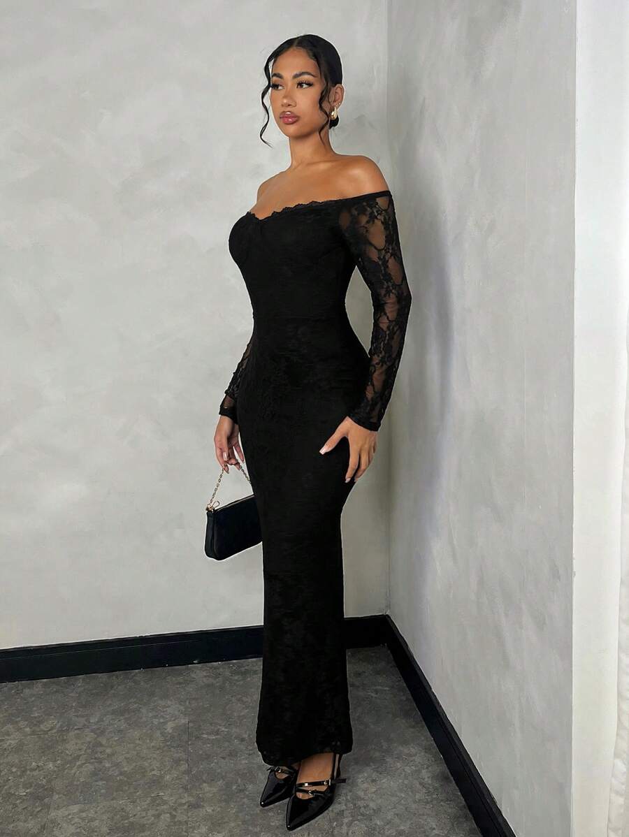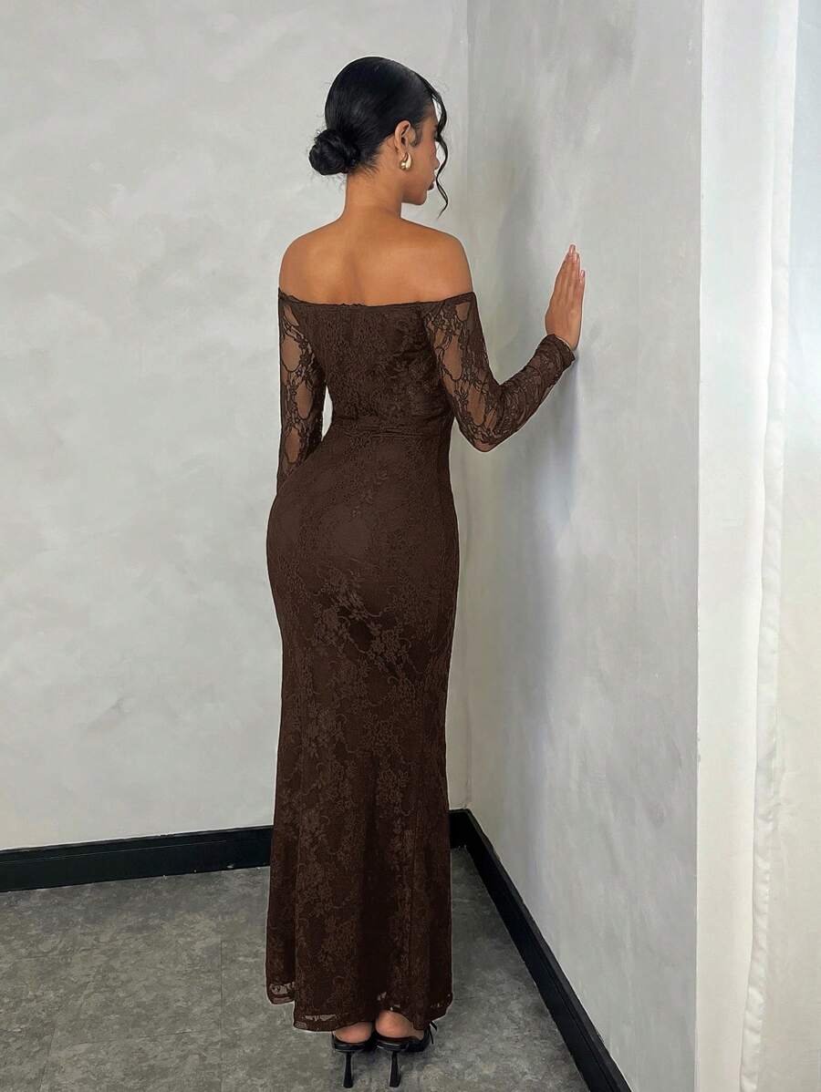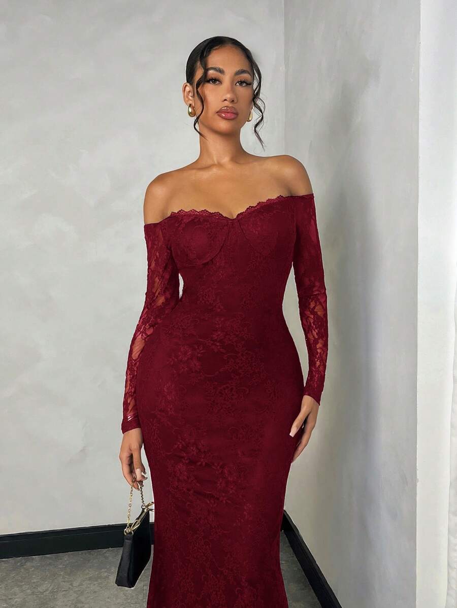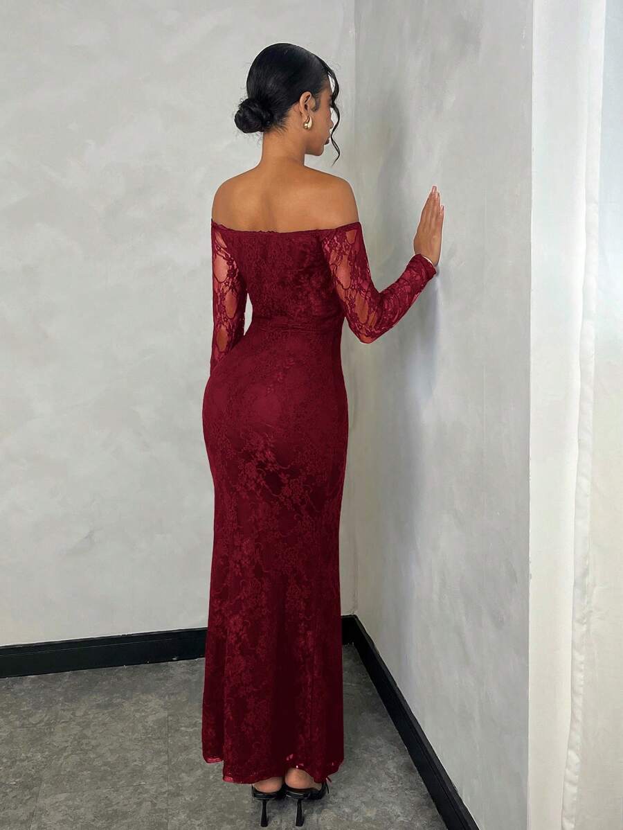 Abito da festa stile sirena slim fit in pizzo con spalle scoperte