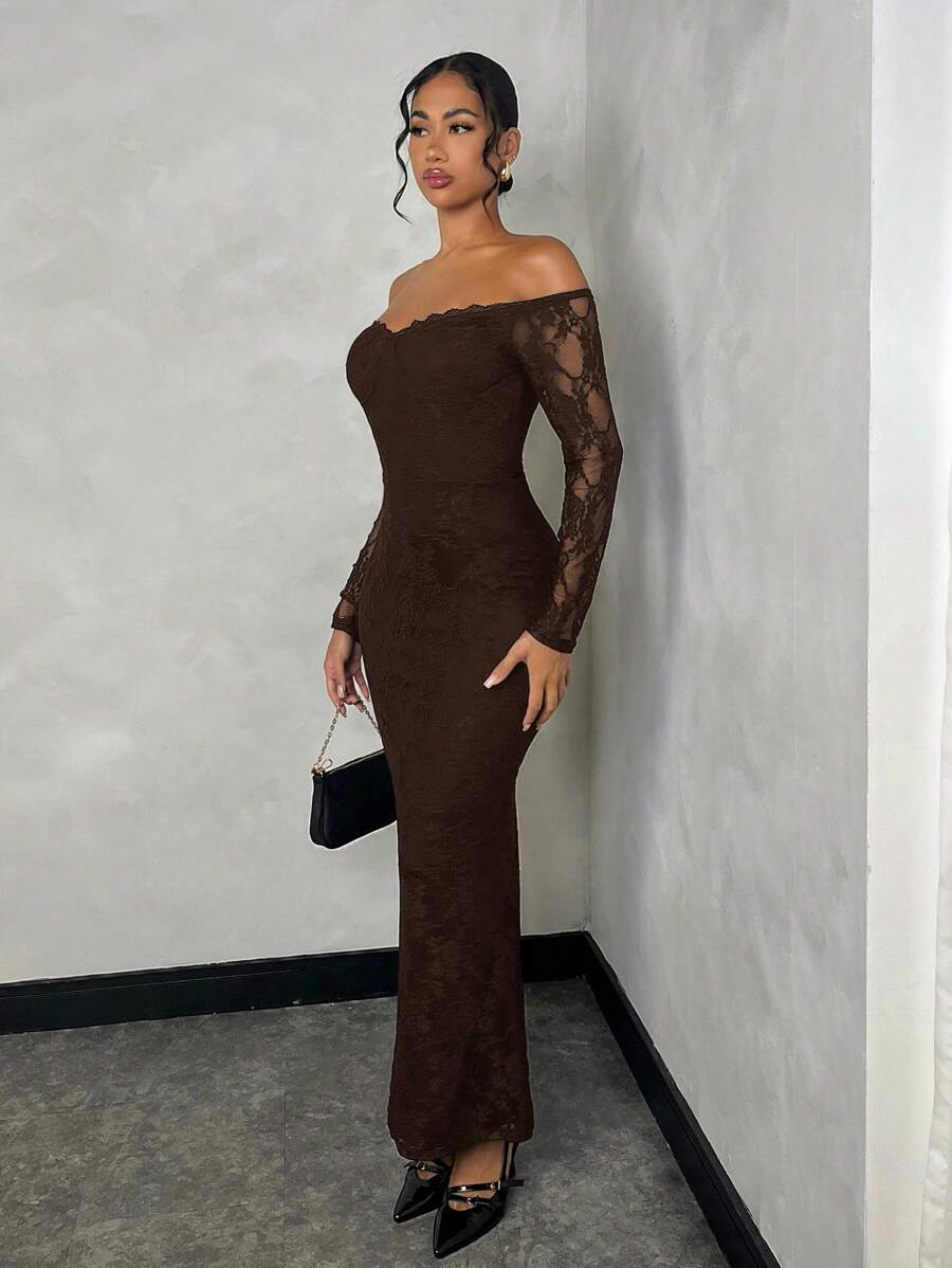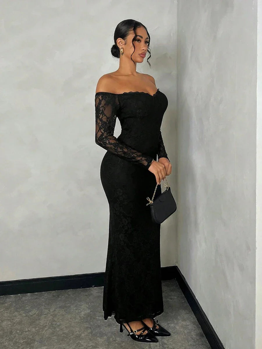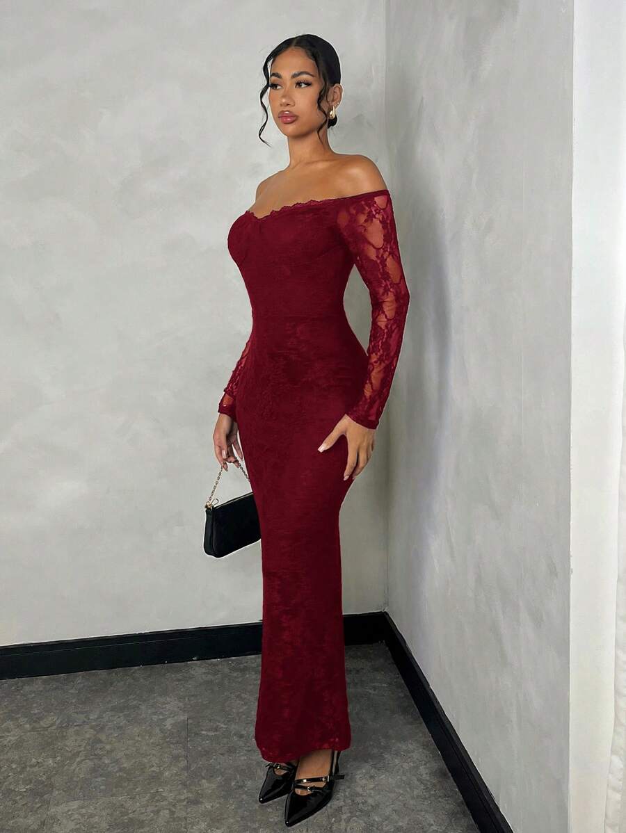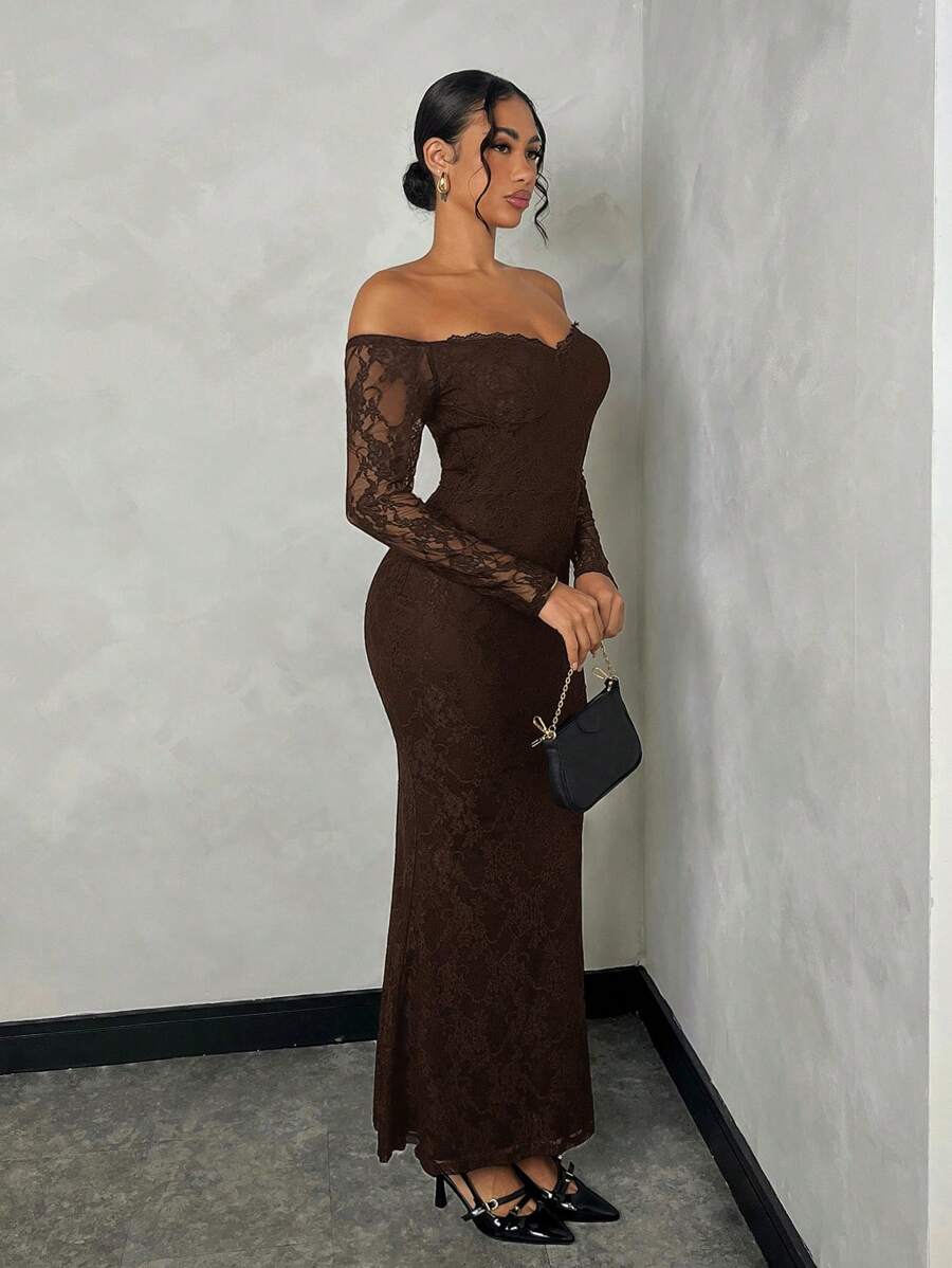Abito da festa stile sirena slim fit in pizzo con spalle scoperte