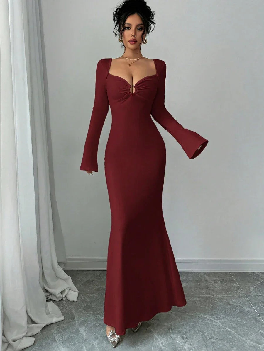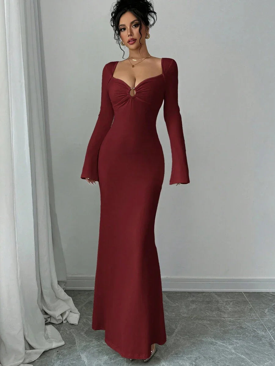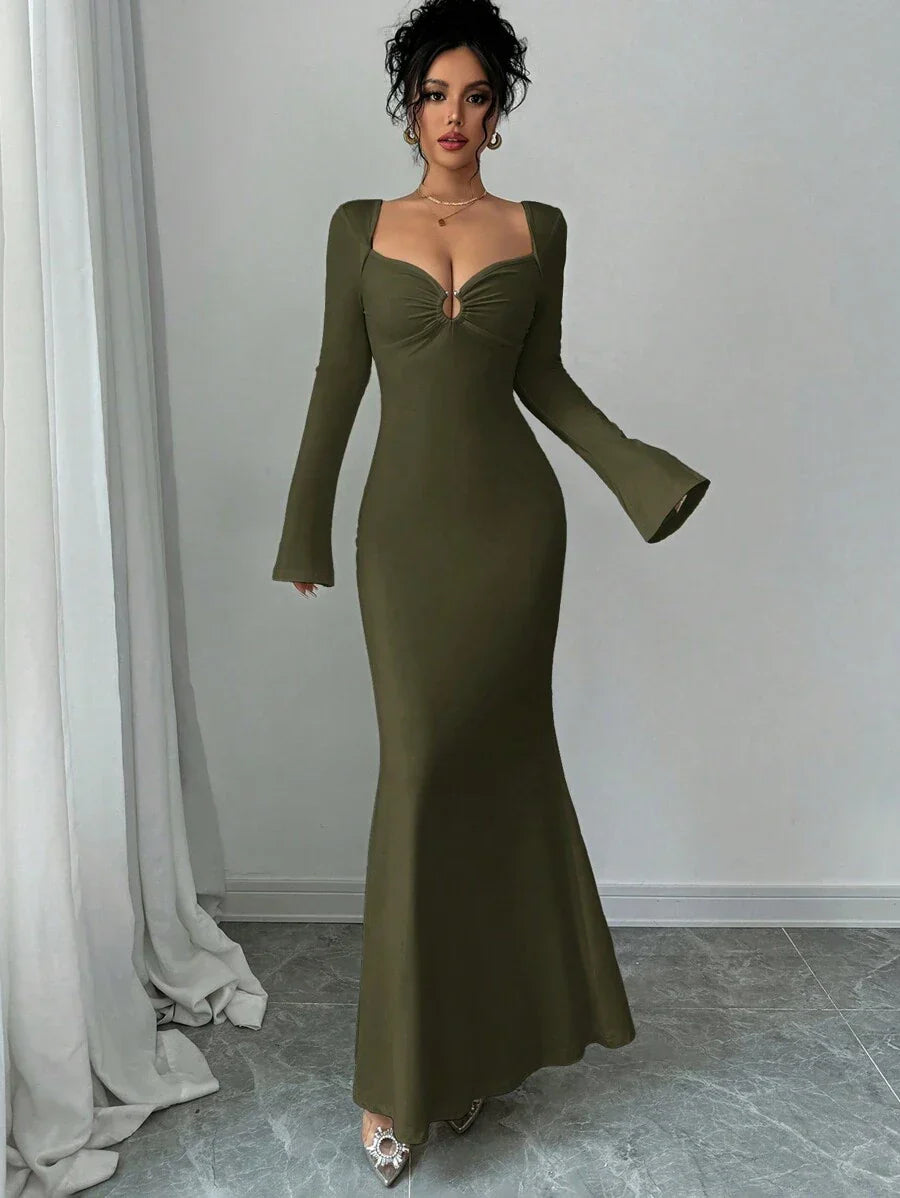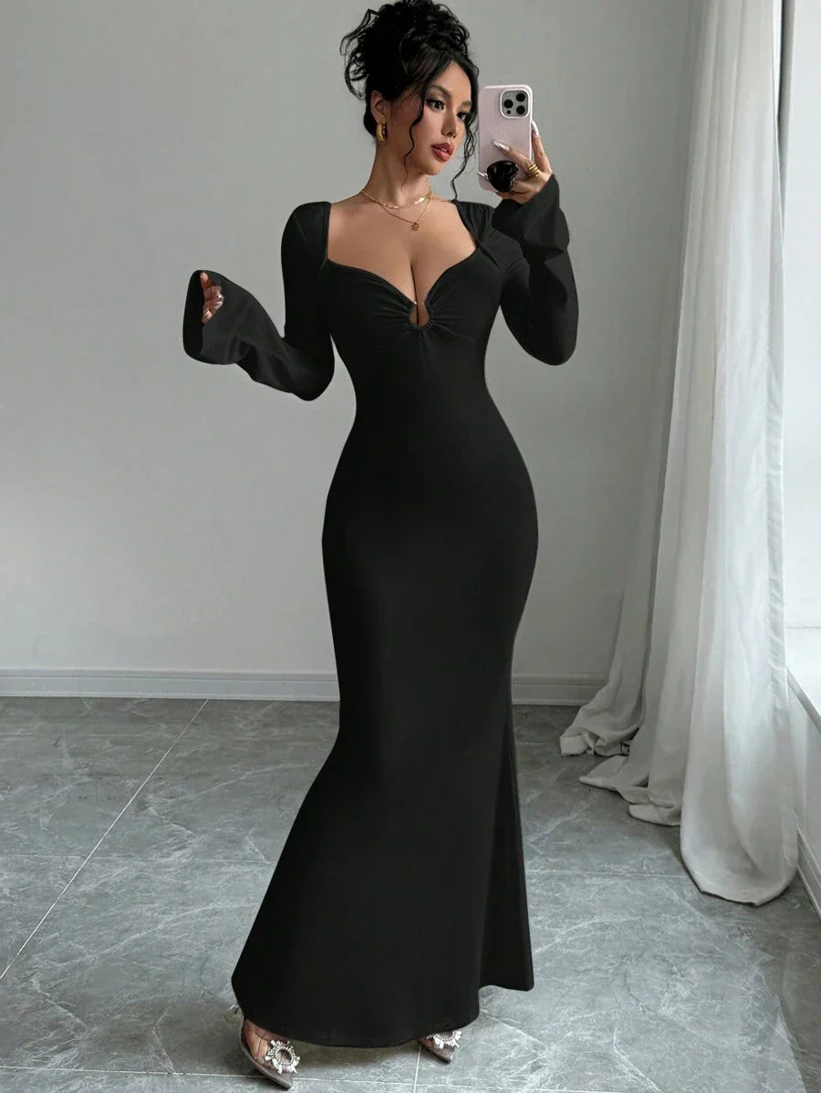 Abito elegante da donna con scollo a cuore, color tinta unita