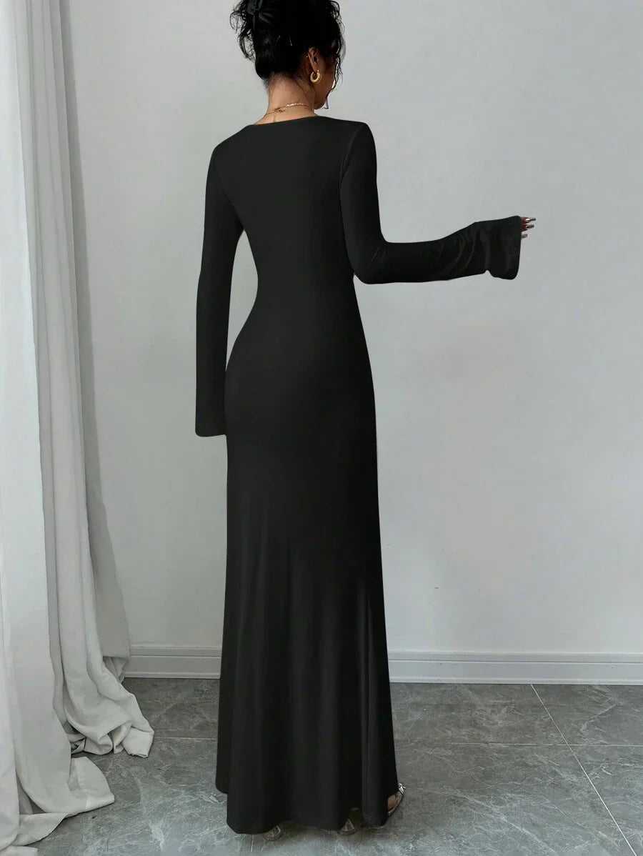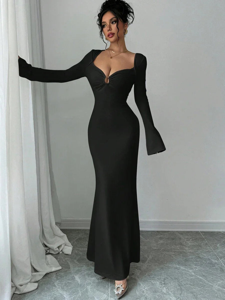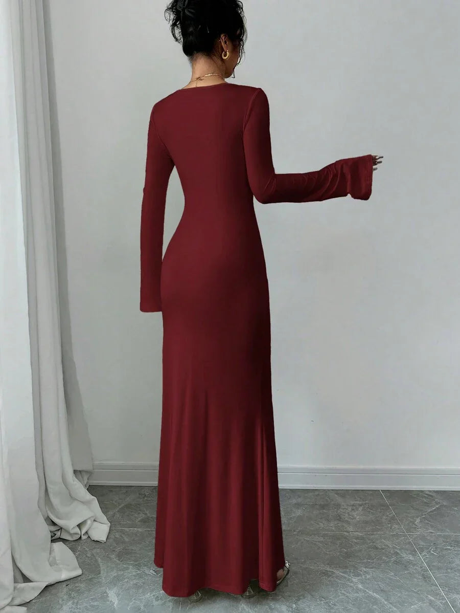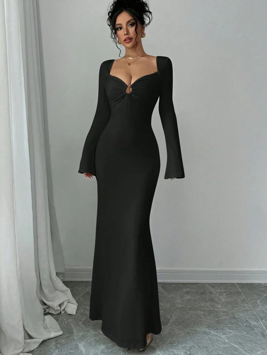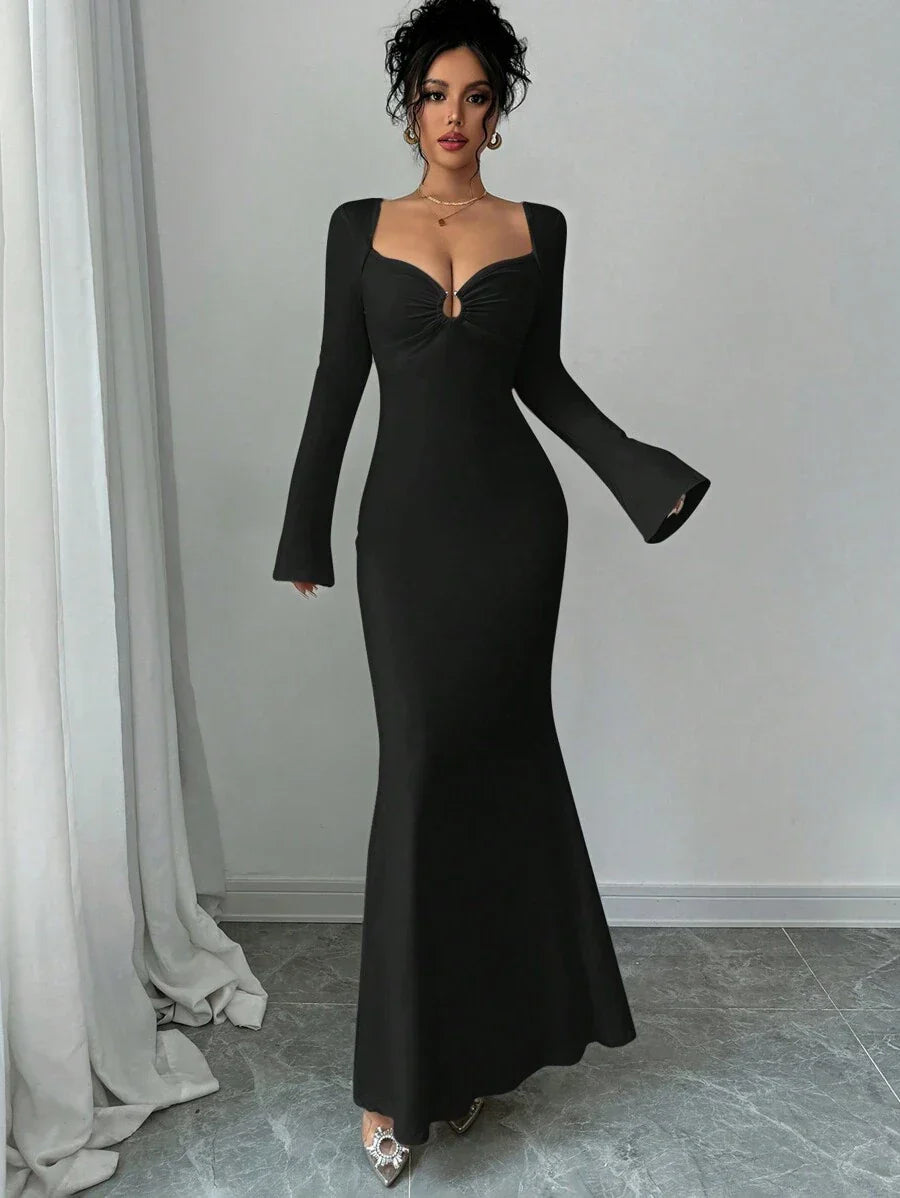 Abito elegante da donna con scollo a cuore, color tinta unita