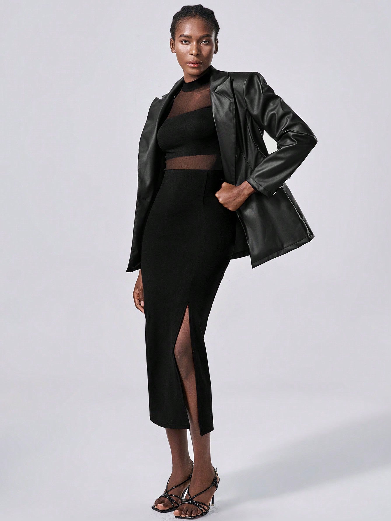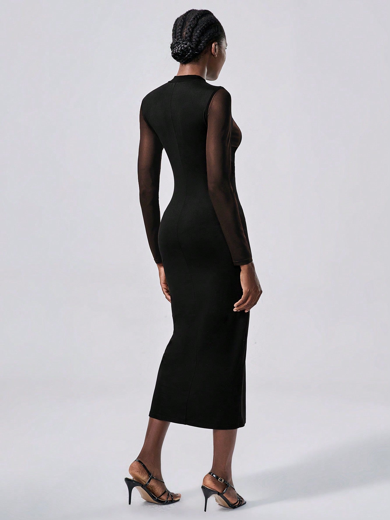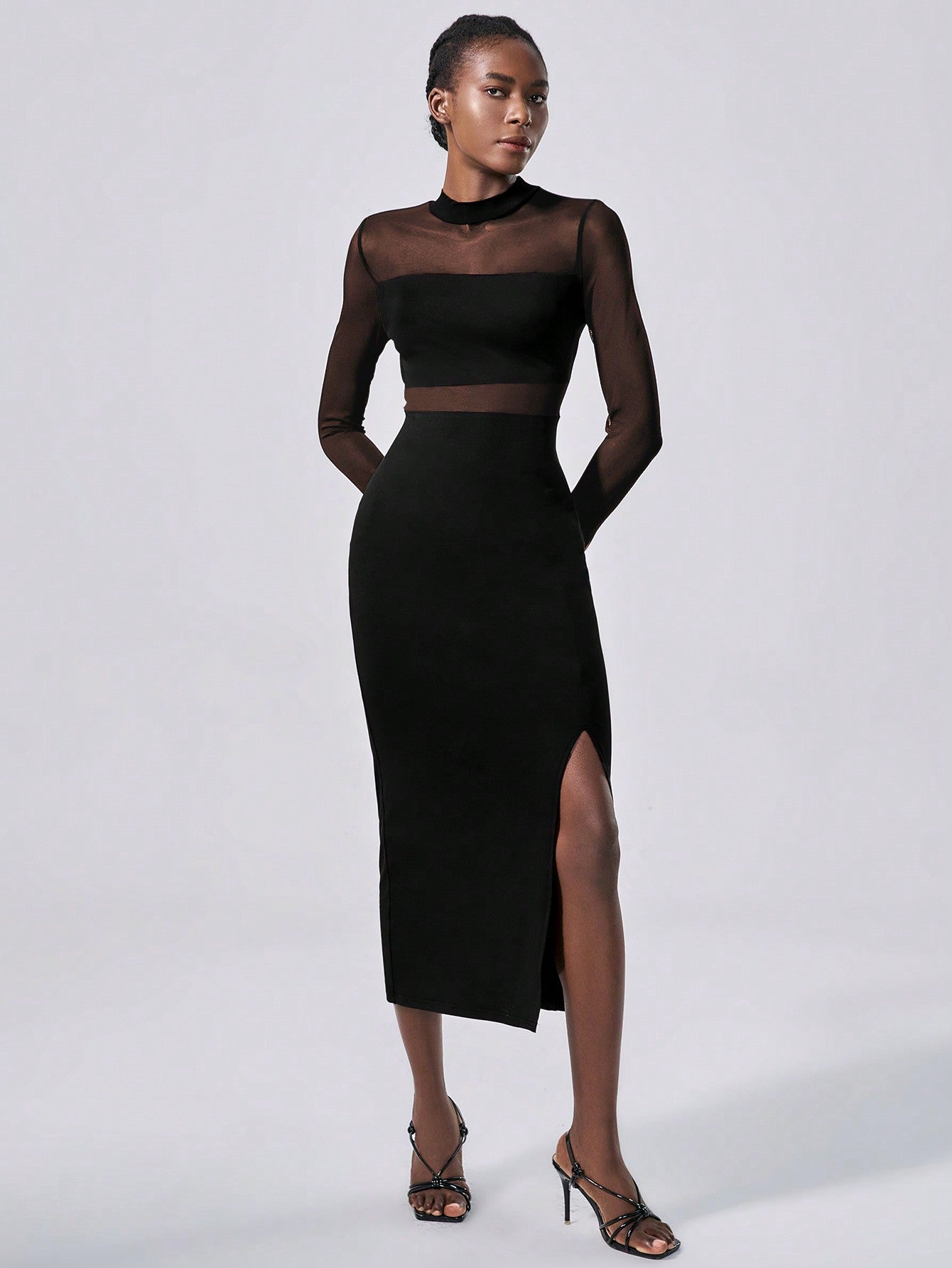 Abito elegante in in rete trasparente, abito nero in maglia semi-trasparente per donna, maxi outfit da donna