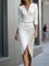 Abito lungo con maniche lunghe, elegante, di colore unito, con vita segnata, adatto per l'autunno