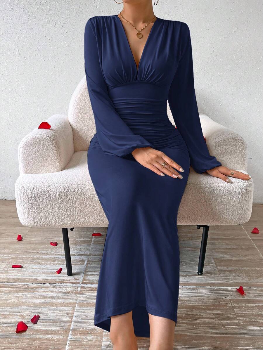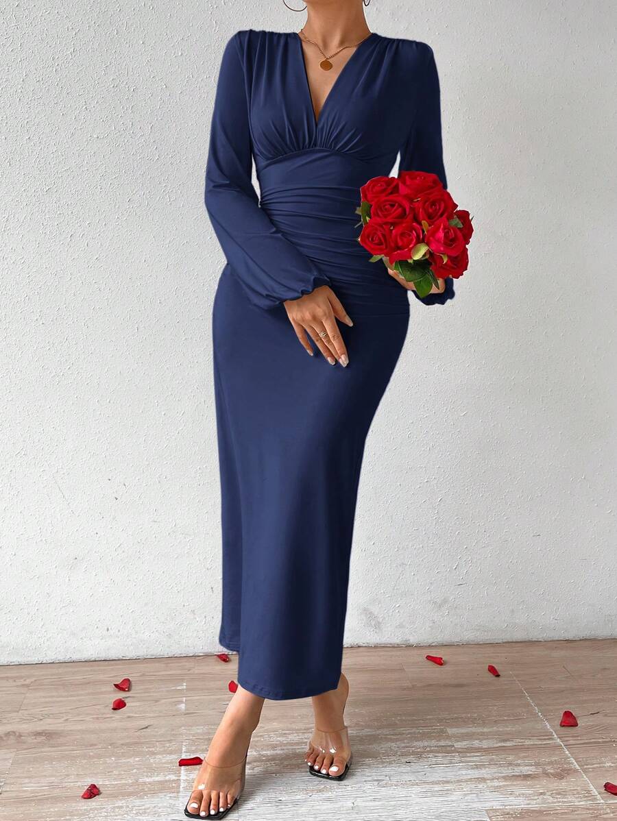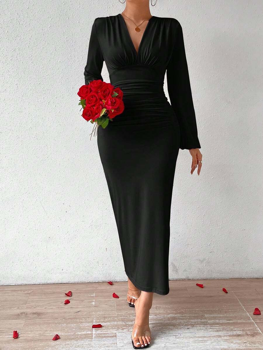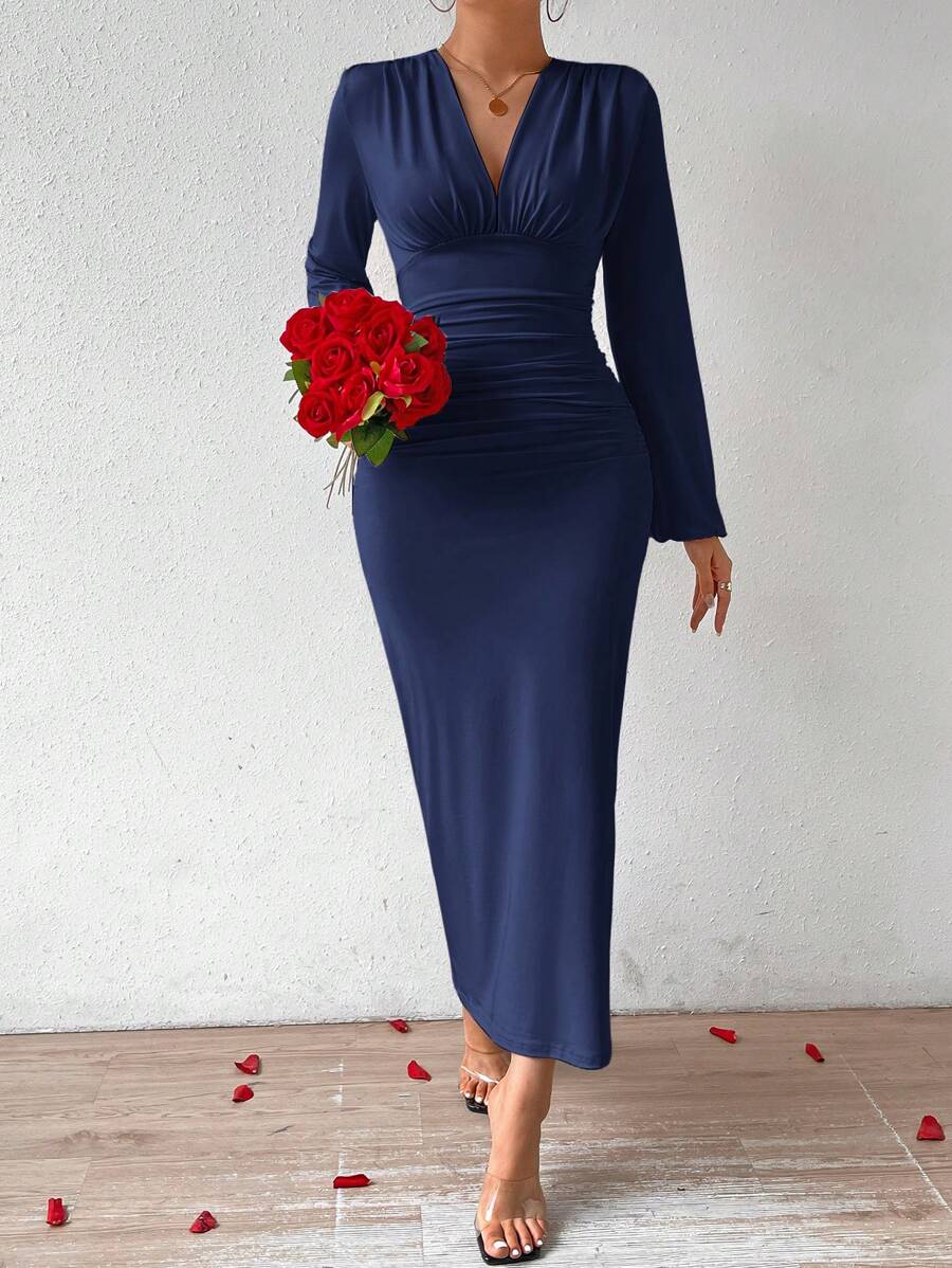Abito Plissettato Da Donna Con Scollo A V Tinta Unita