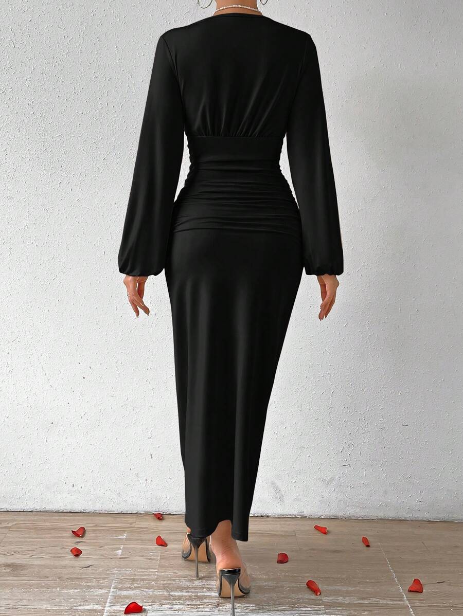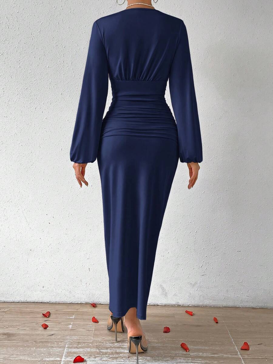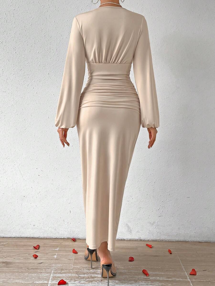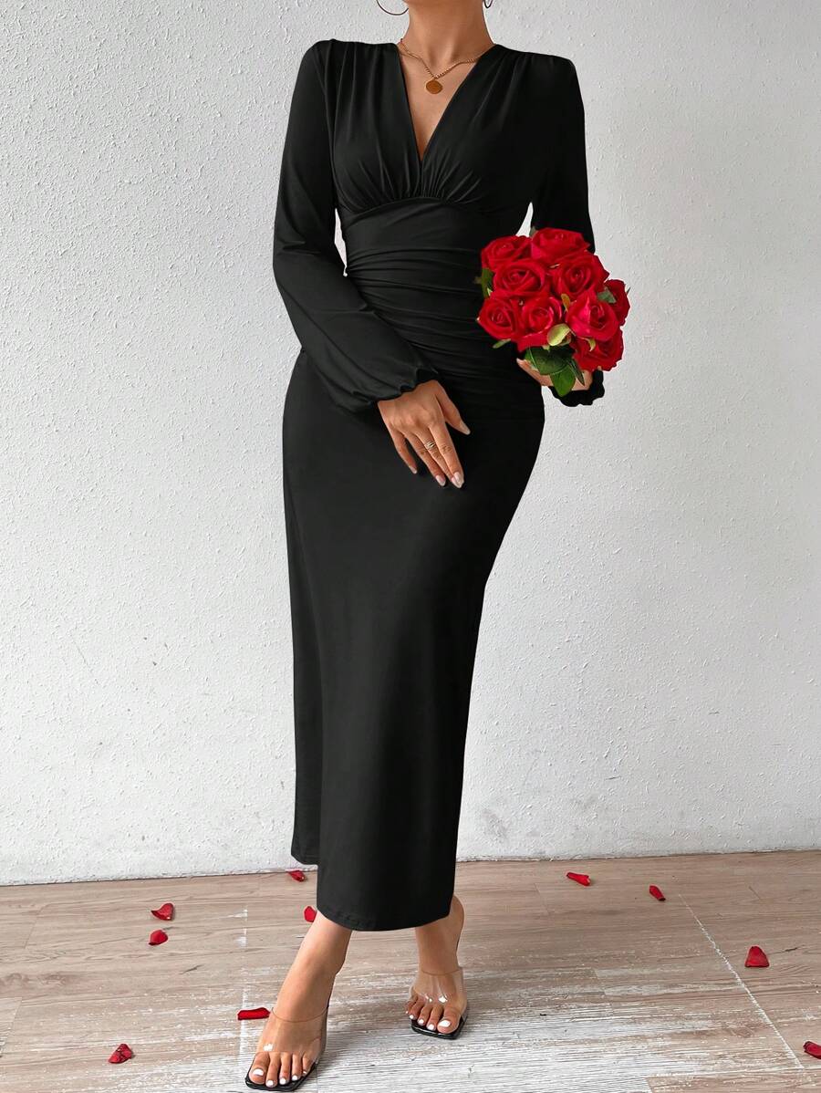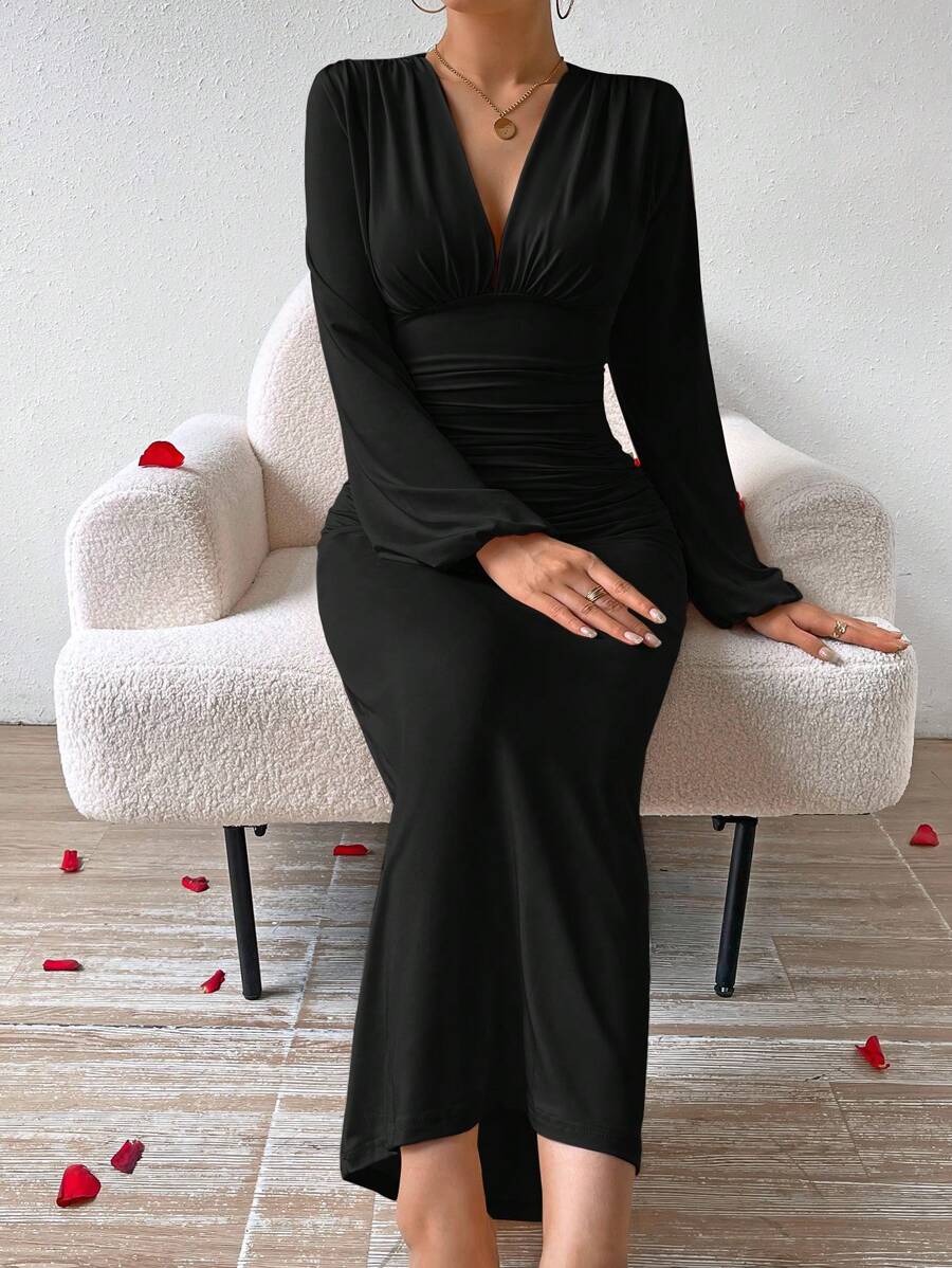 Abito Plissettato Da Donna Con Scollo A V Tinta Unita