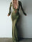 Vestito aderente a maniche lunghe con scollo a V profondo, vita alta e arricciature