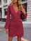 Vestito da donna elegante con scollo a V e maniche a lanterna francese con arricciature