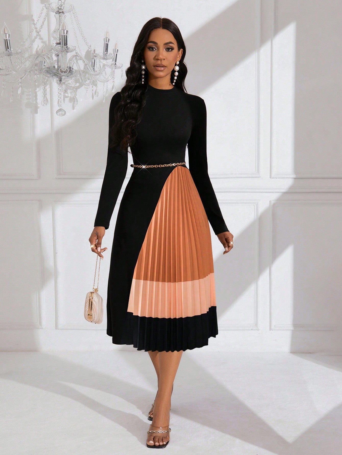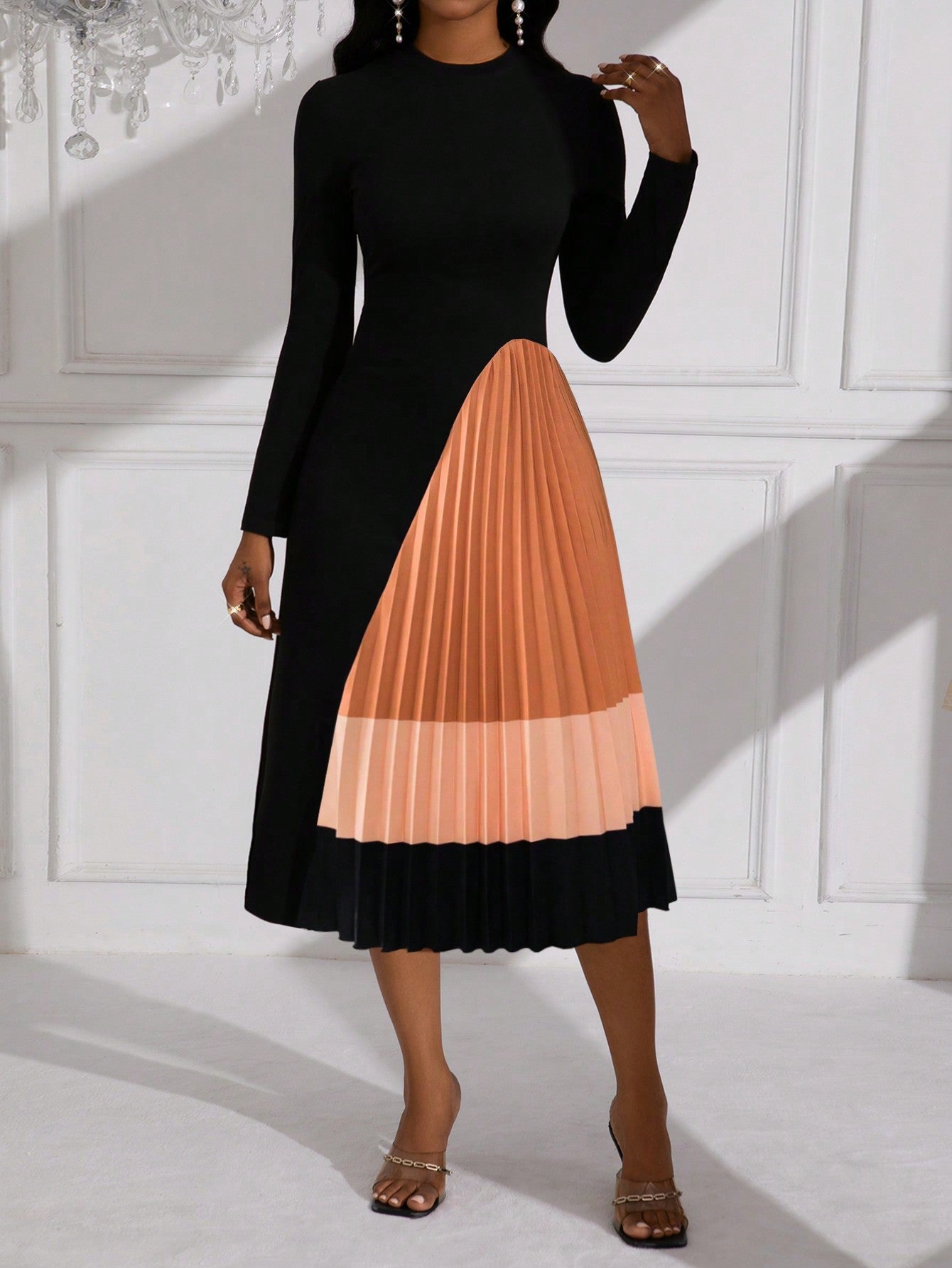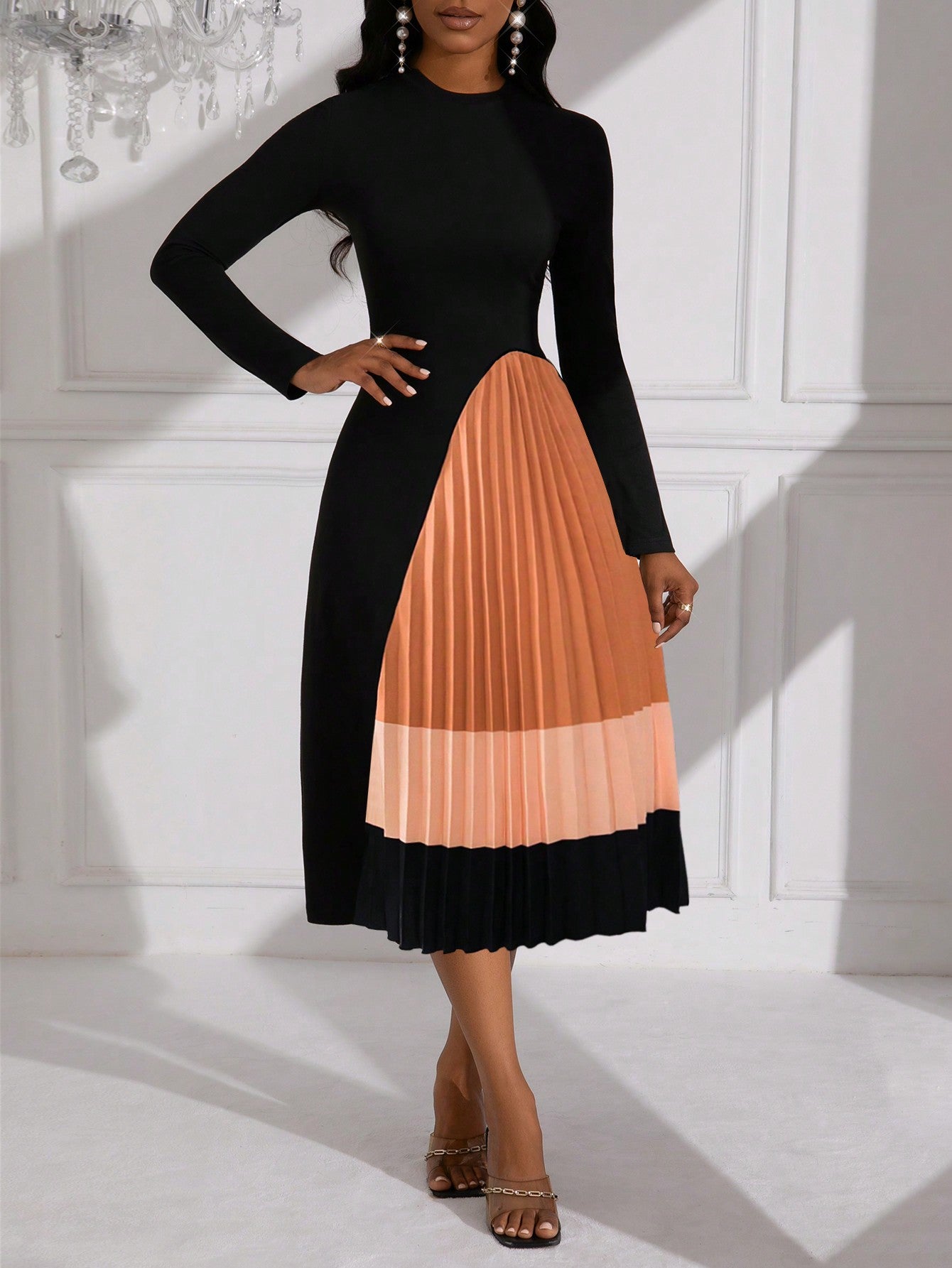 Vestito lungo plissettato a patchwork in maglia da donna, abbigliamento da donna