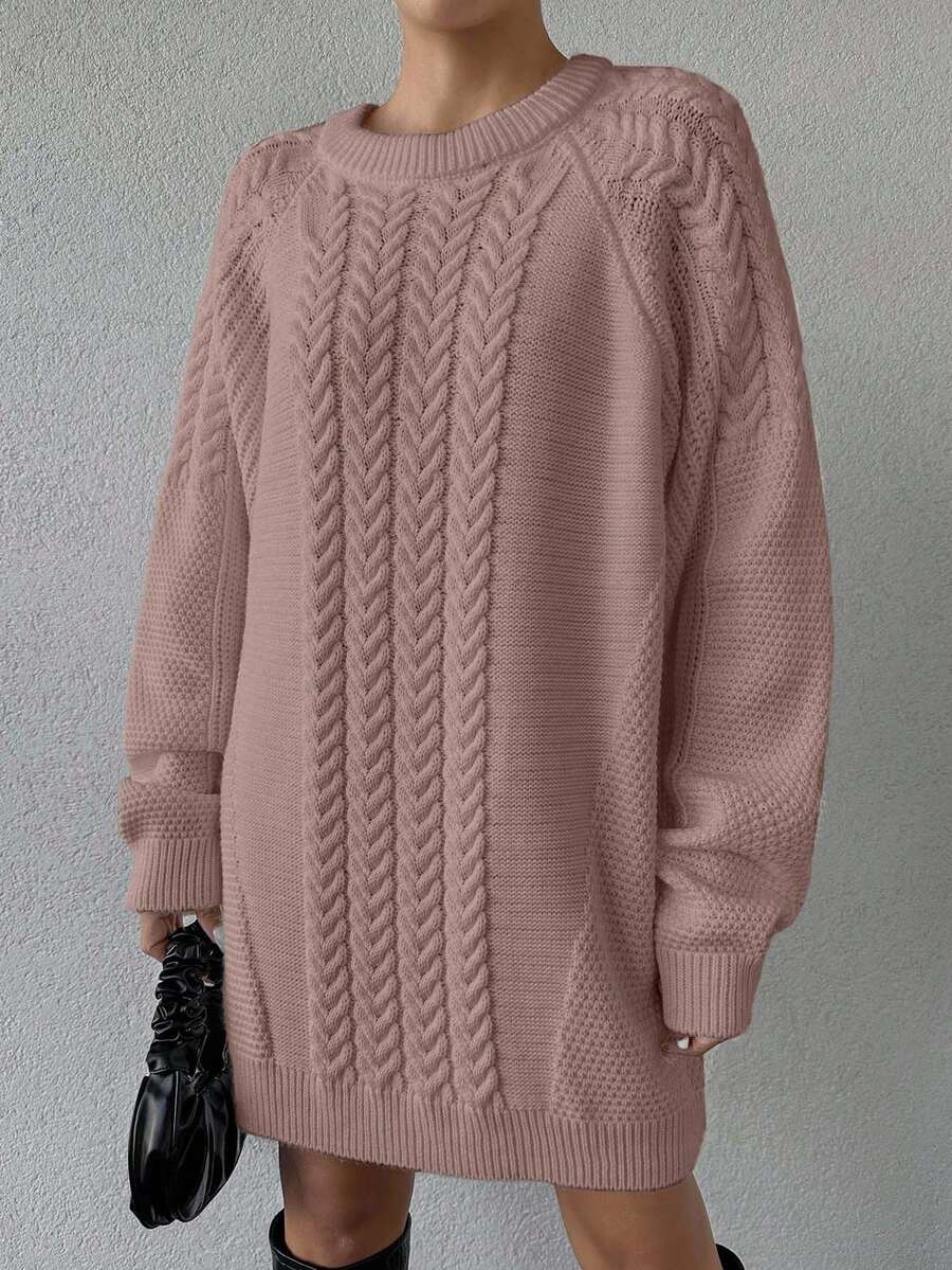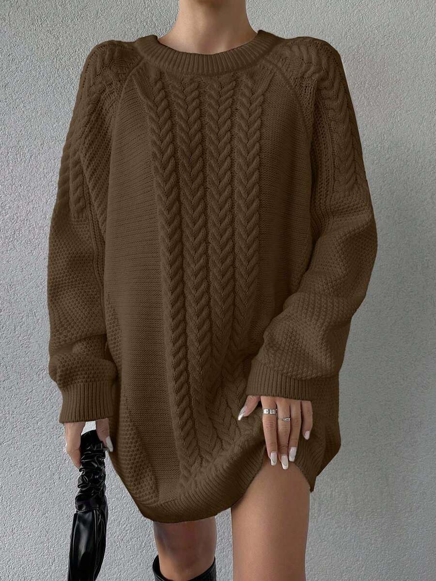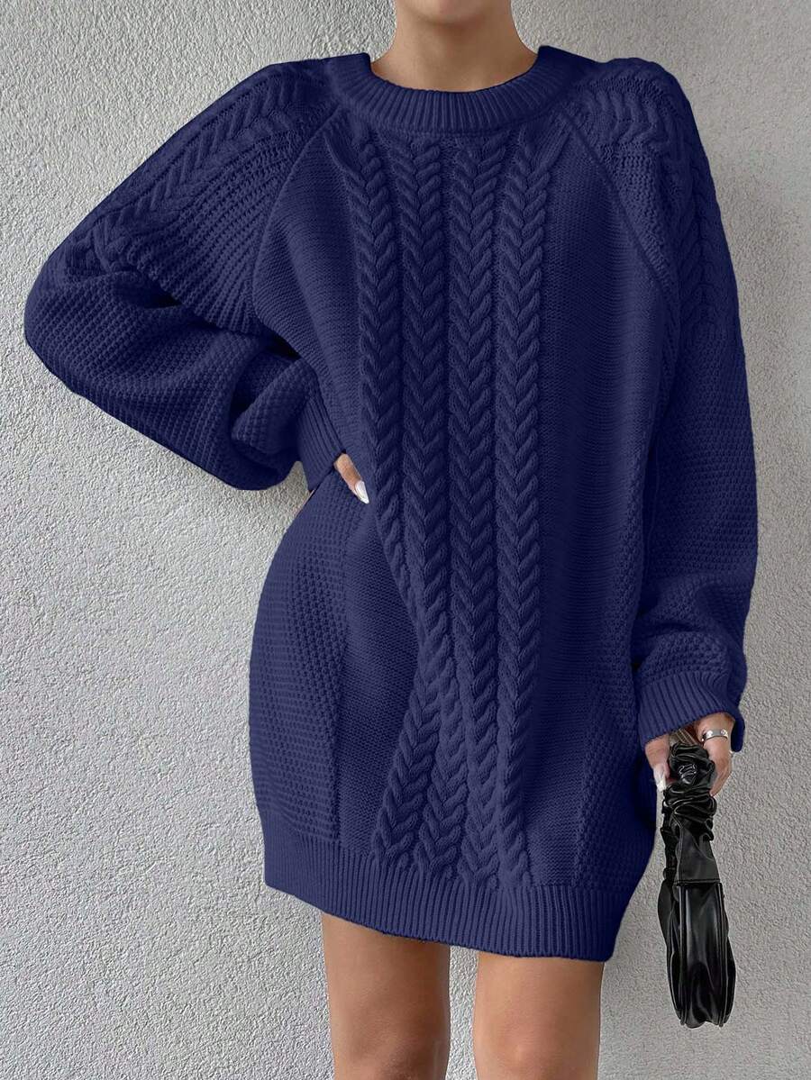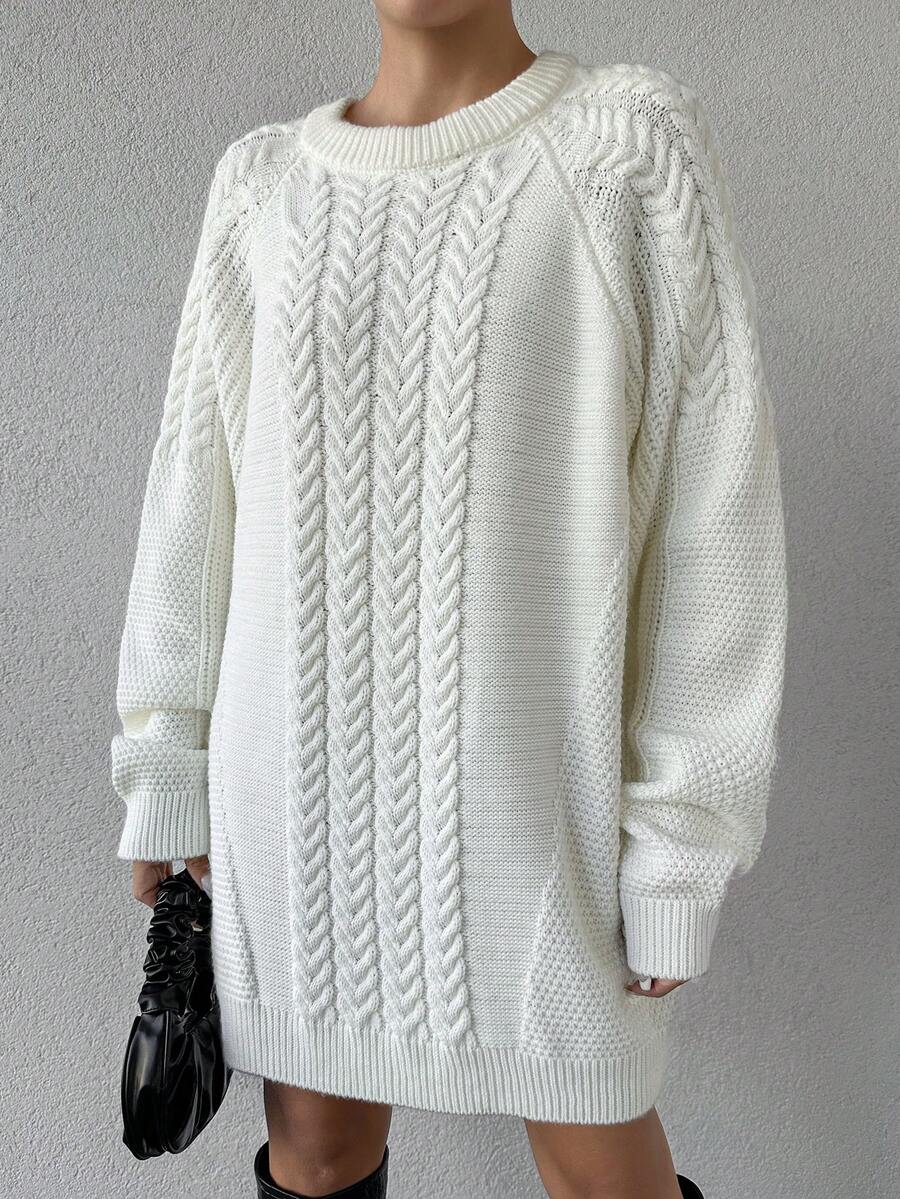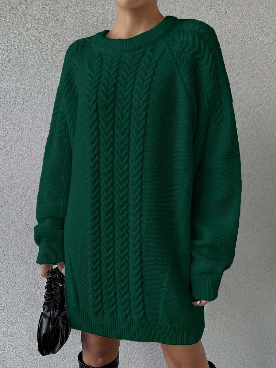 Abito casual e ampio in maglia con motivo a trecce, collo tondo, maniche raglan, maniche lunghe
