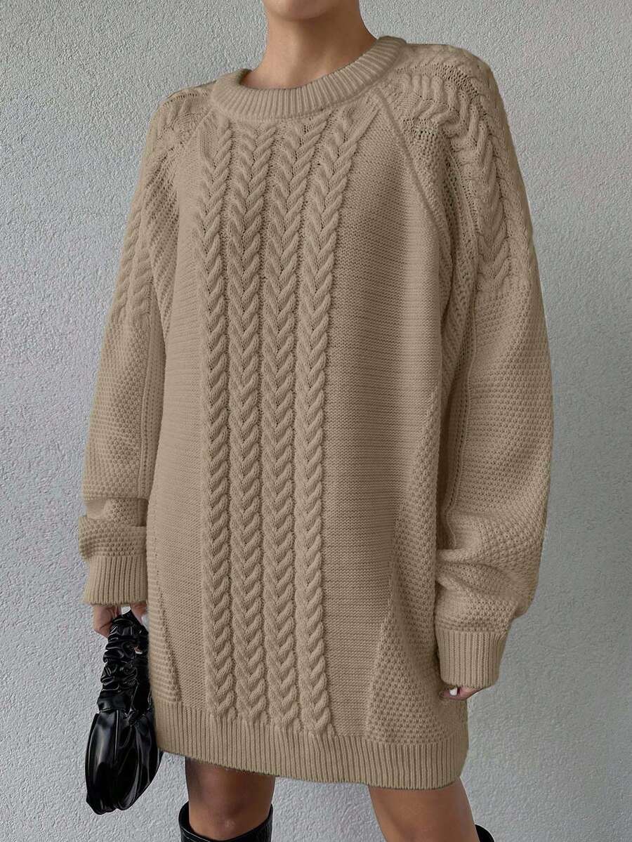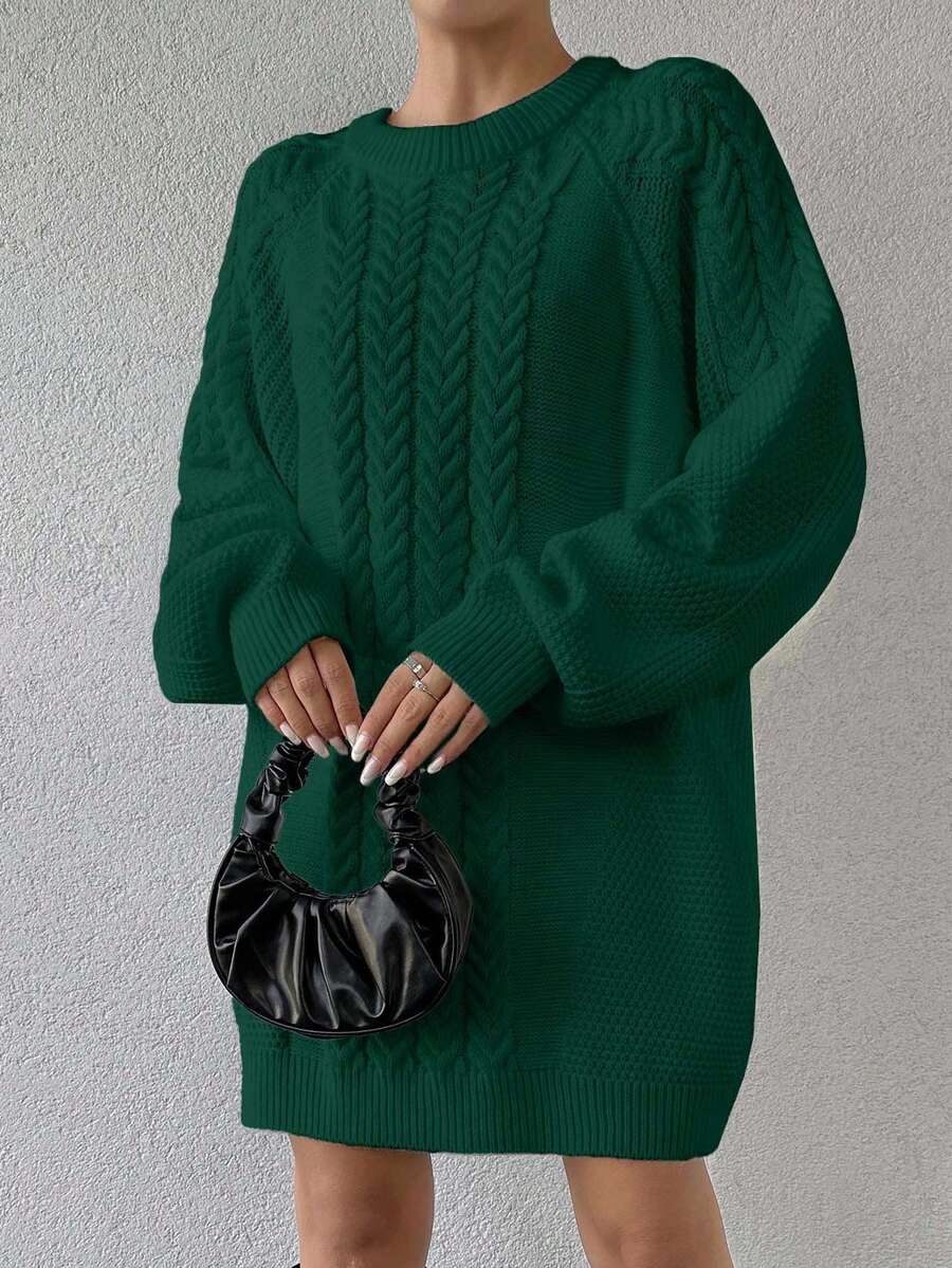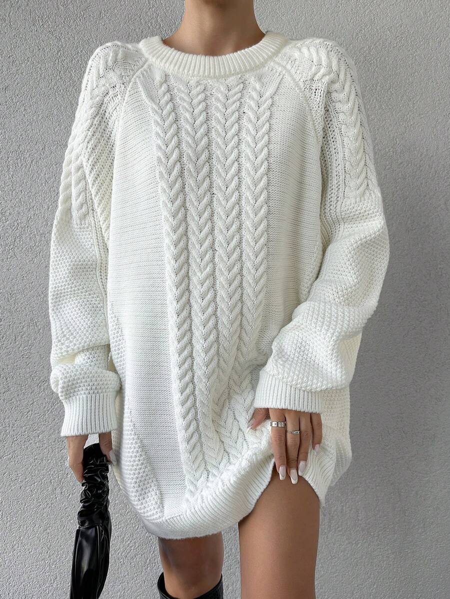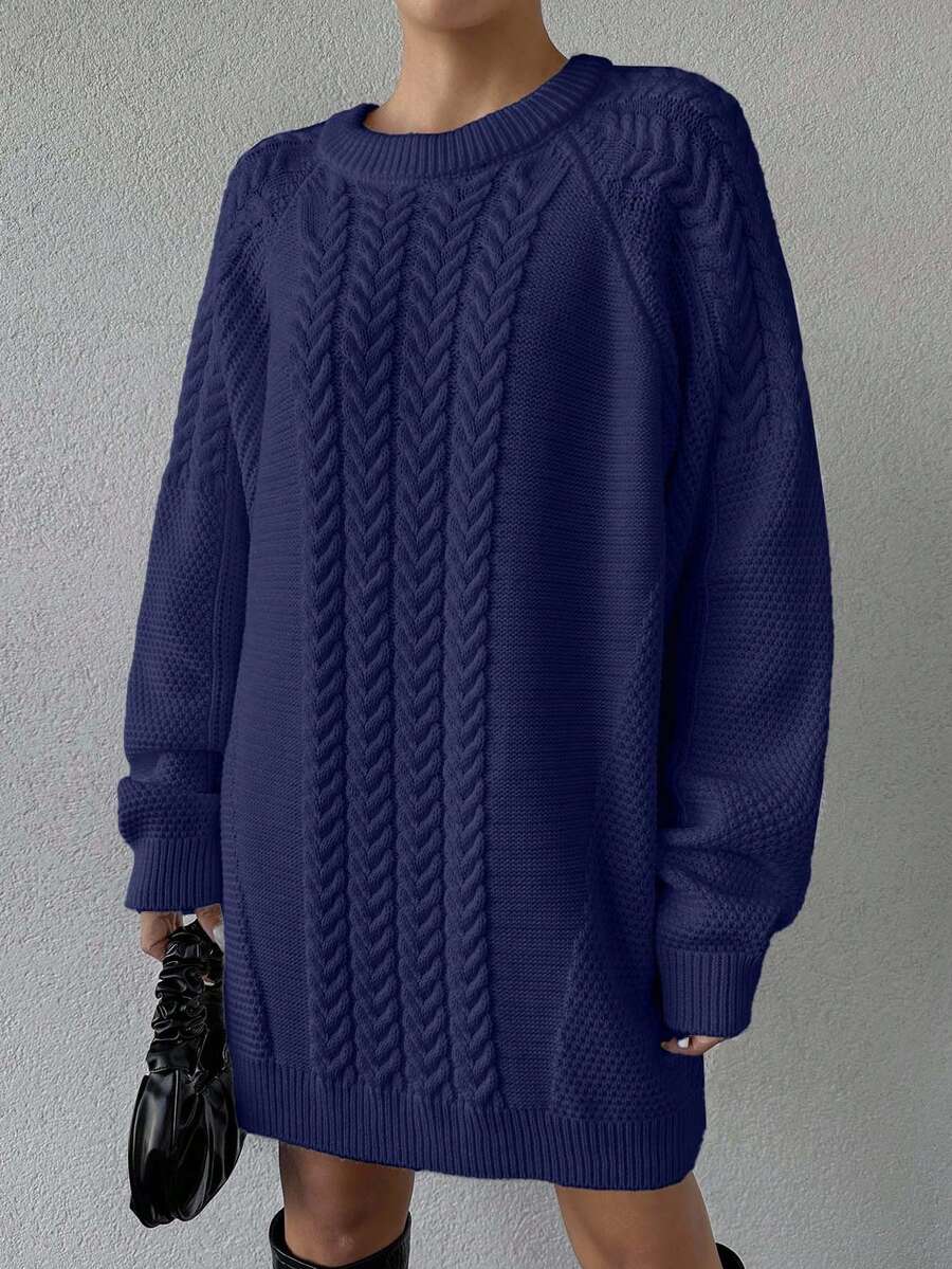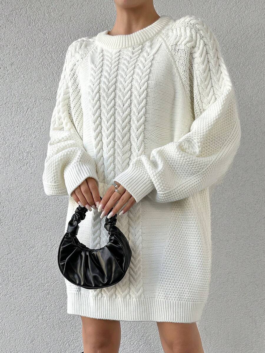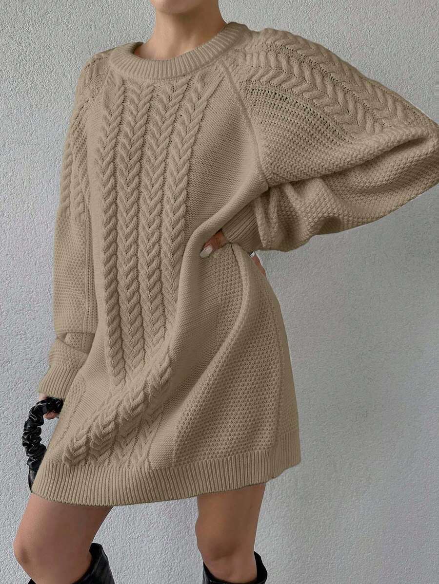 Abito casual e ampio in maglia con motivo a trecce, collo tondo, maniche raglan, maniche lunghe