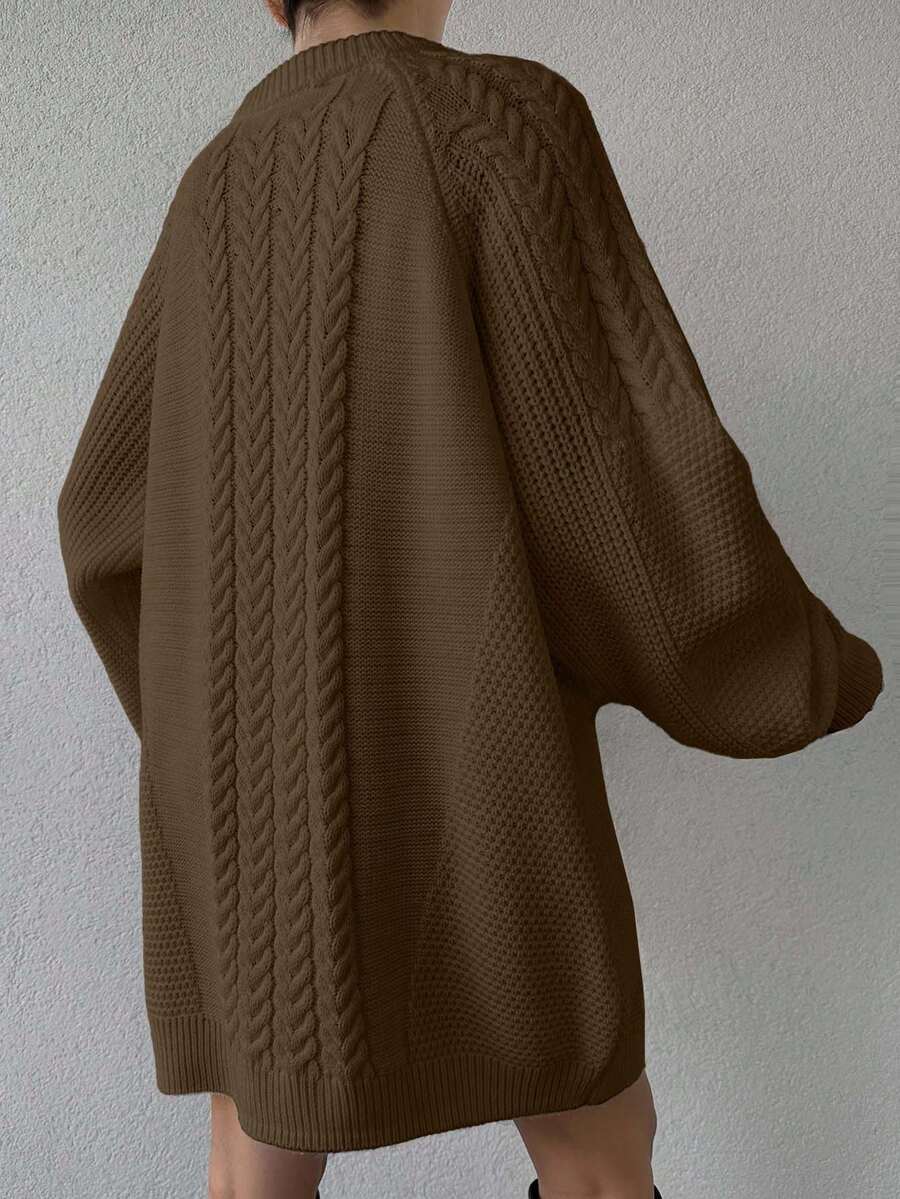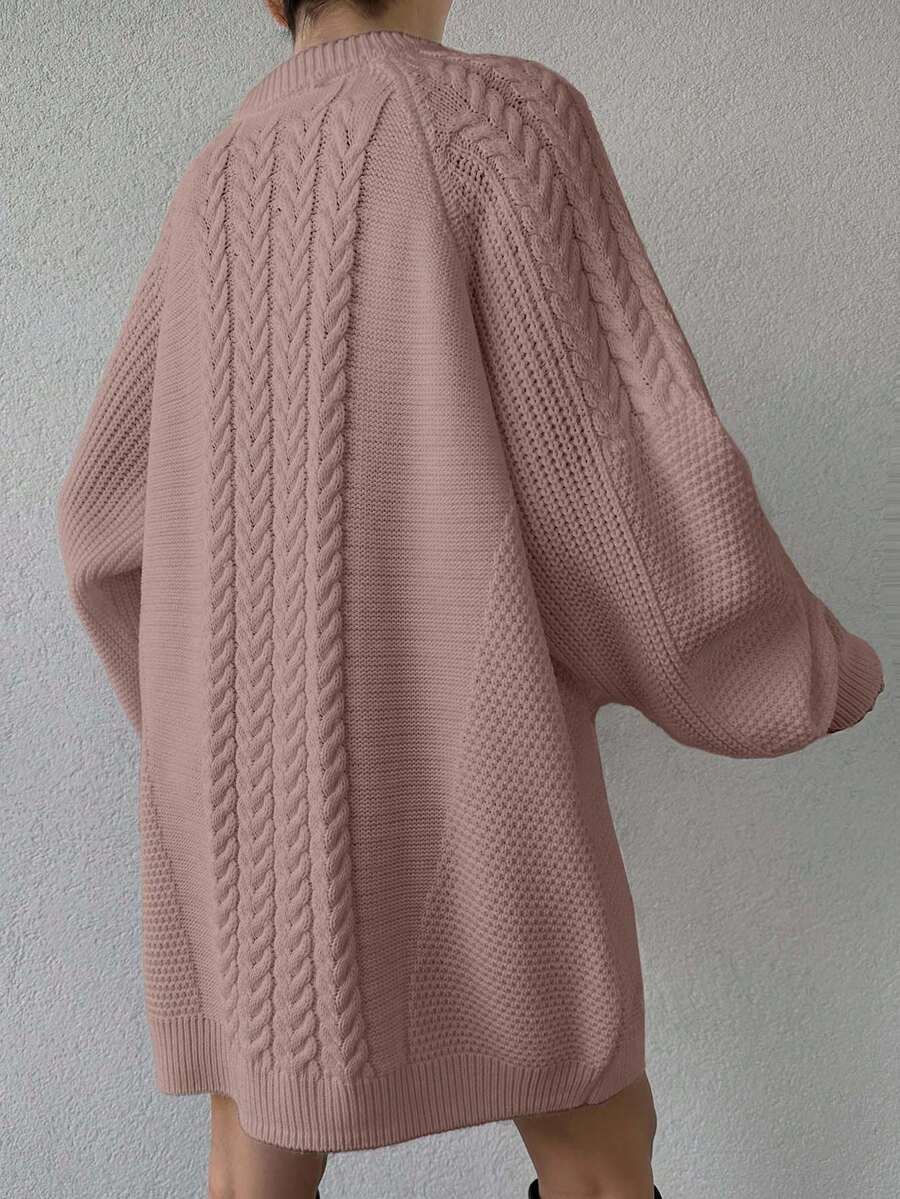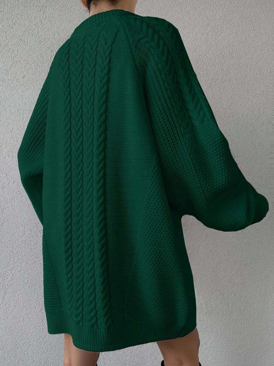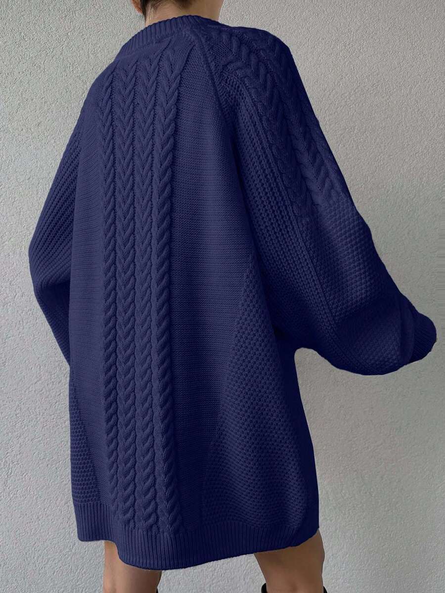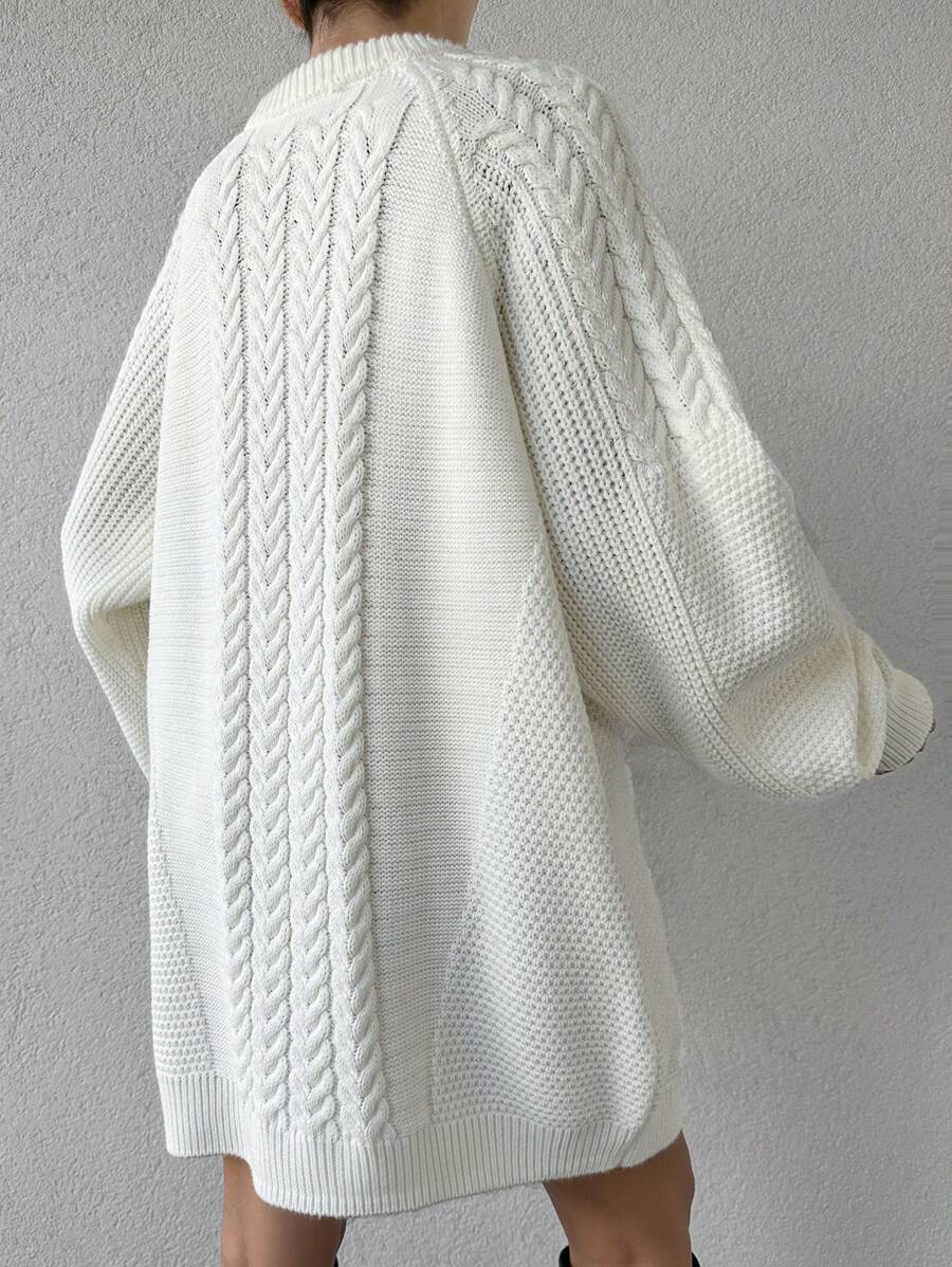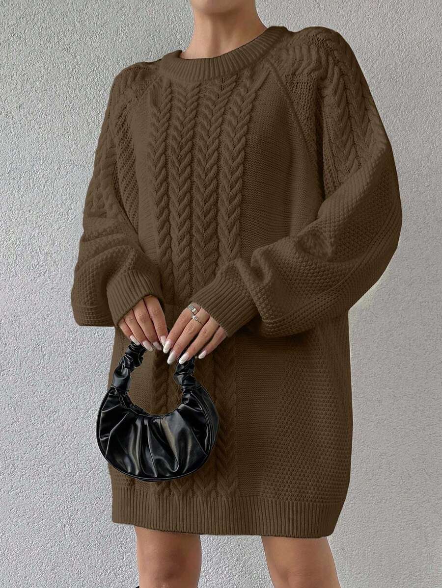 Abito casual e ampio in maglia con motivo a trecce, collo tondo, maniche raglan, maniche lunghe