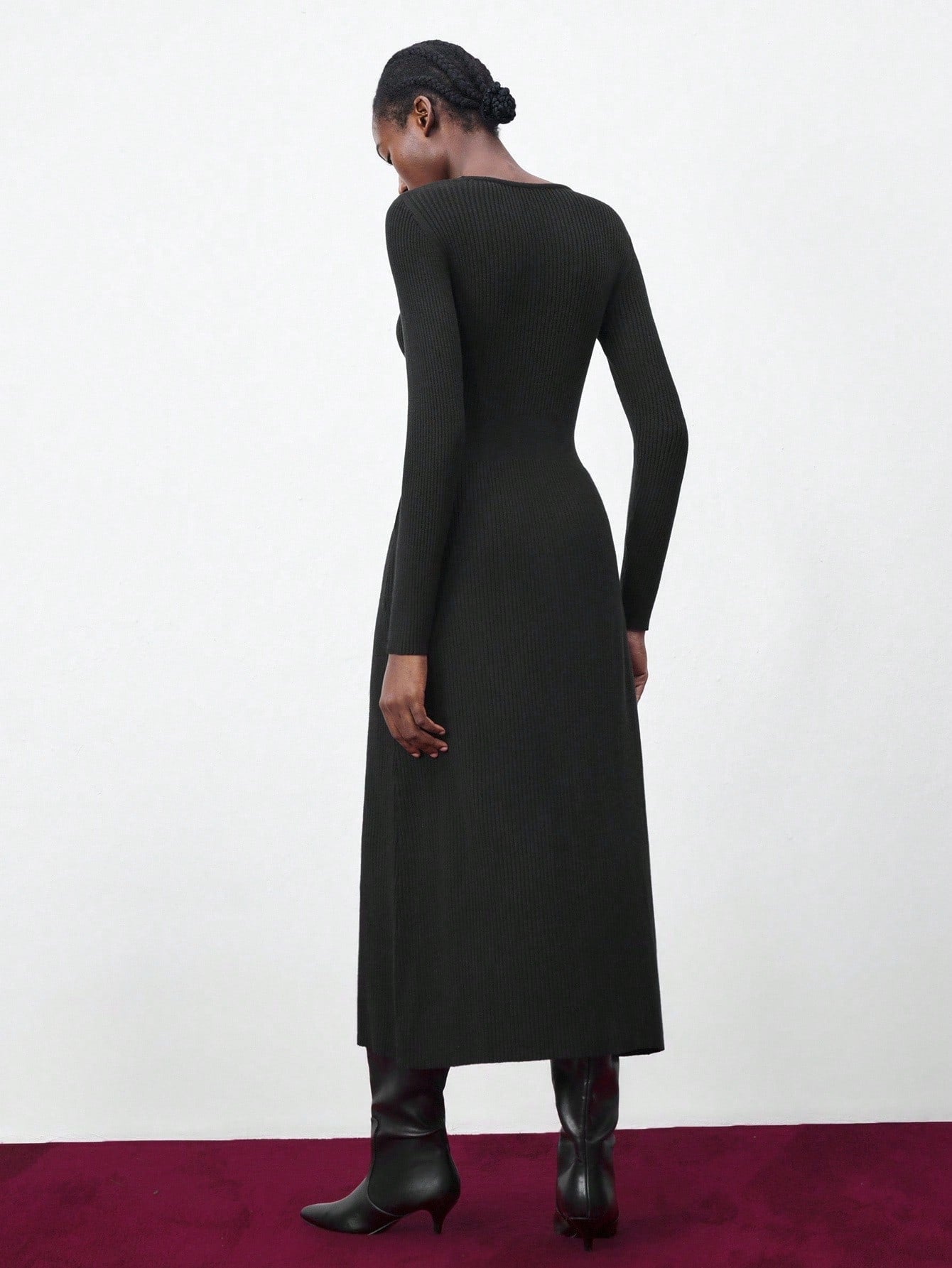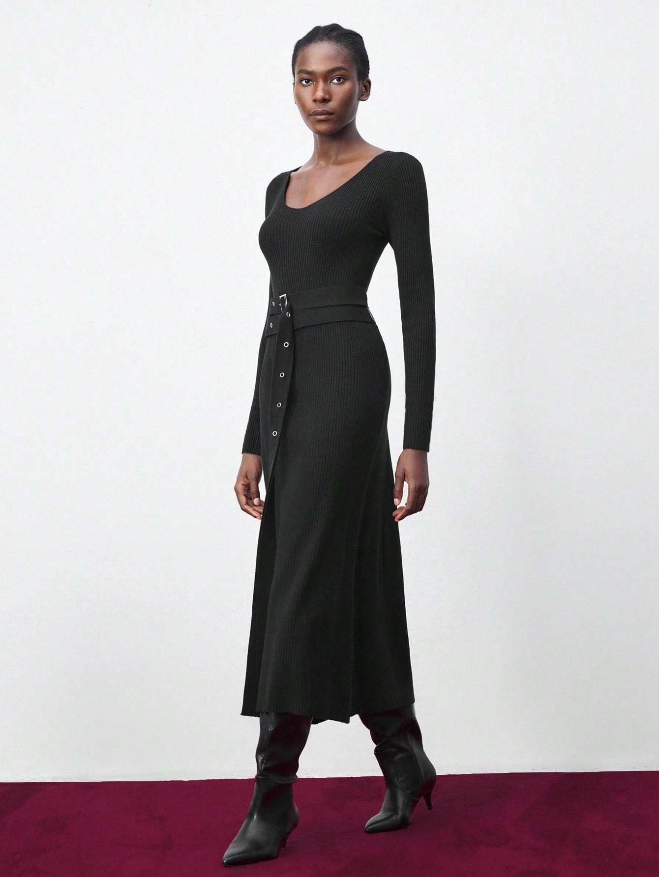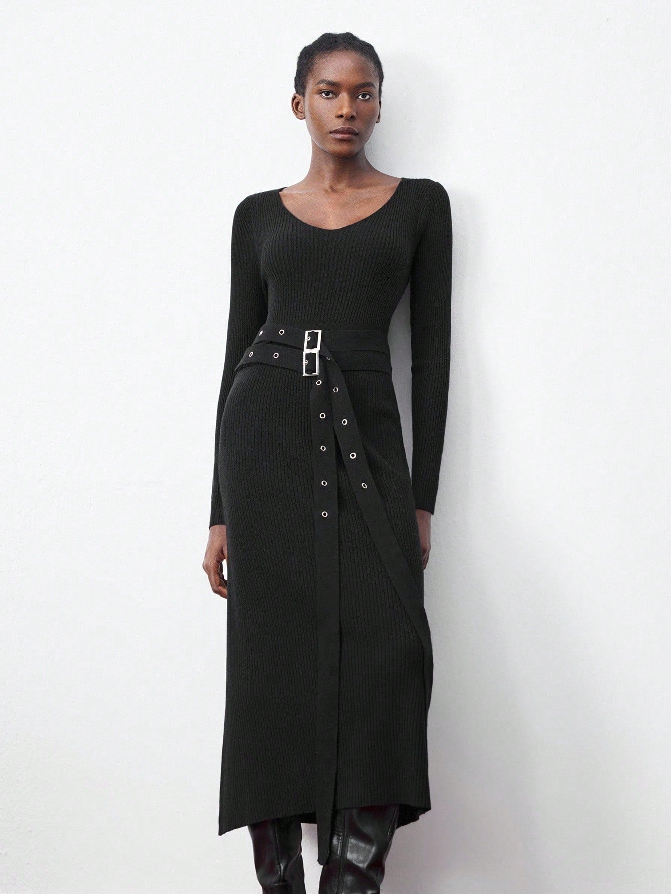 Abito maglione a maniche lunghe aderente di colore unito casual da donna