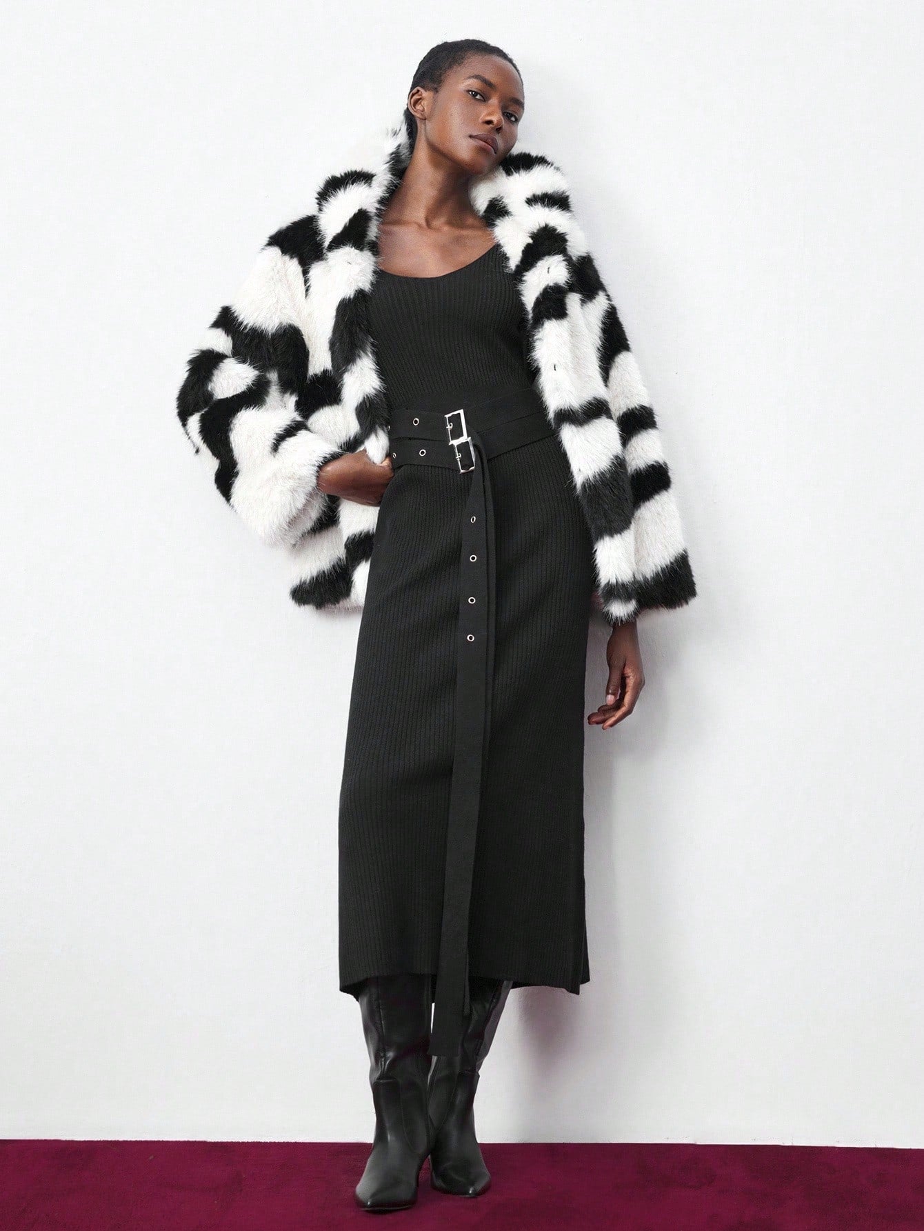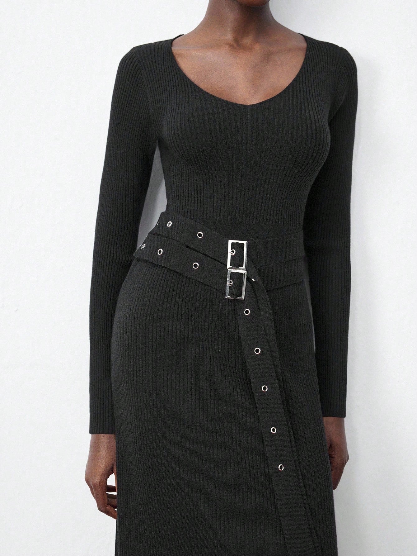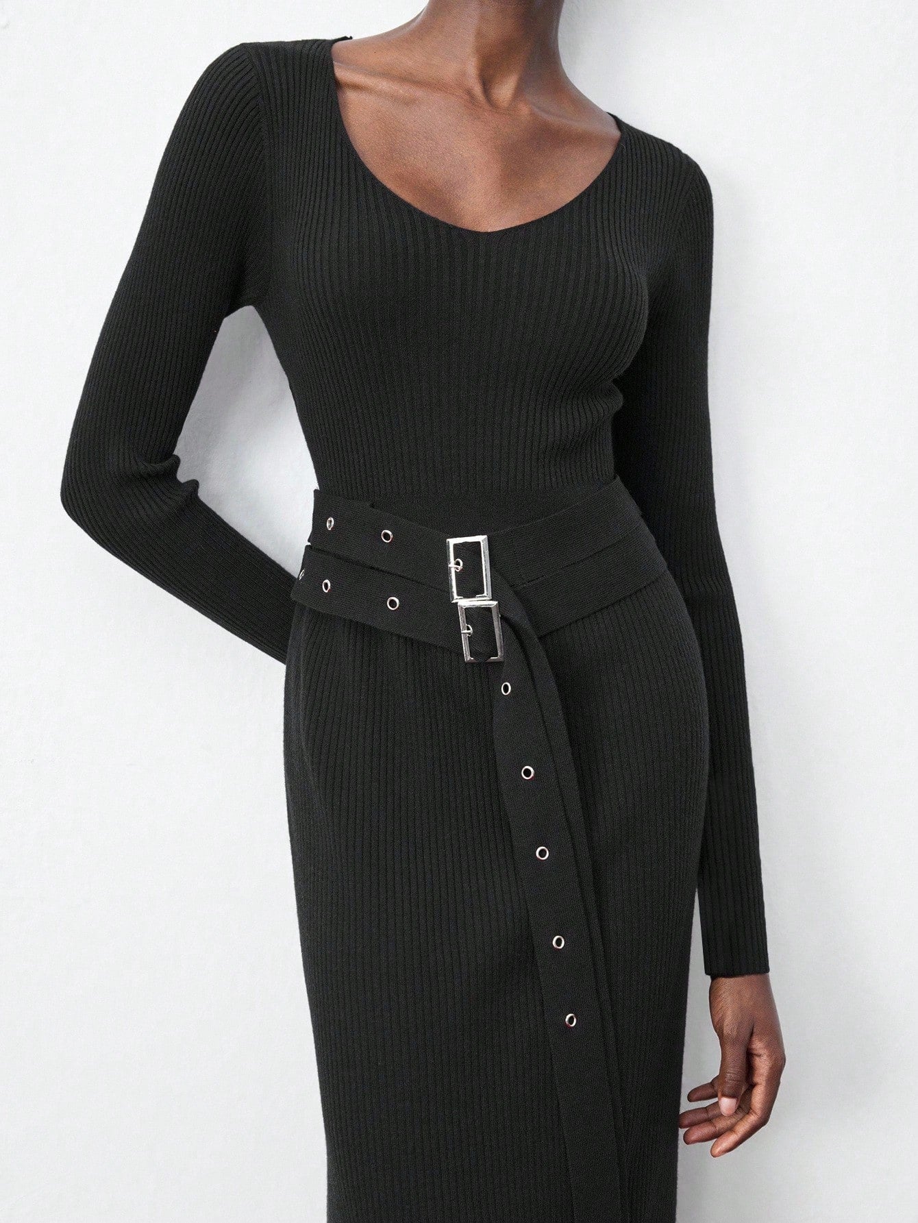 Abito maglione a maniche lunghe aderente di colore unito casual da donna