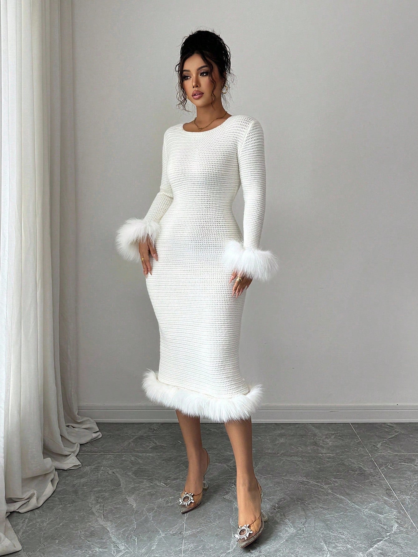 Abito maglione elegante in maglia tinta unita da donna