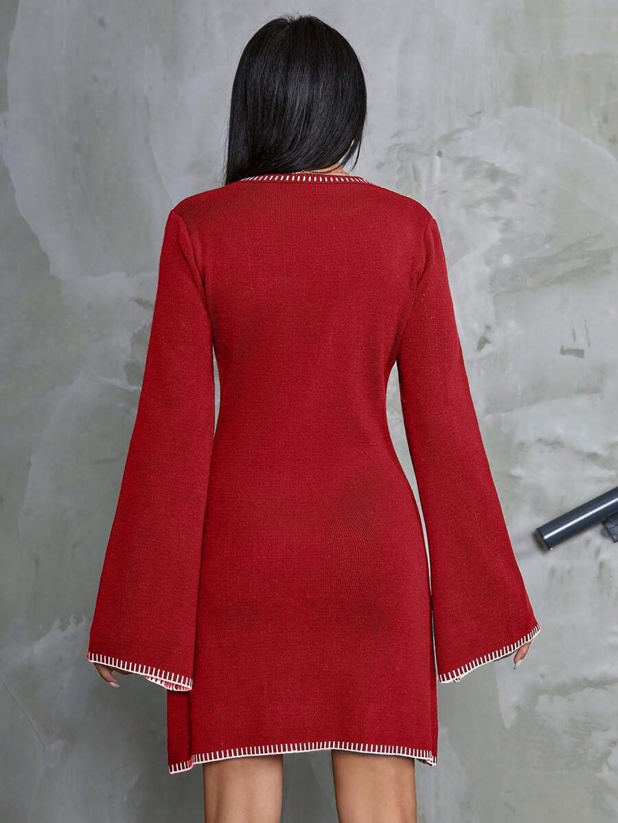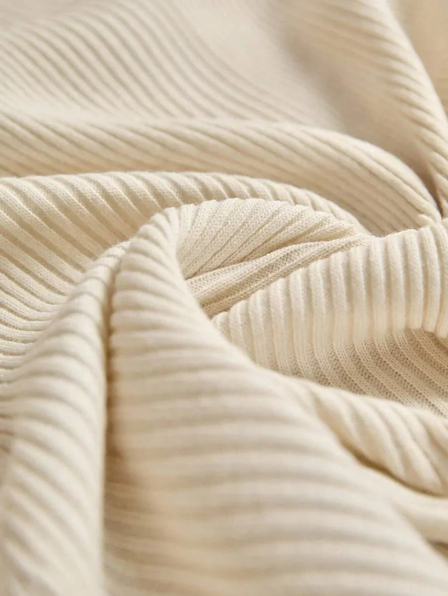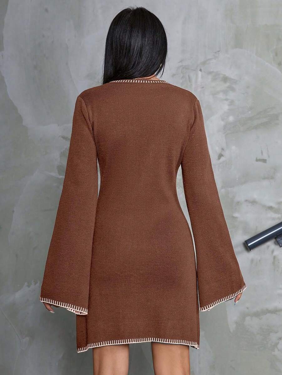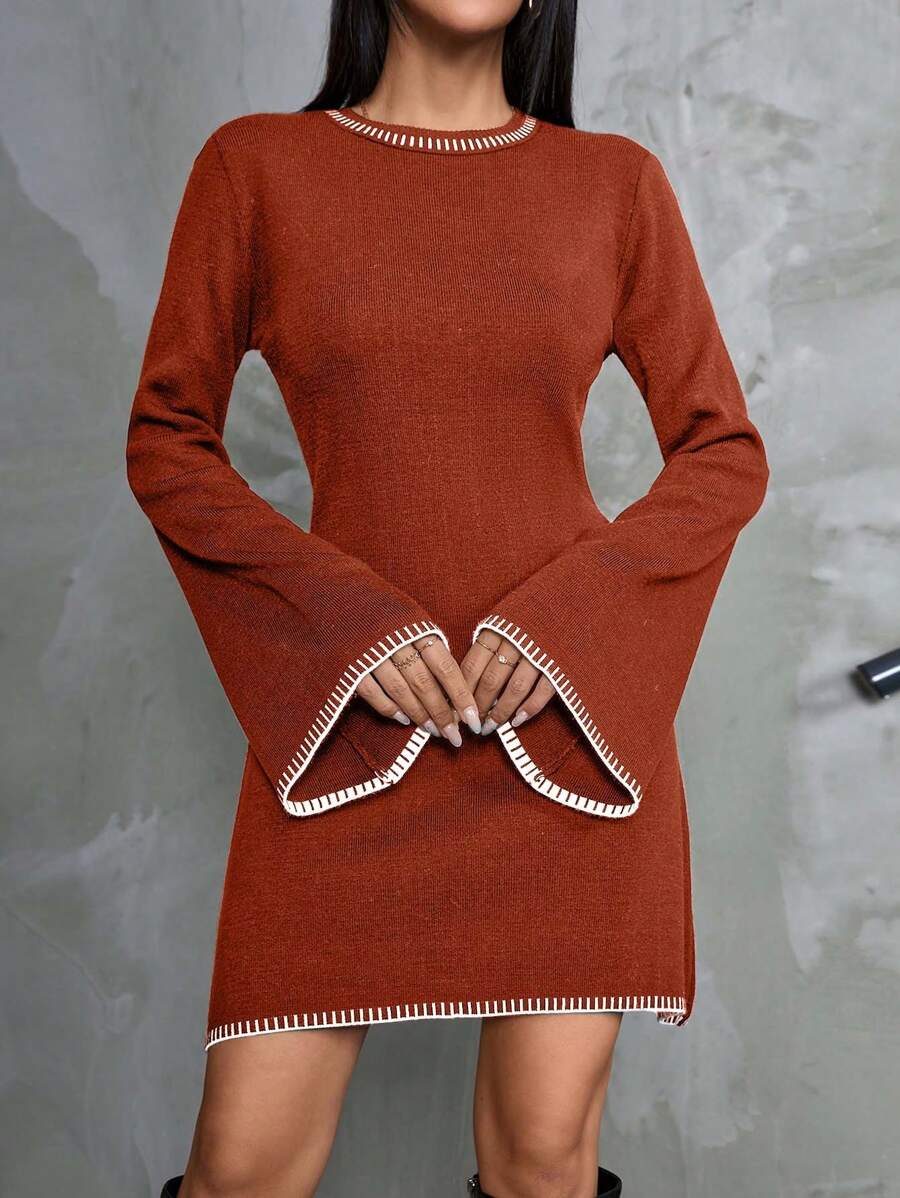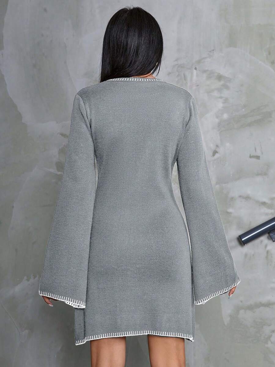 Abito mini in maglia a costine con scollo quadrato e dettagli a punto, tinta unita