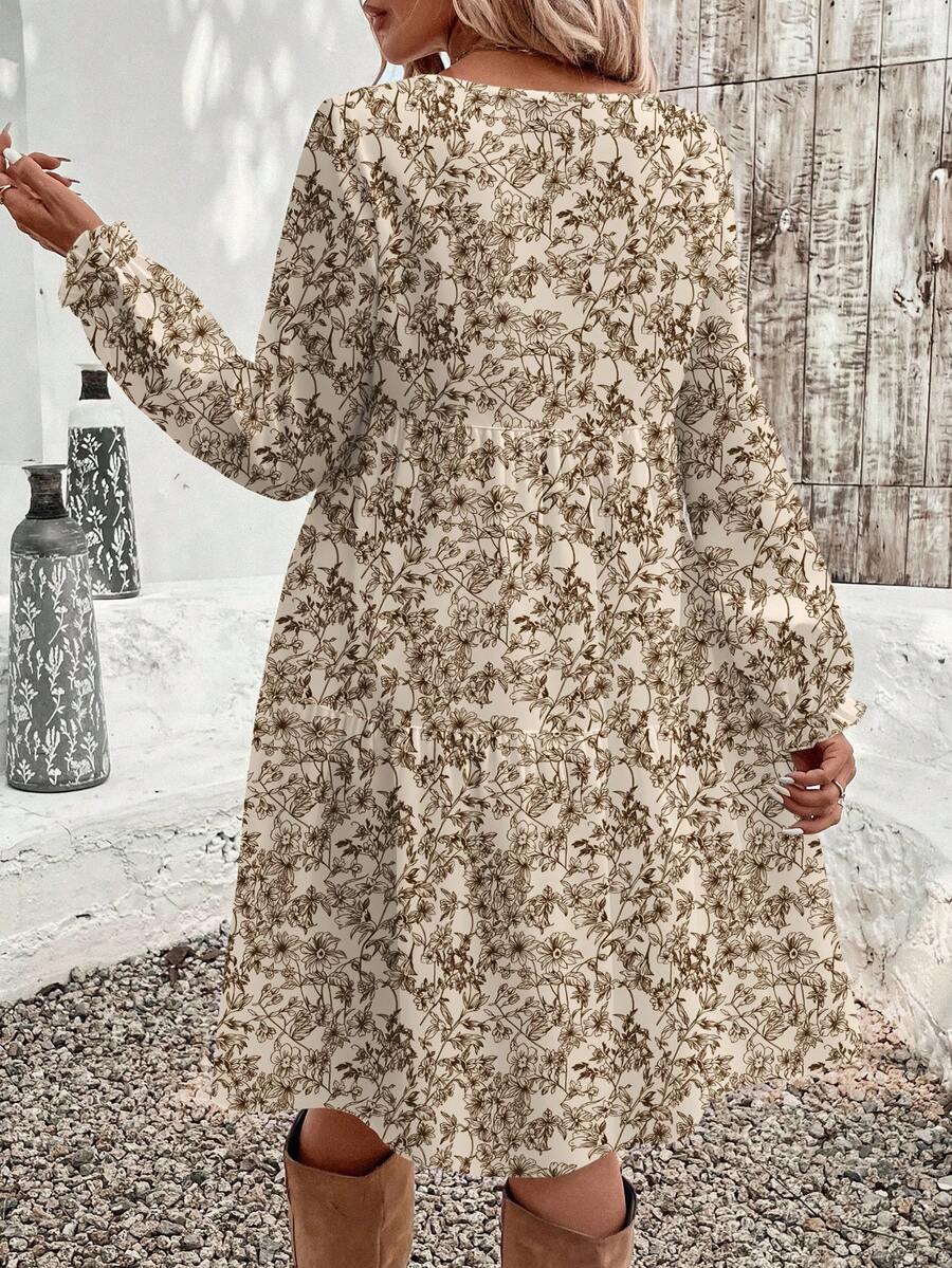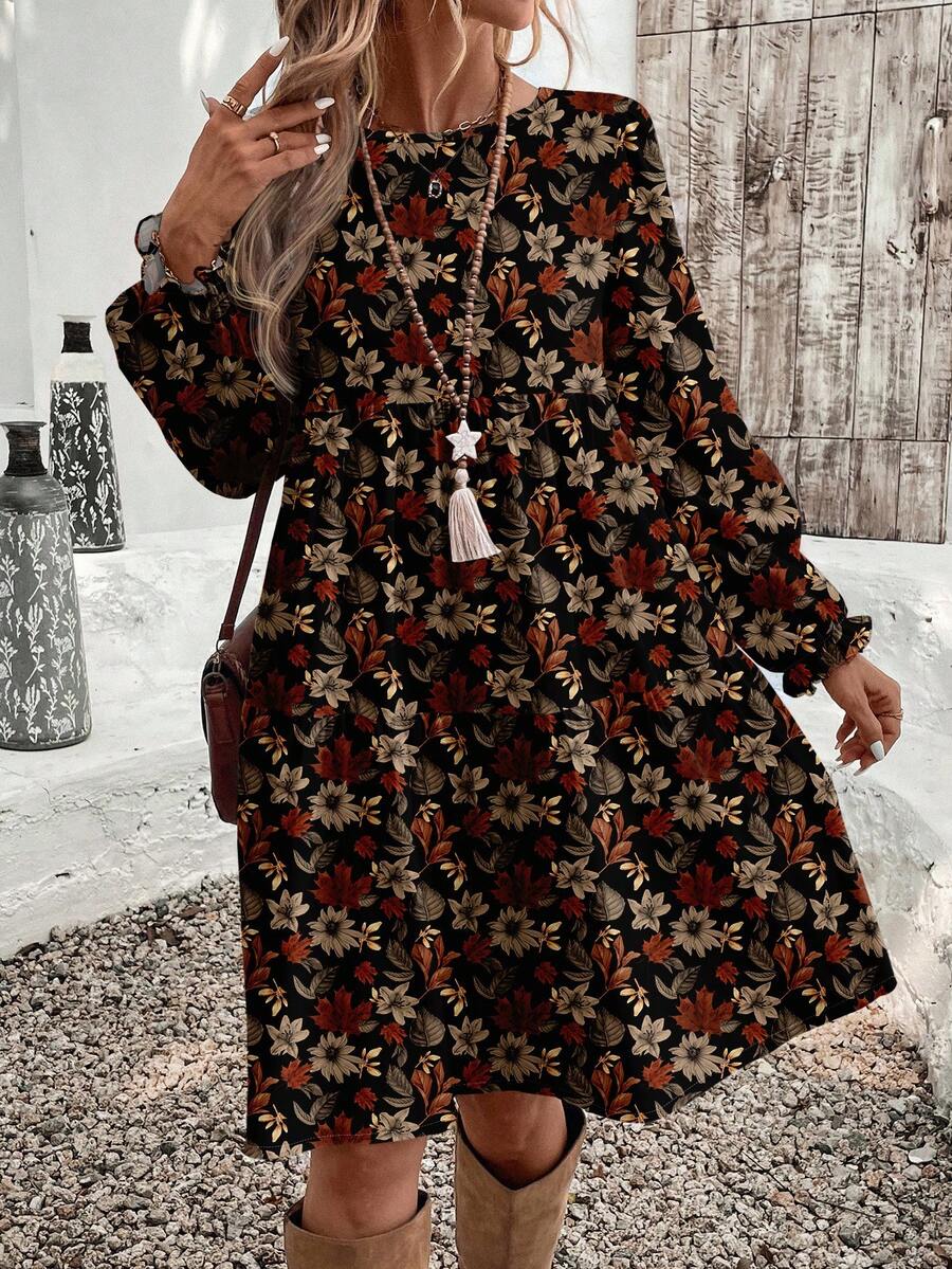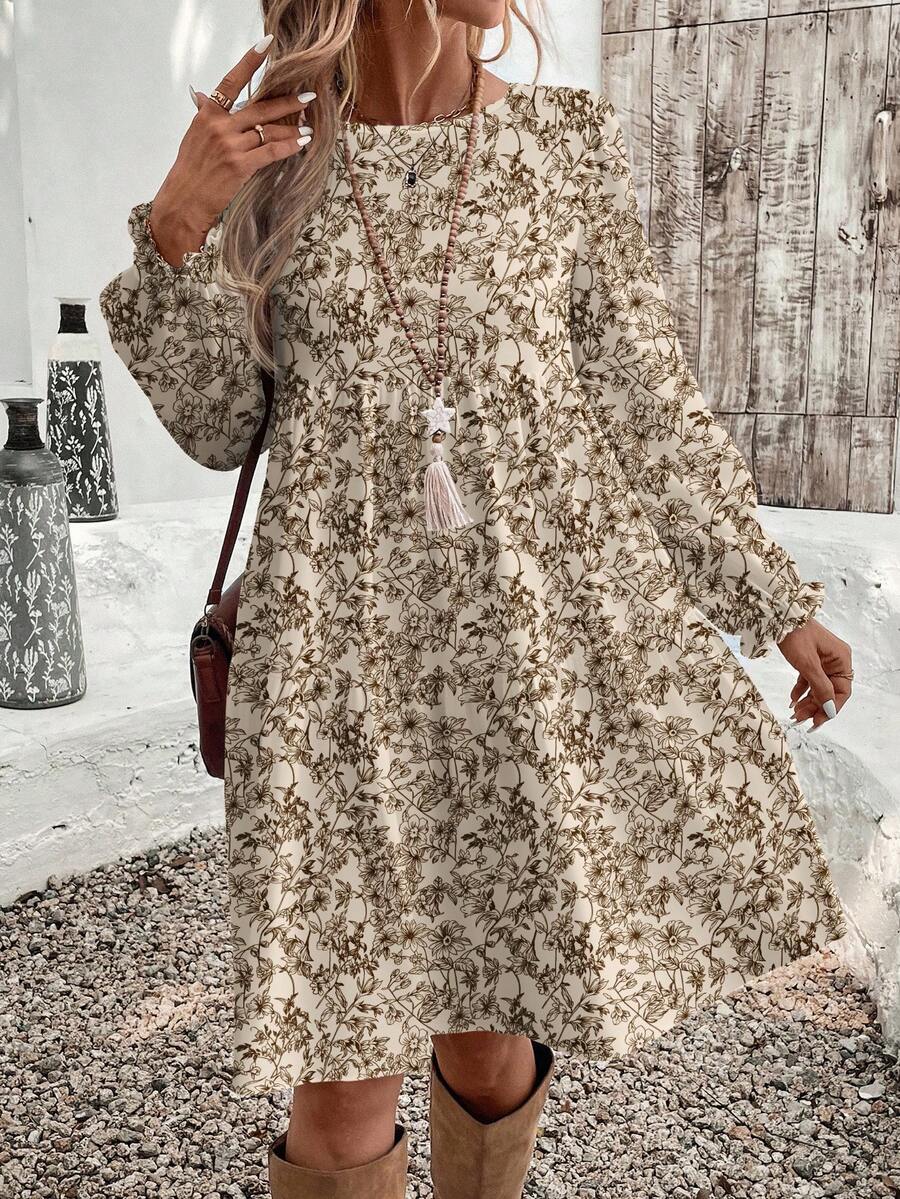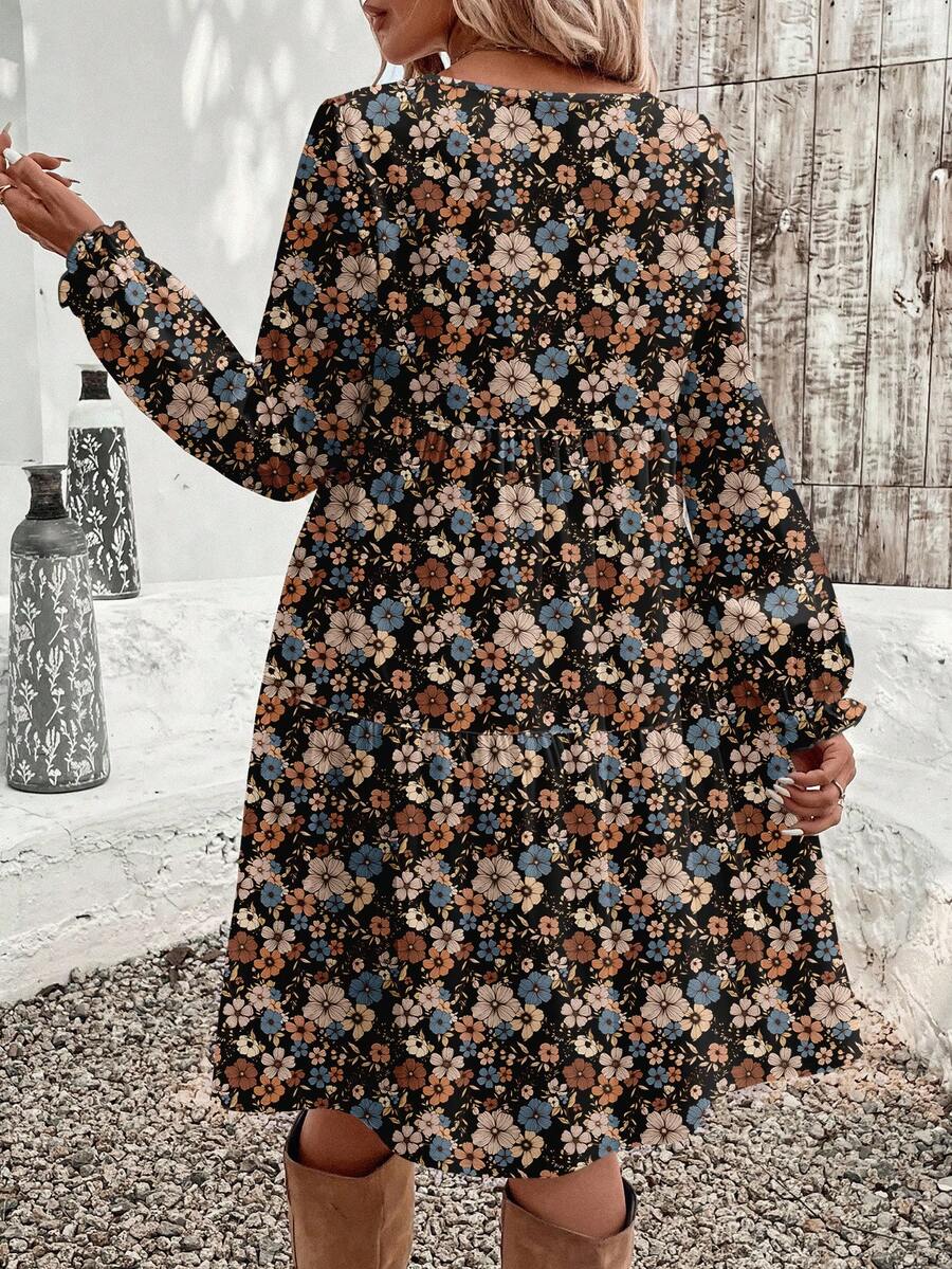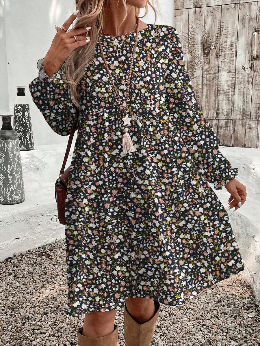 Abito corto da donna con scollo rotondo, maniche e orlo con volant, stampa retr˜