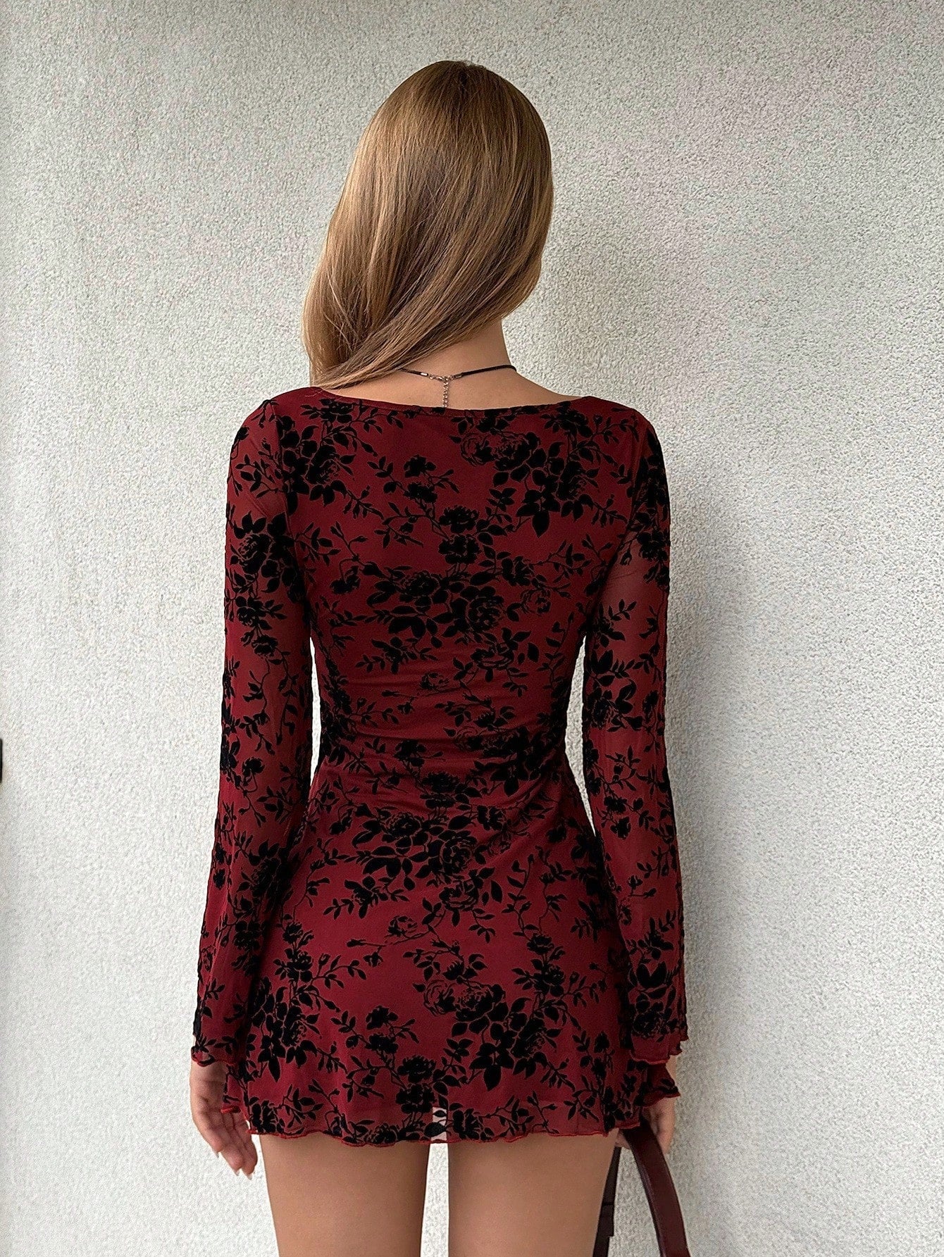 Abito mini aderente e sexy in rete floccata con lacci per le donne