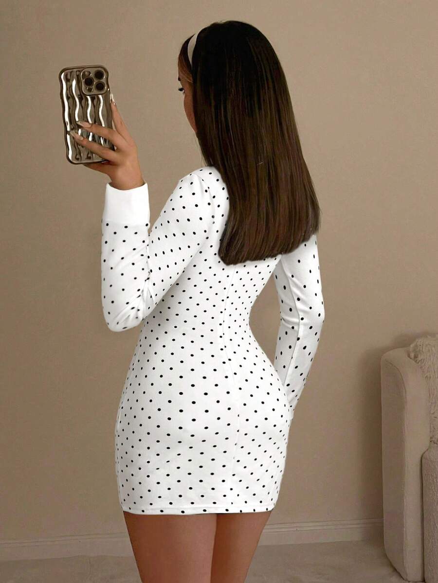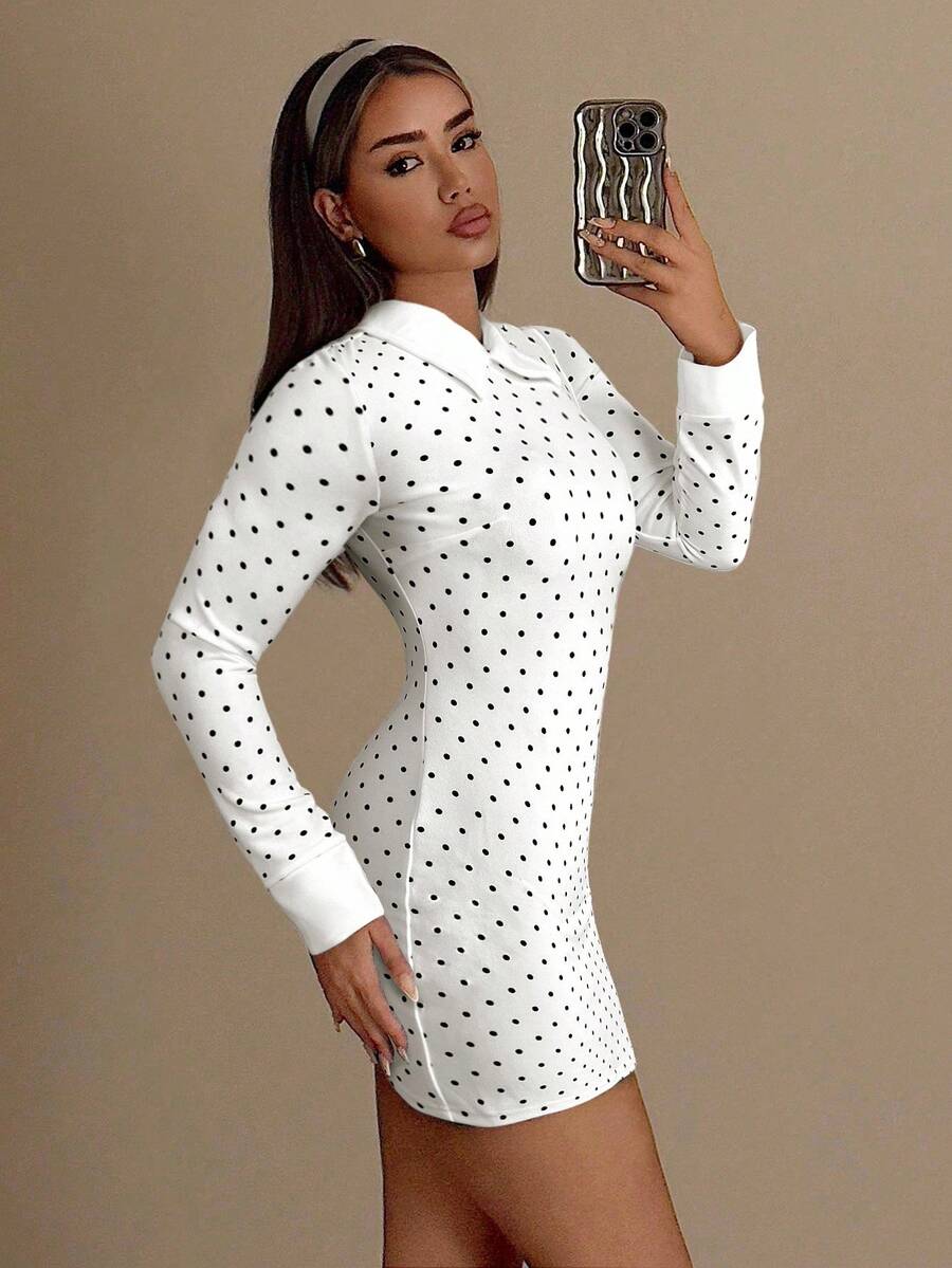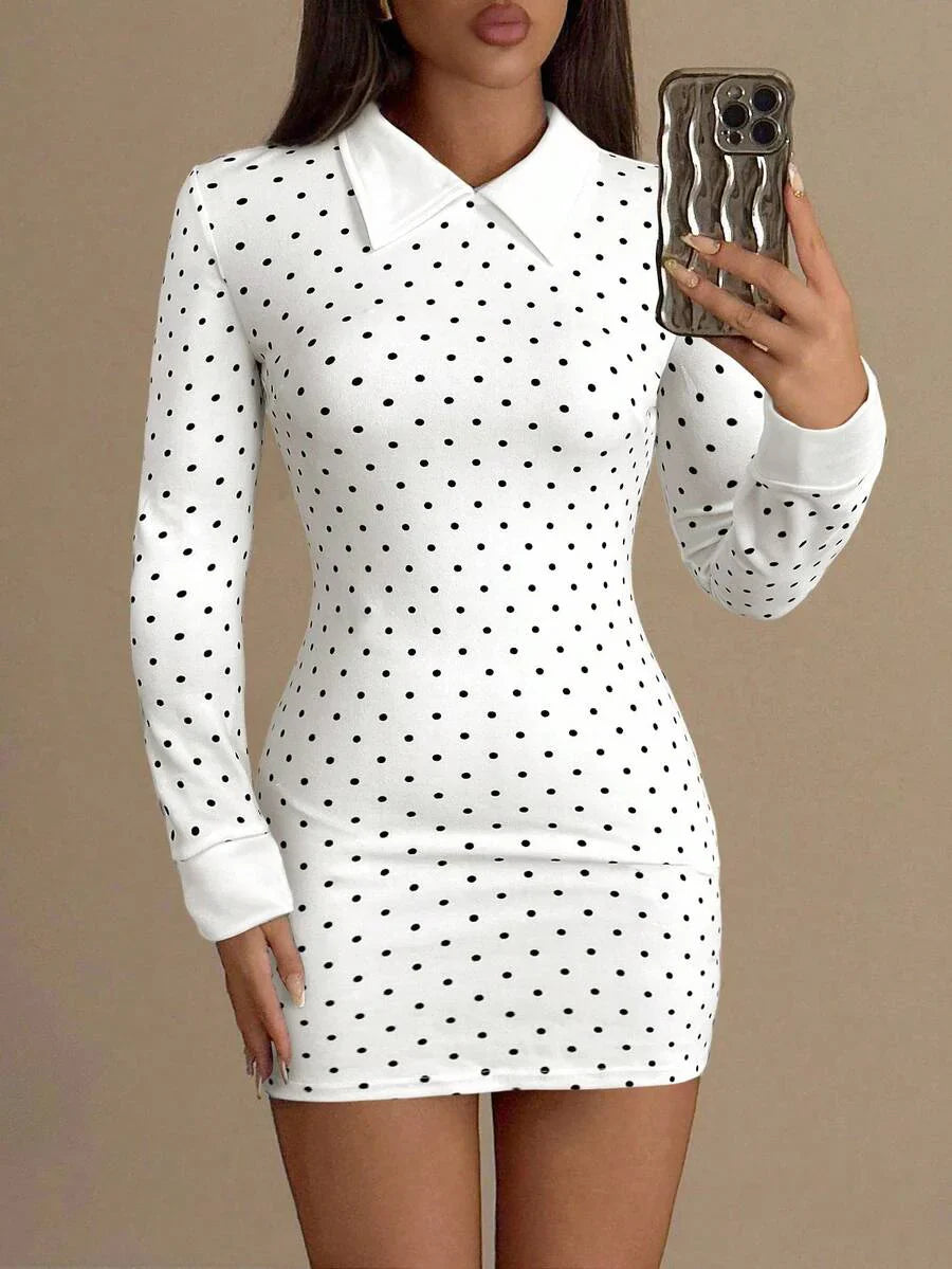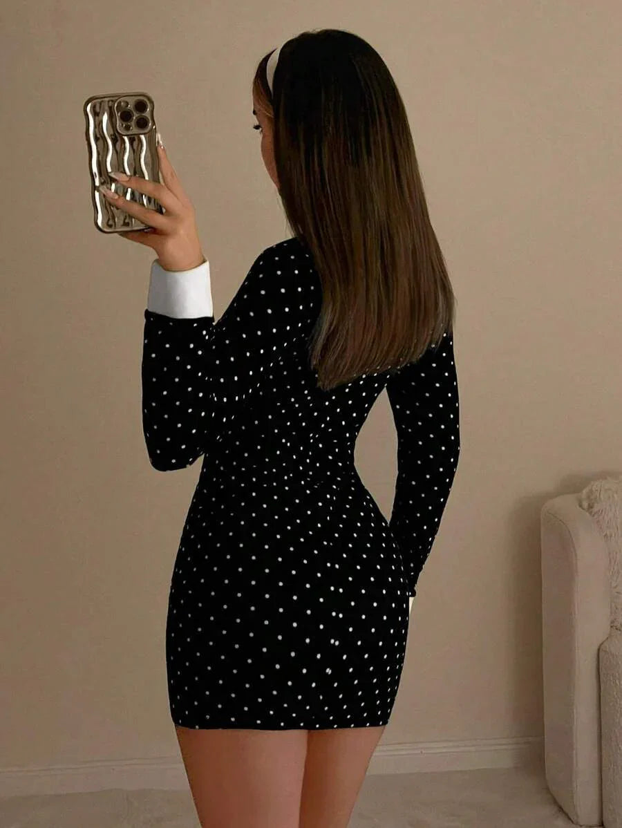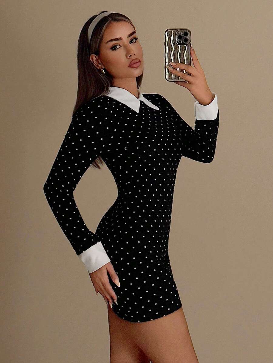 Abito Mini Con Colletto A Contrasto A Pois Bianco E Nero Per Donne