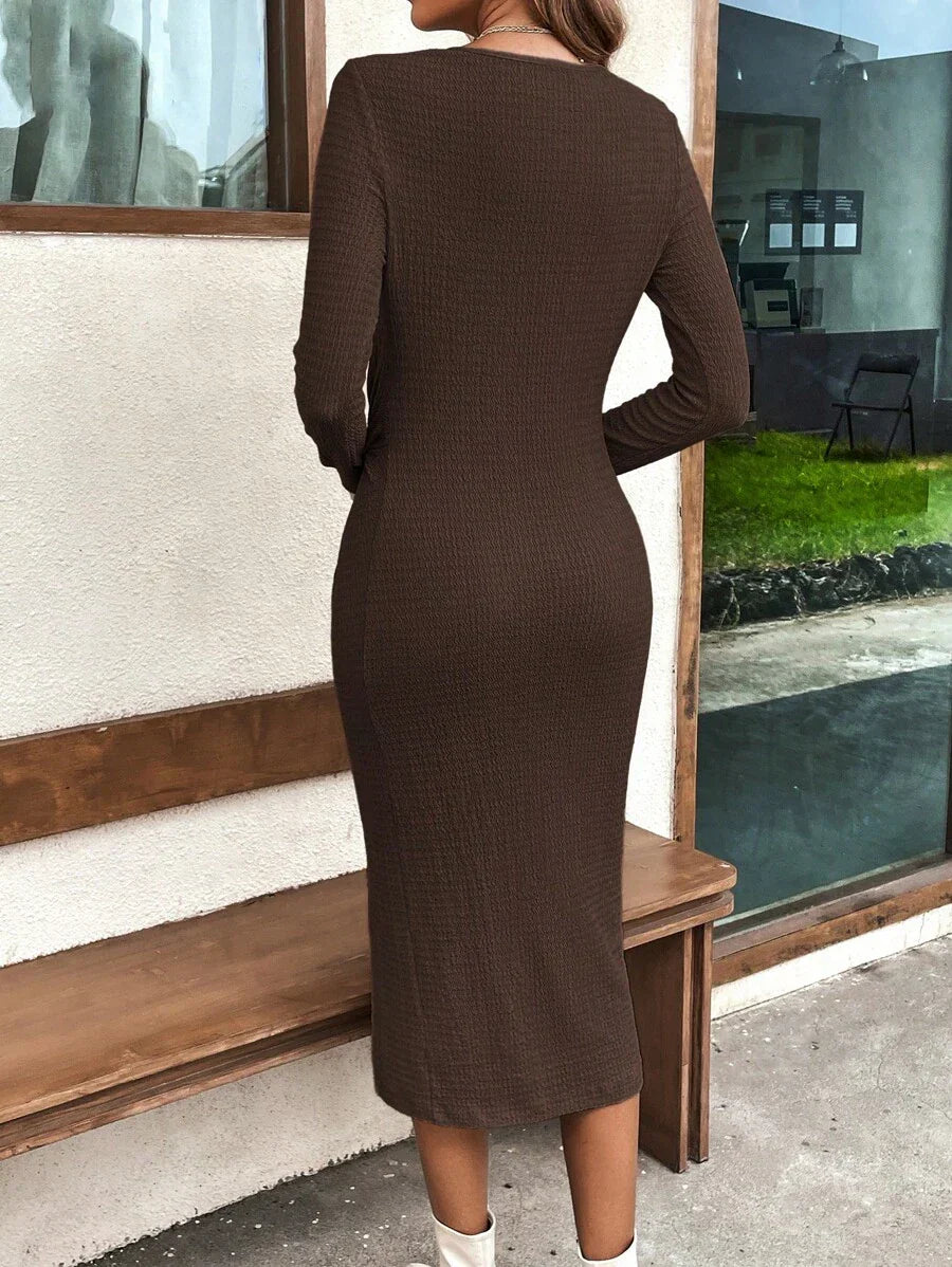Vestito Da Signora Tinta Unita Con Pieghe E Spacco Sul Fondo