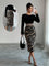 Abito a maglia con collo rotondo a righe zebrate, design unico e classico