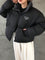 Cappotto casual versatile imbottito da donna, colore nero tinta unita, con stampa a lettere sul polsino e orlo