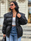 Cappotto invernale di colore blu uniforme, caldo e spesso, alla moda