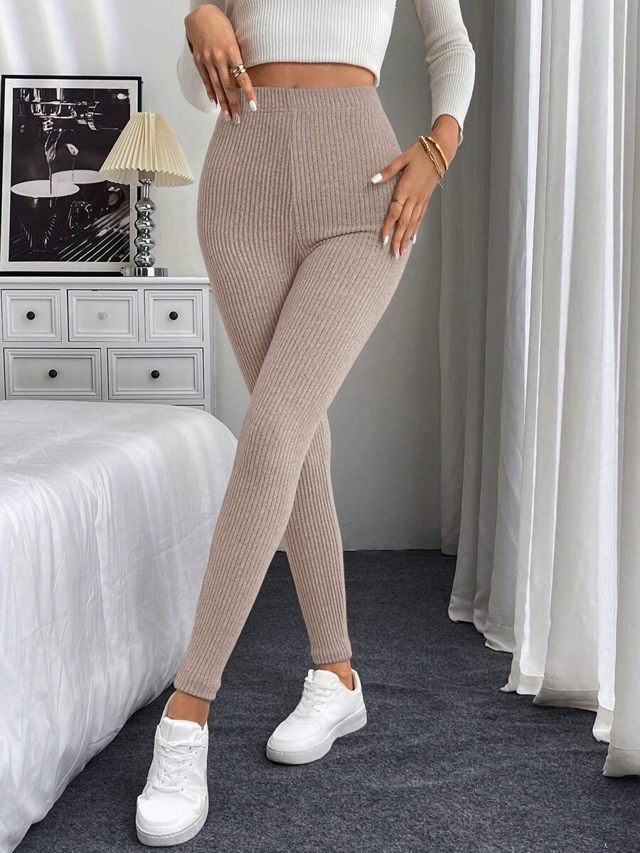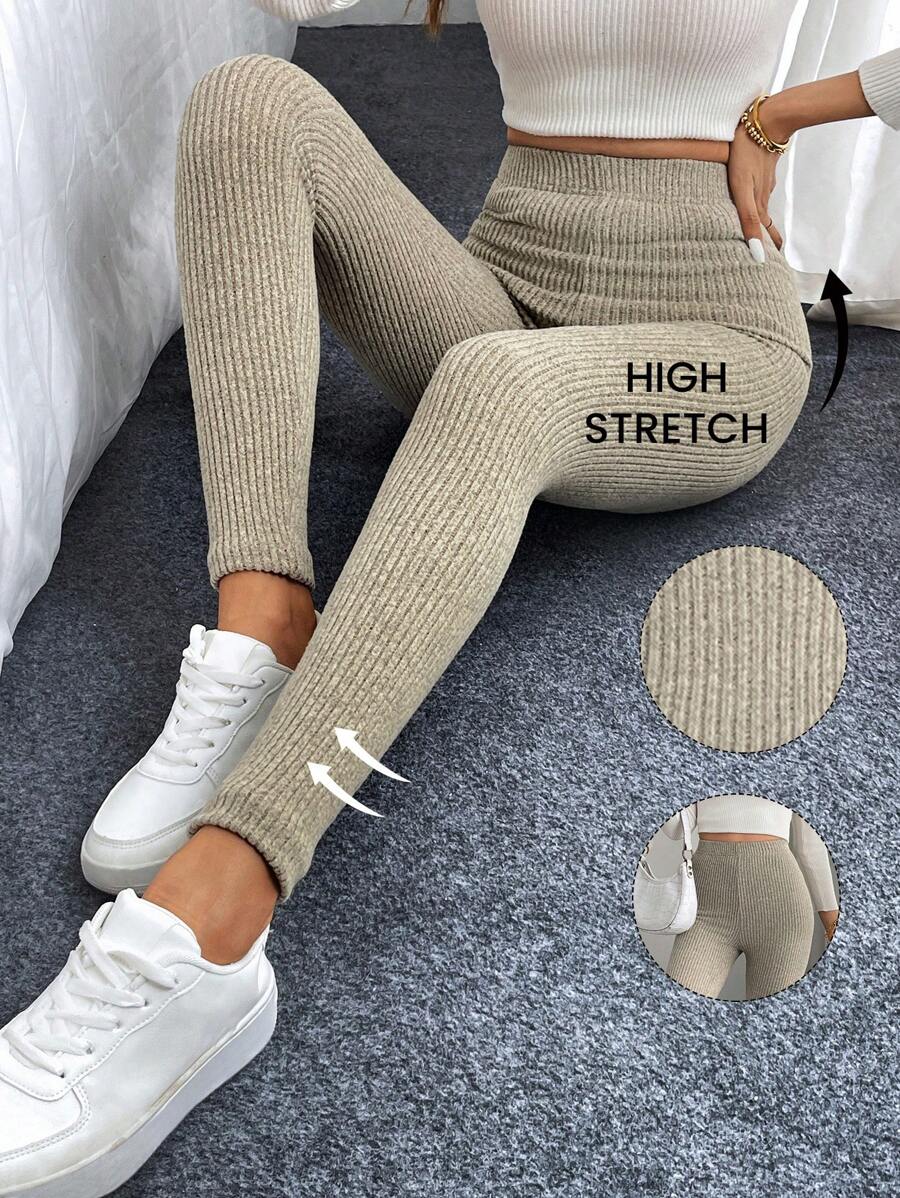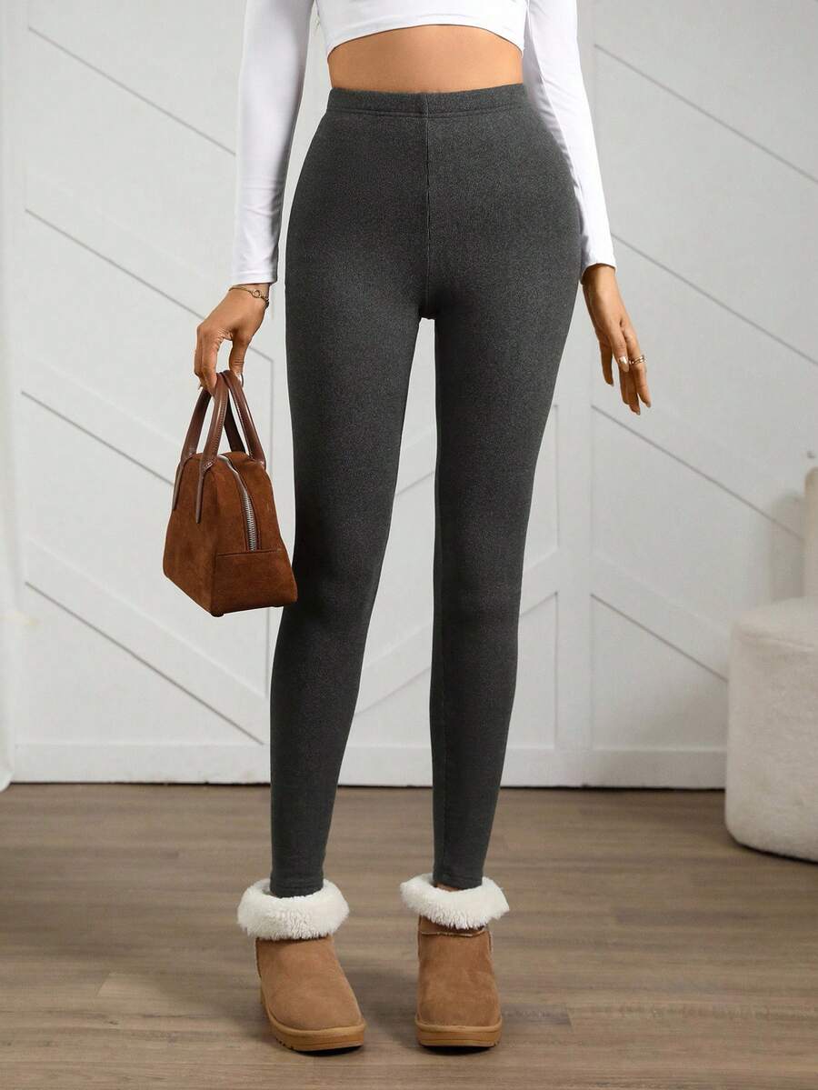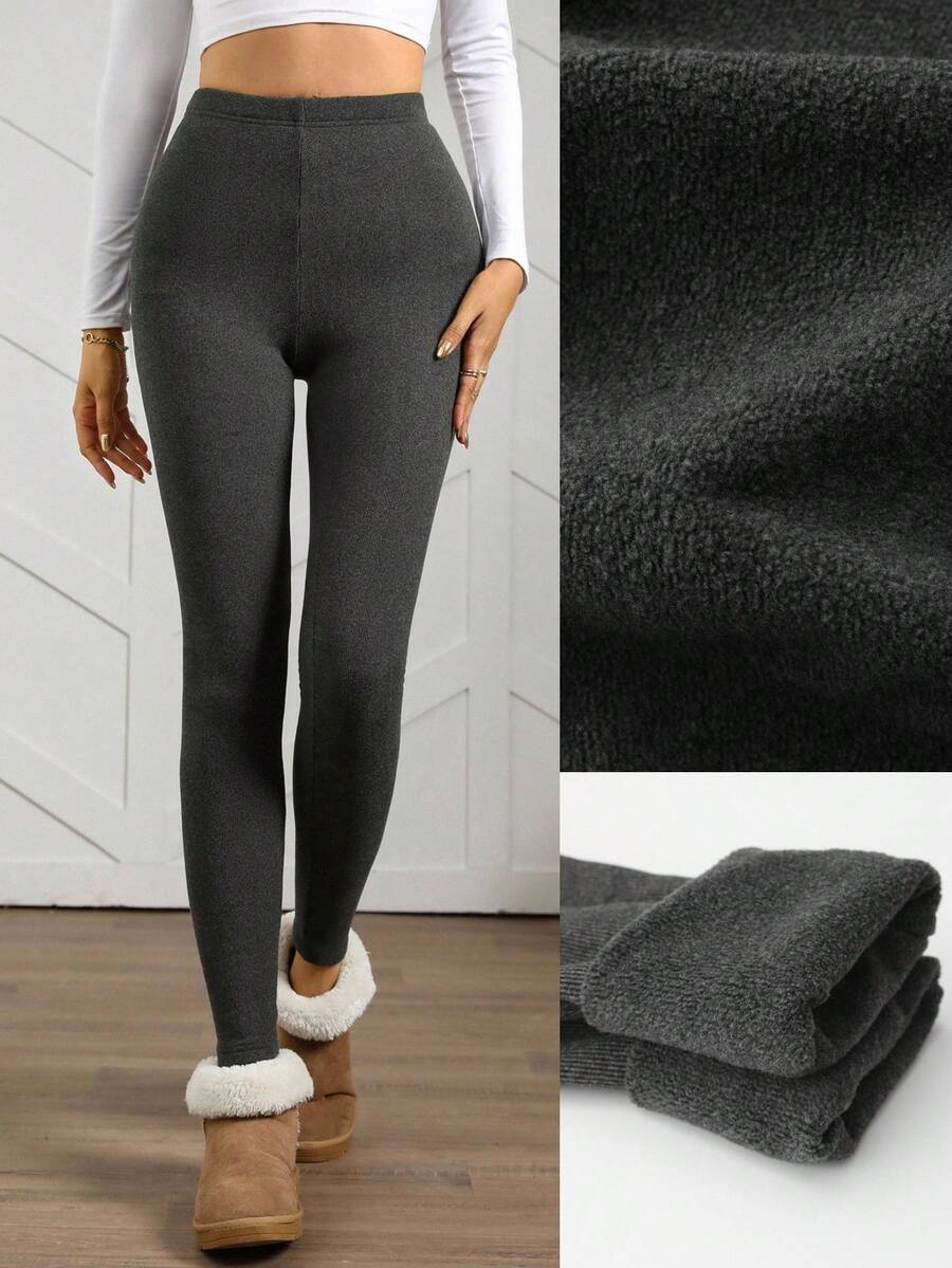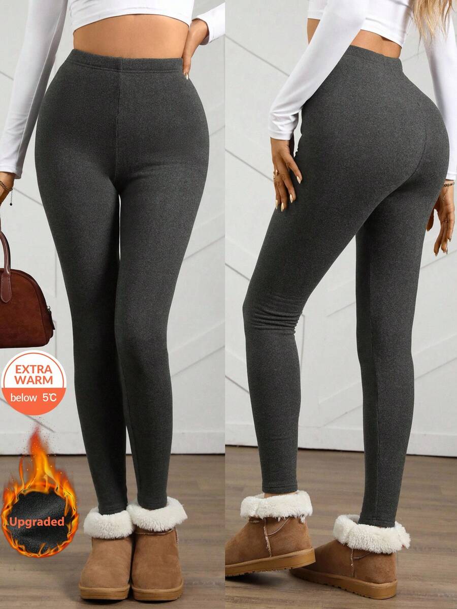 Leggings casual da donna in vita alta con costine e fodera in pile