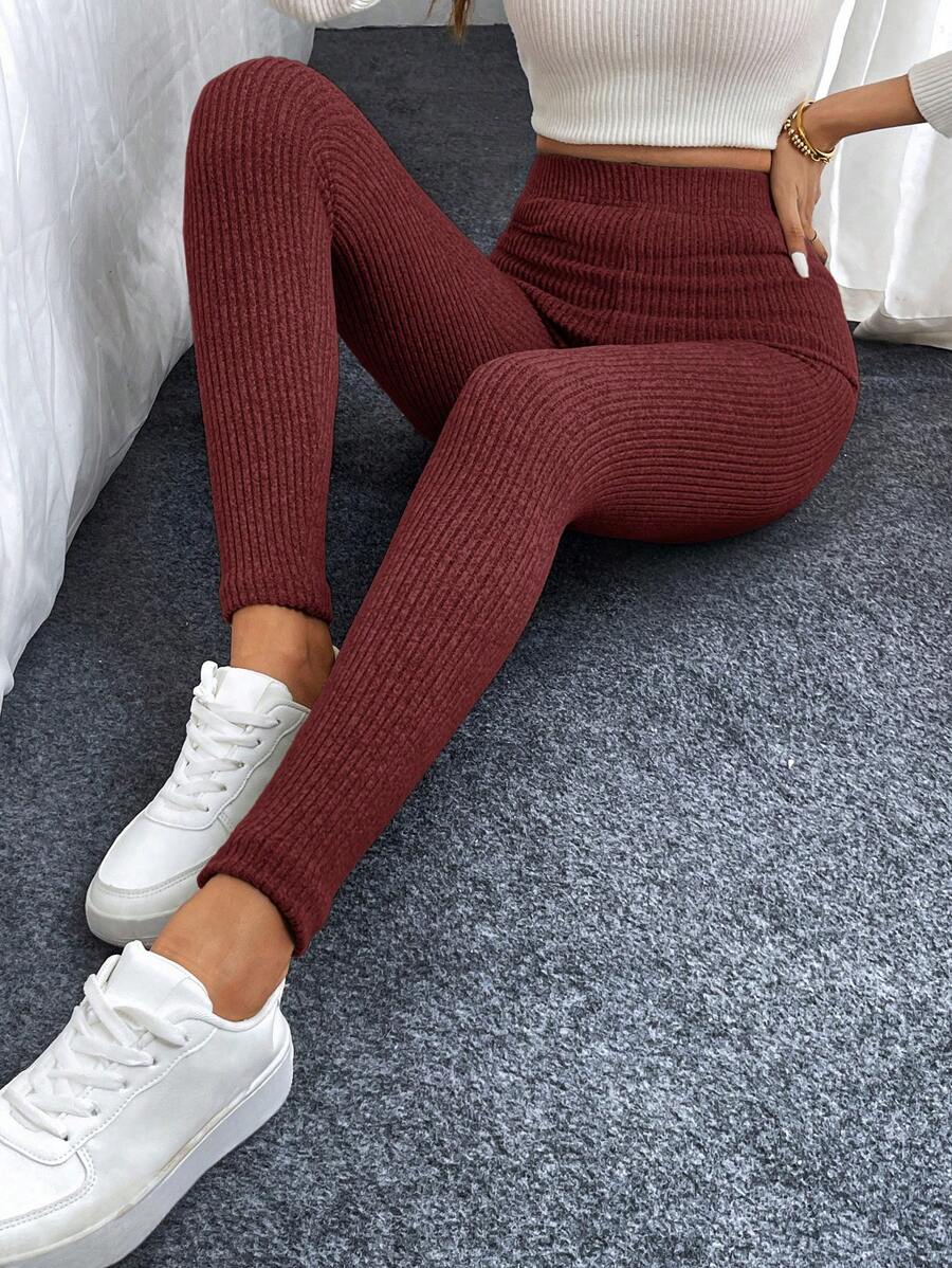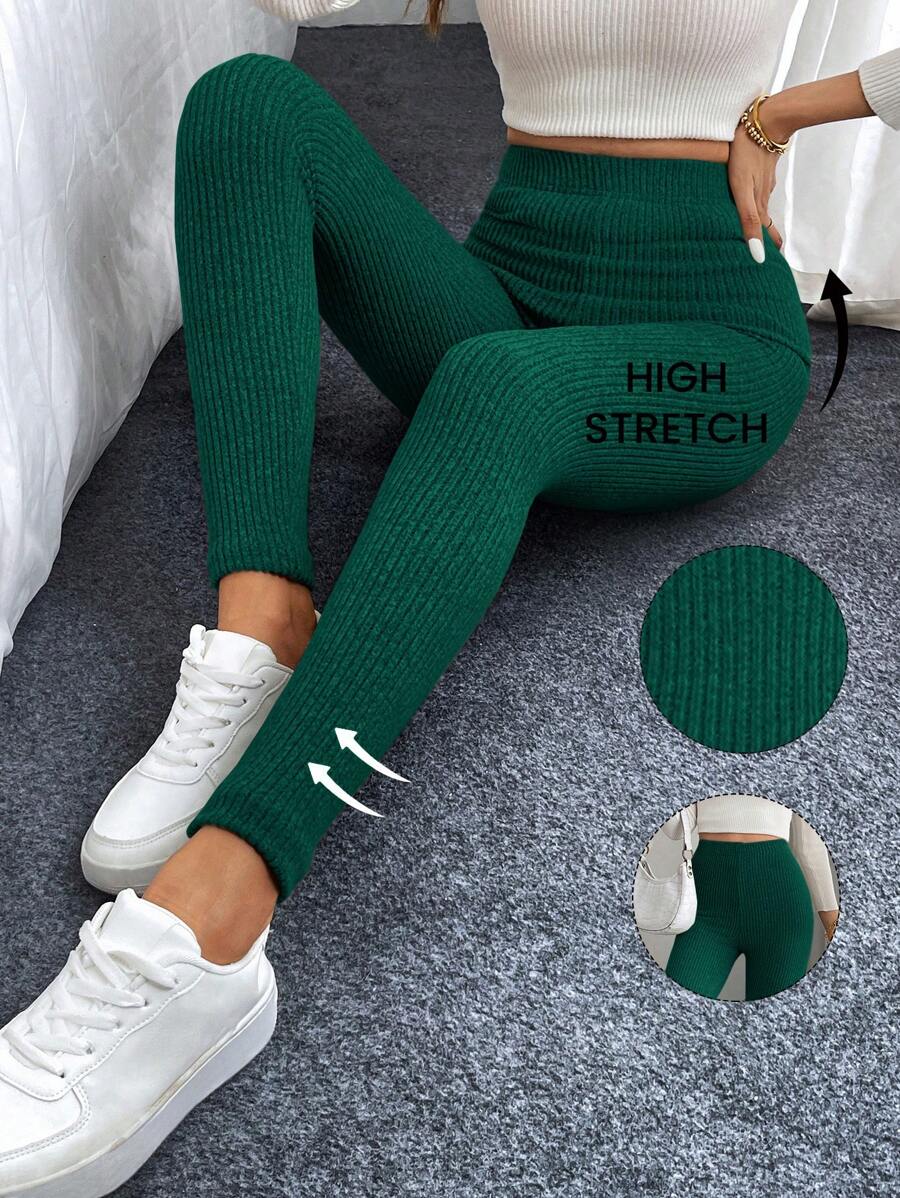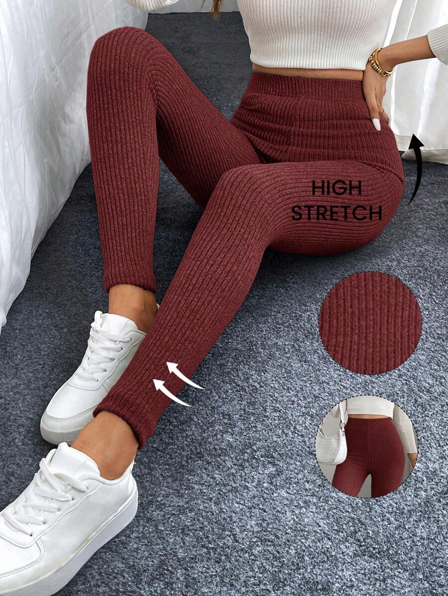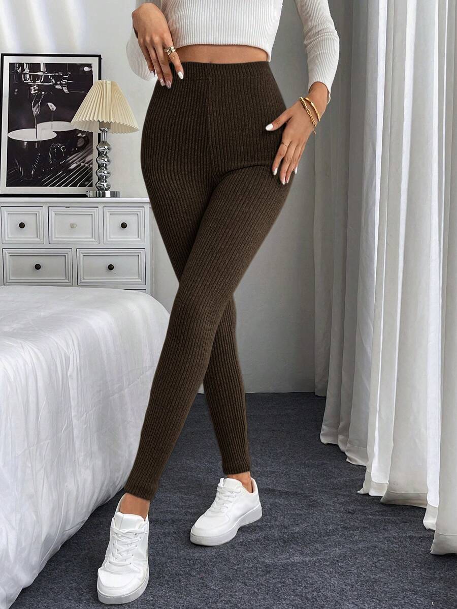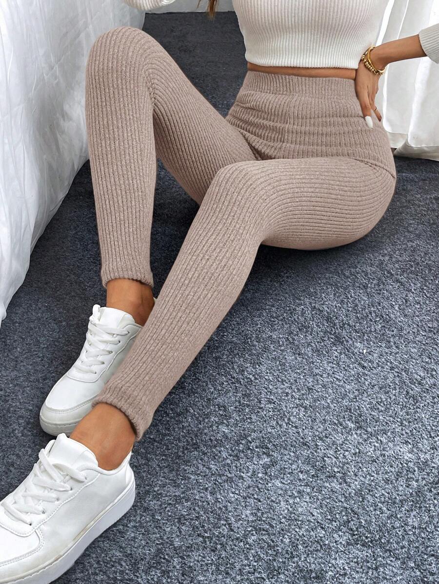 Leggings casual da donna in vita alta con costine e fodera in pile