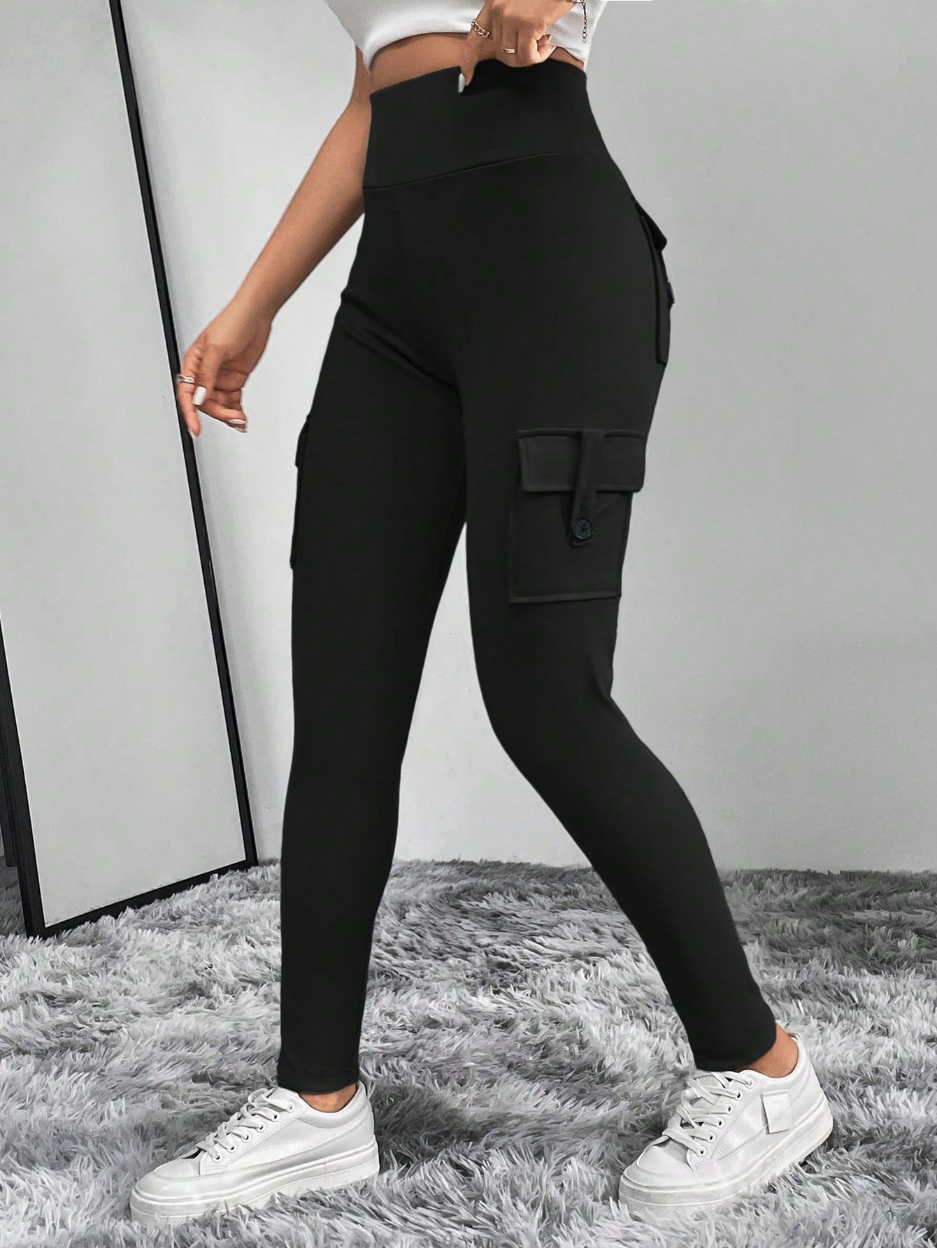 Leggings Da Donna A Vita Alta Con Copertura A Flip E Tasche