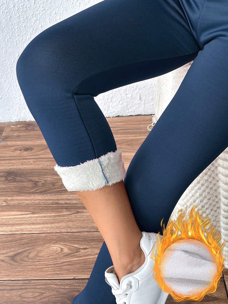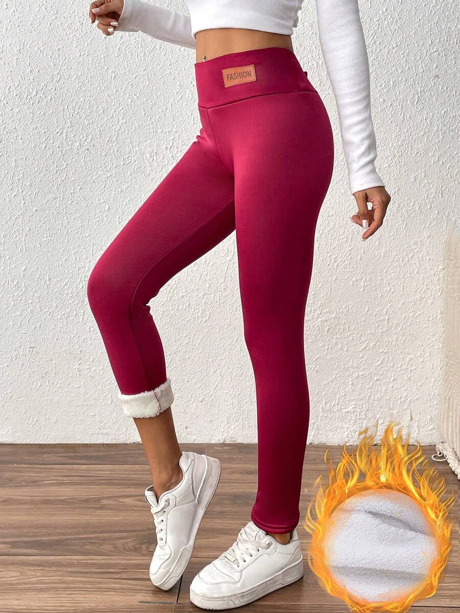 Leggings termici donna in vita alta con fodera, pantaloni elastici slim fit caldi