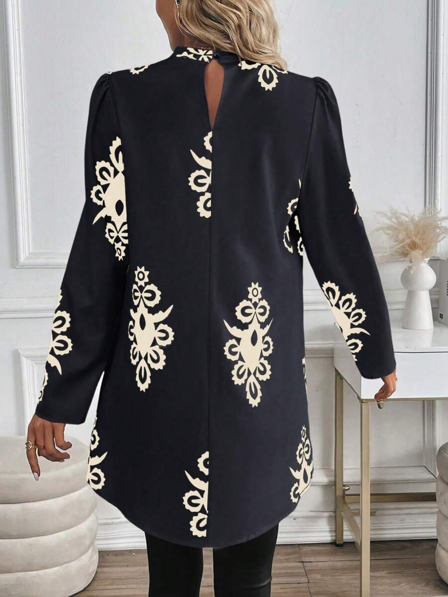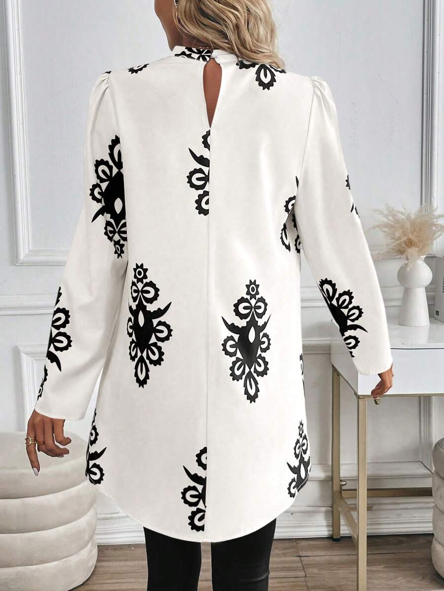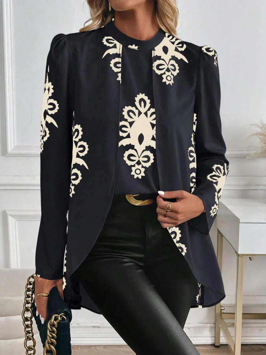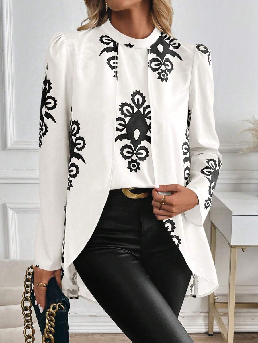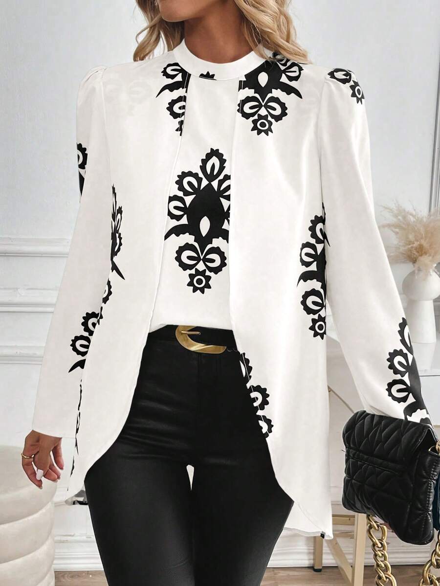 Blusa casual da donna con orlo asimmetrico e stampa per l'autunno