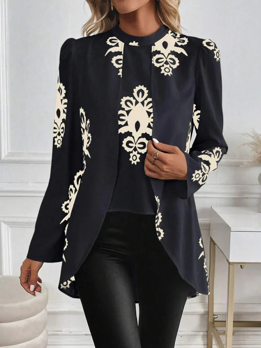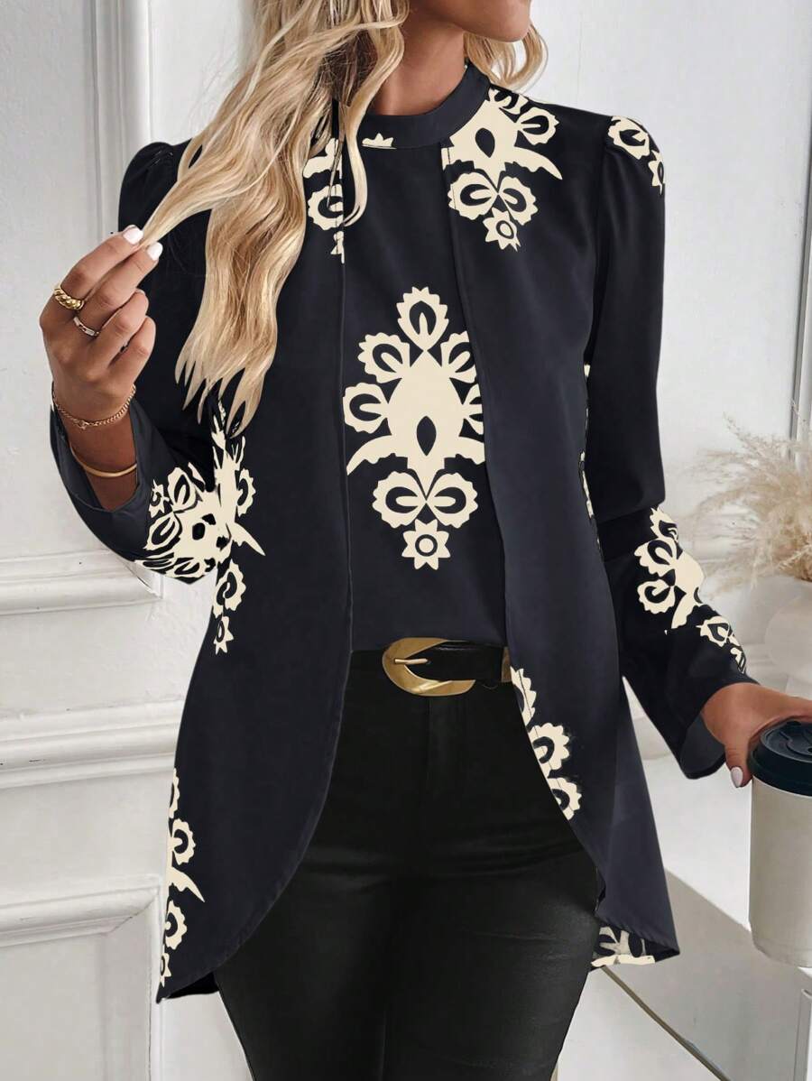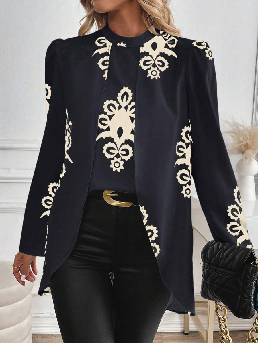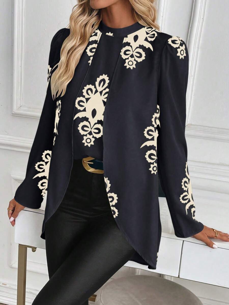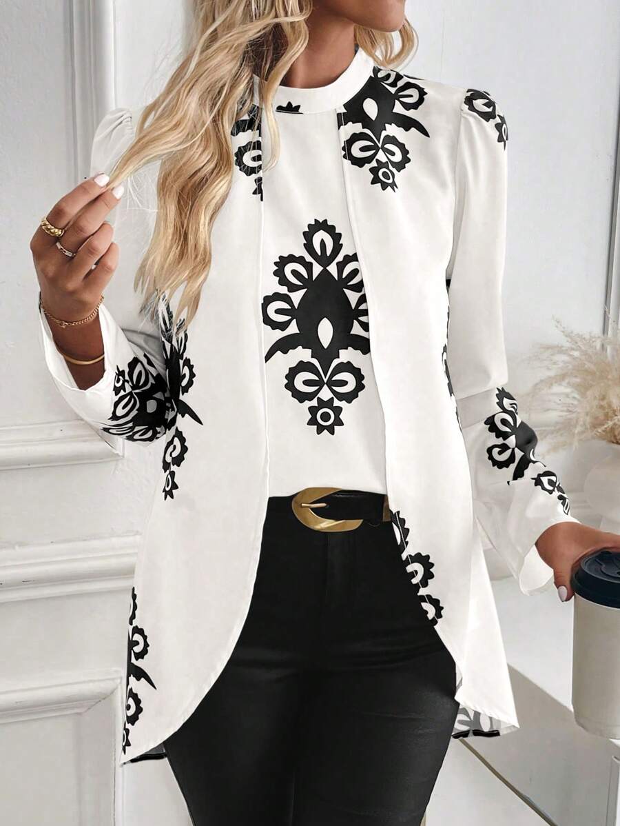 Blusa casual da donna con orlo asimmetrico e stampa per l'autunno
