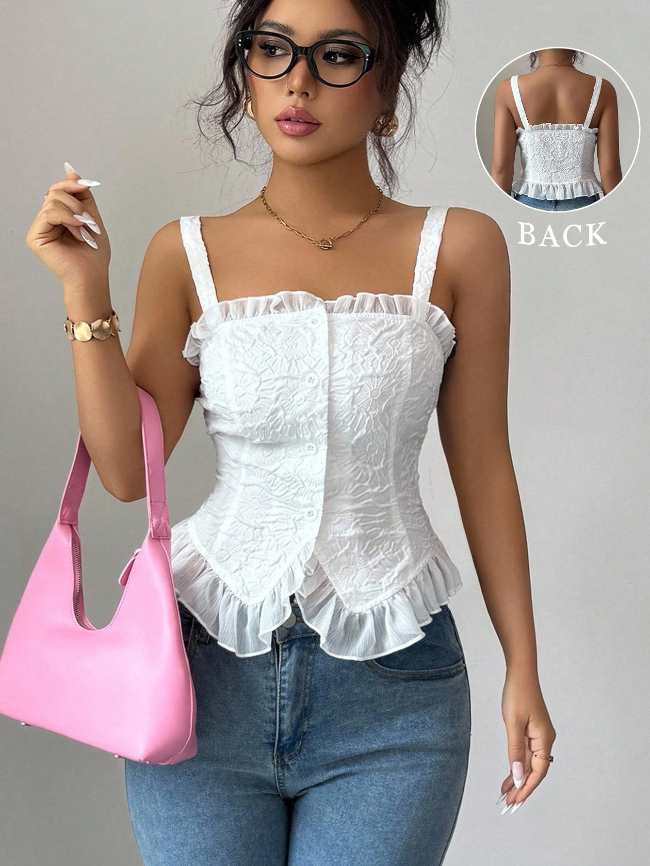 Canotta aderente da donna in chiffon con volant e design a patchwork