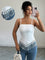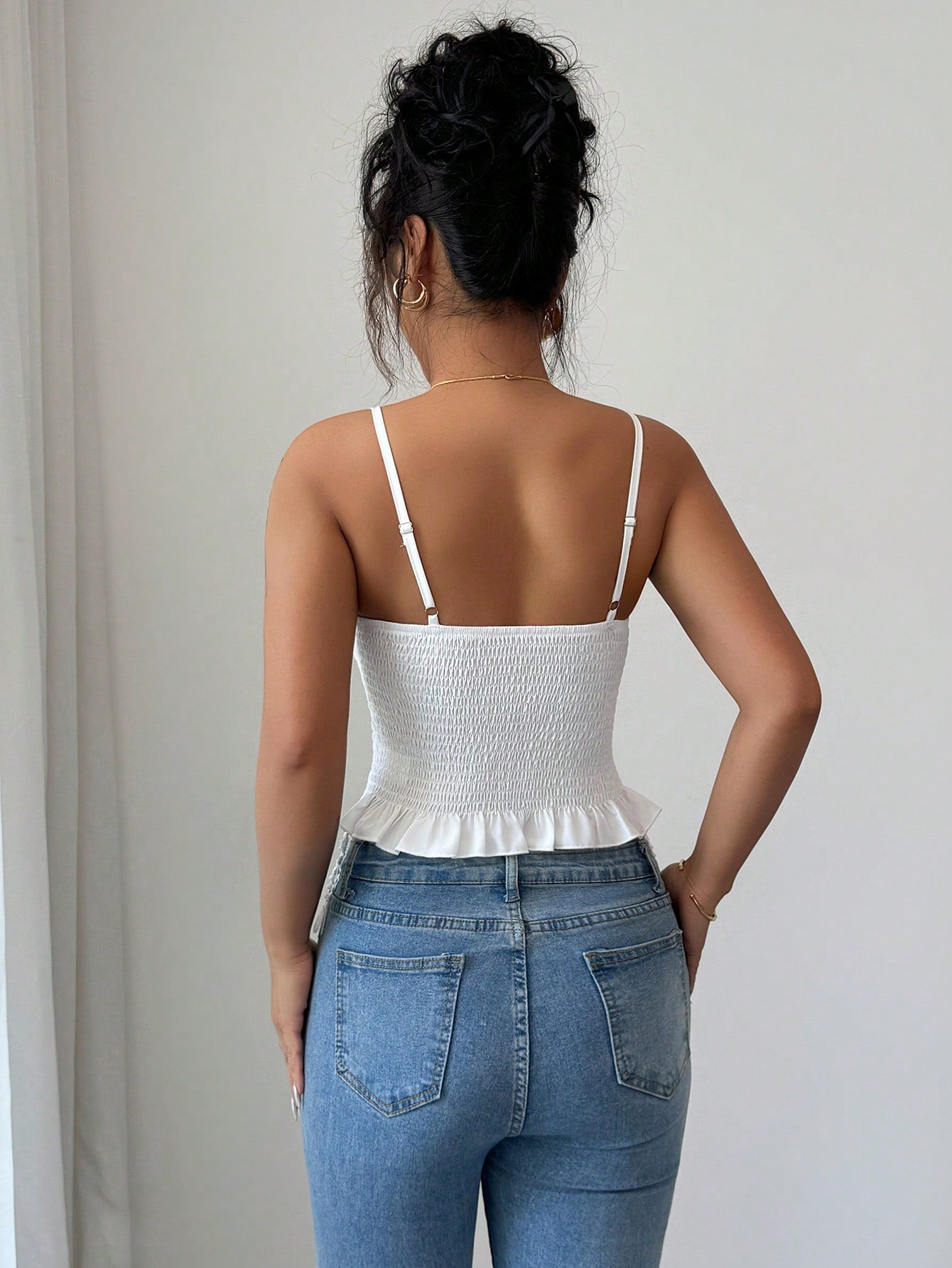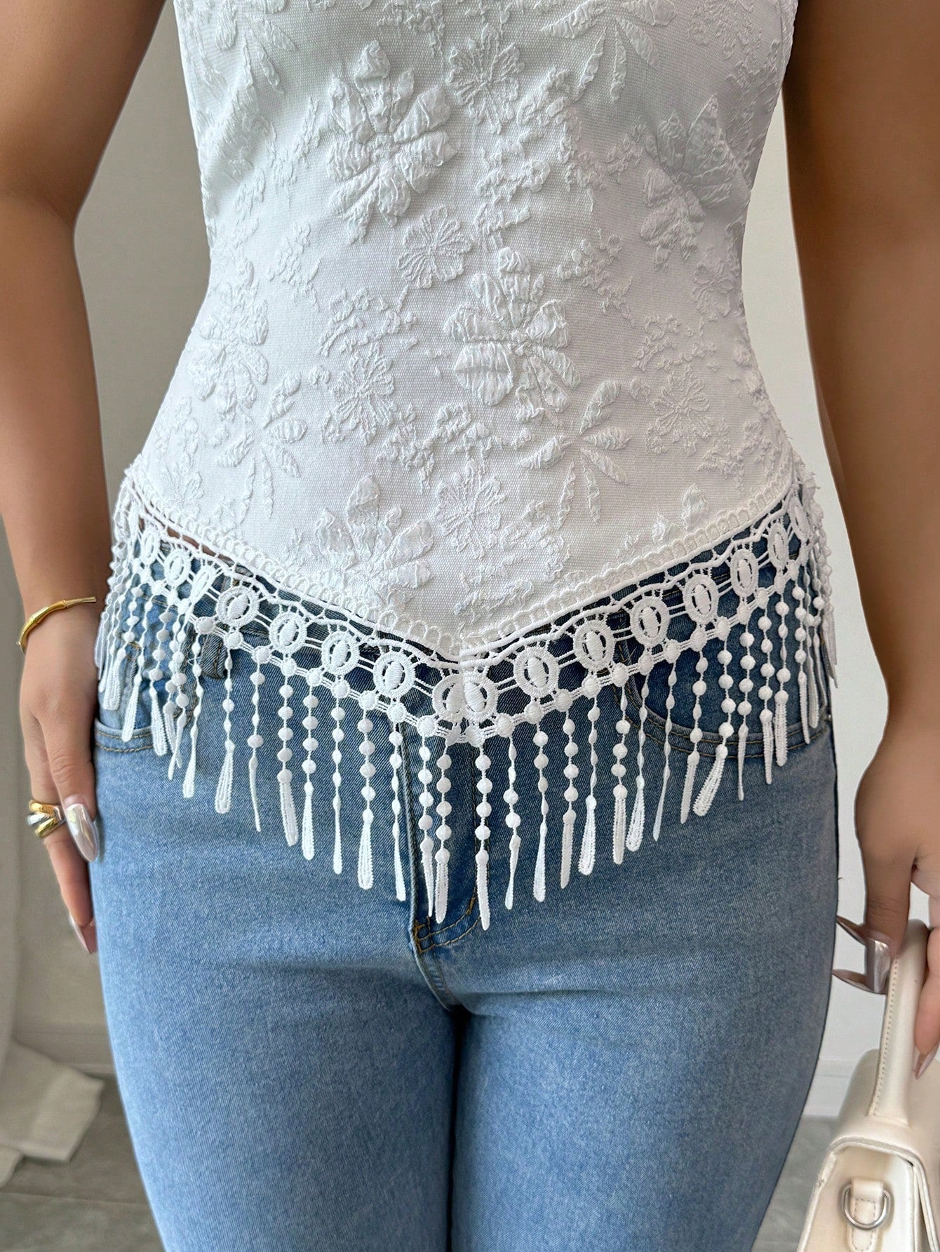 Canotta da donna con fantasia floreale jacquard e orlo con frange