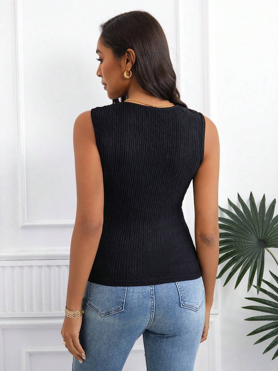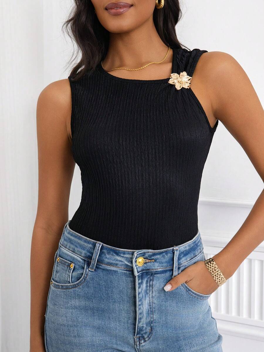 Canotta da donna in tessuto lavorato con decorazione in metallo