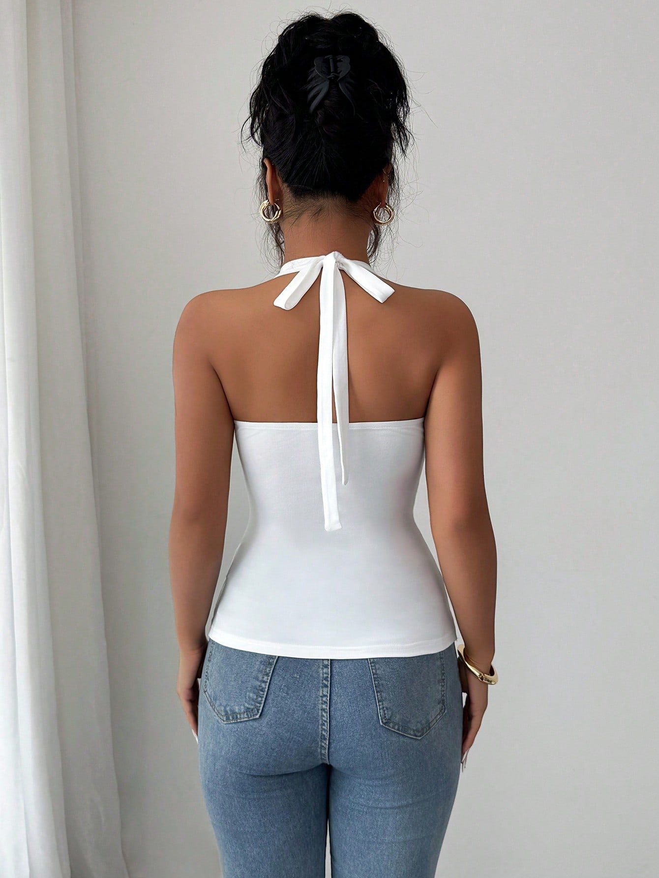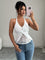 Canotta senza maniche a collo alto, in pizzo bianco con inserti