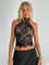 Canotta sexy nera con schiena scoperta e collo a merletto per donna