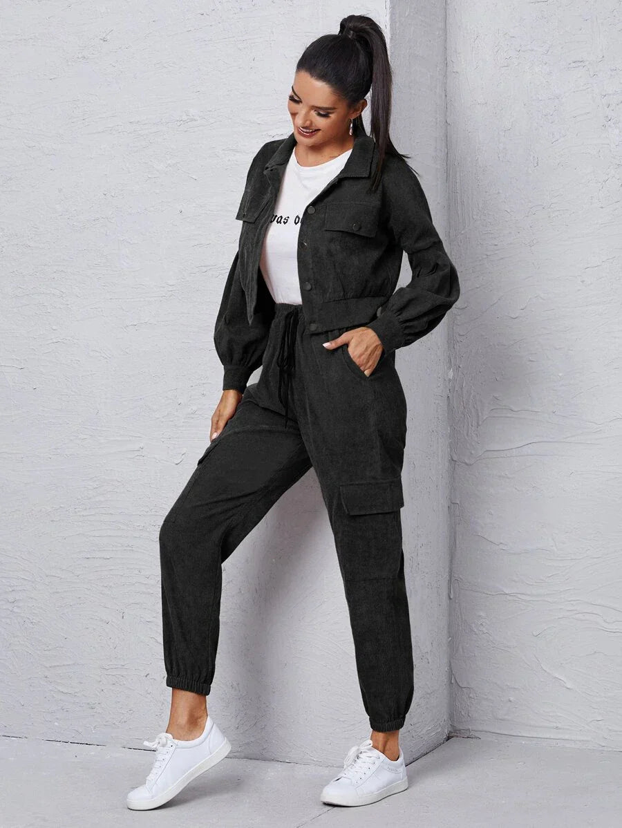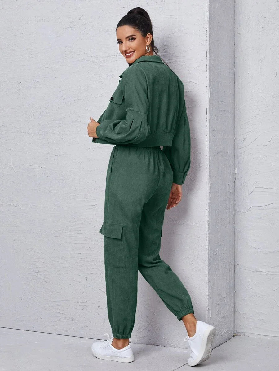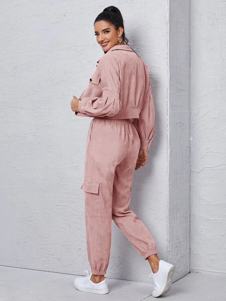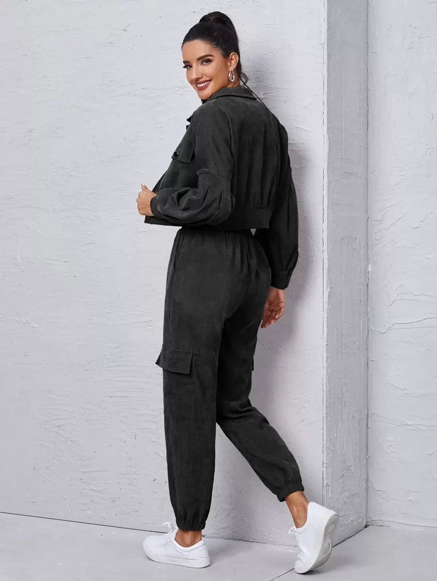 Coordinato 2 pezzi Pantaloni cargo con nodo e giacca con patta in velluto a coste