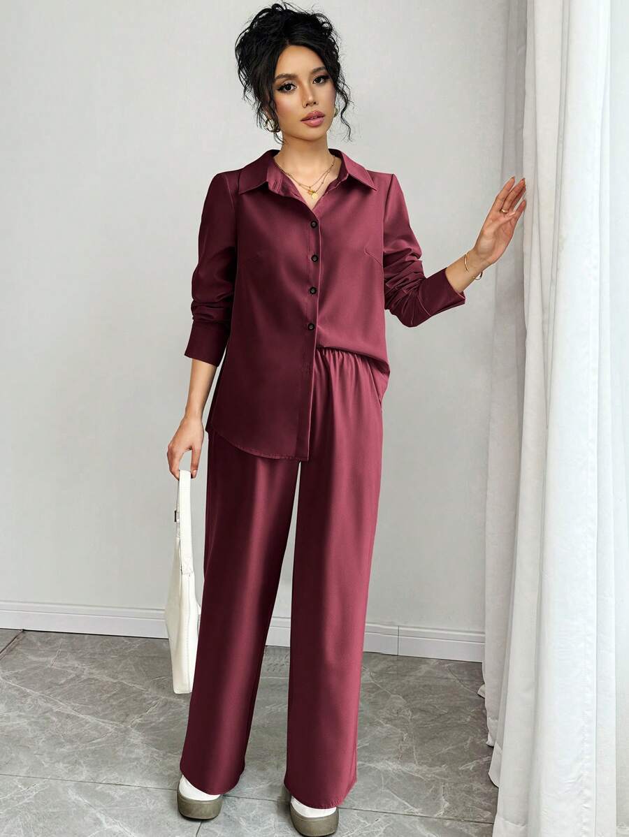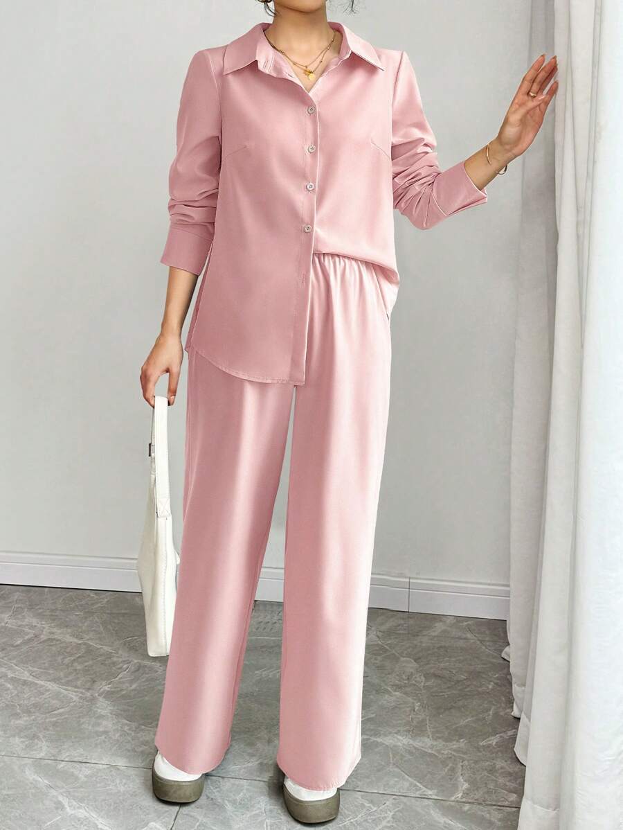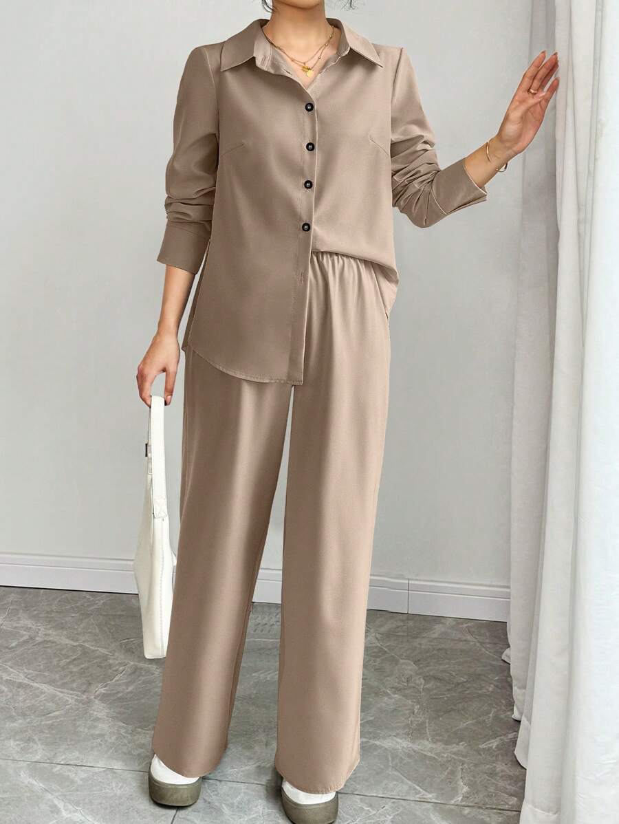 Set da 2 pezzi Magliette casual a maniche lunghe arricciati per donna