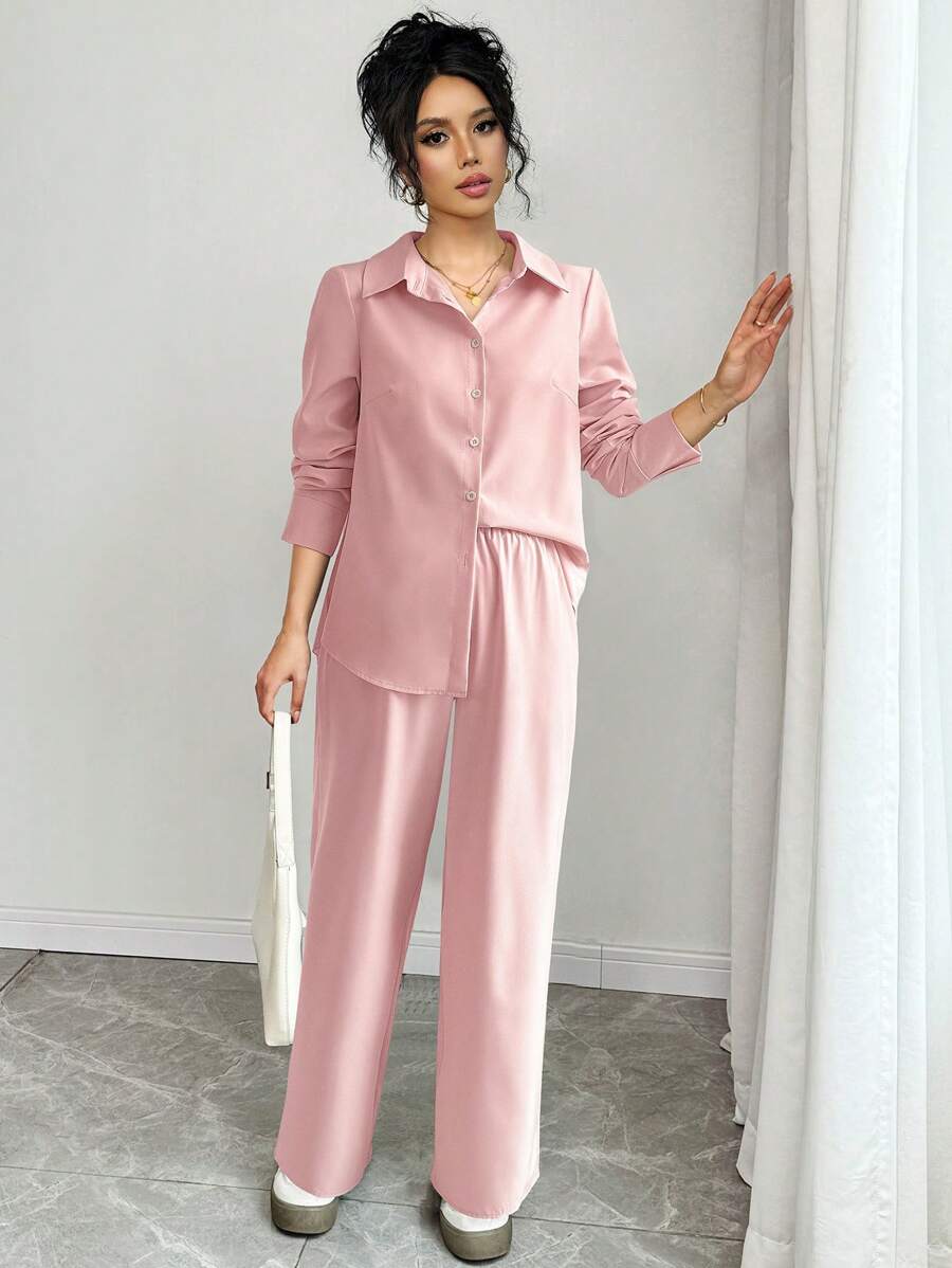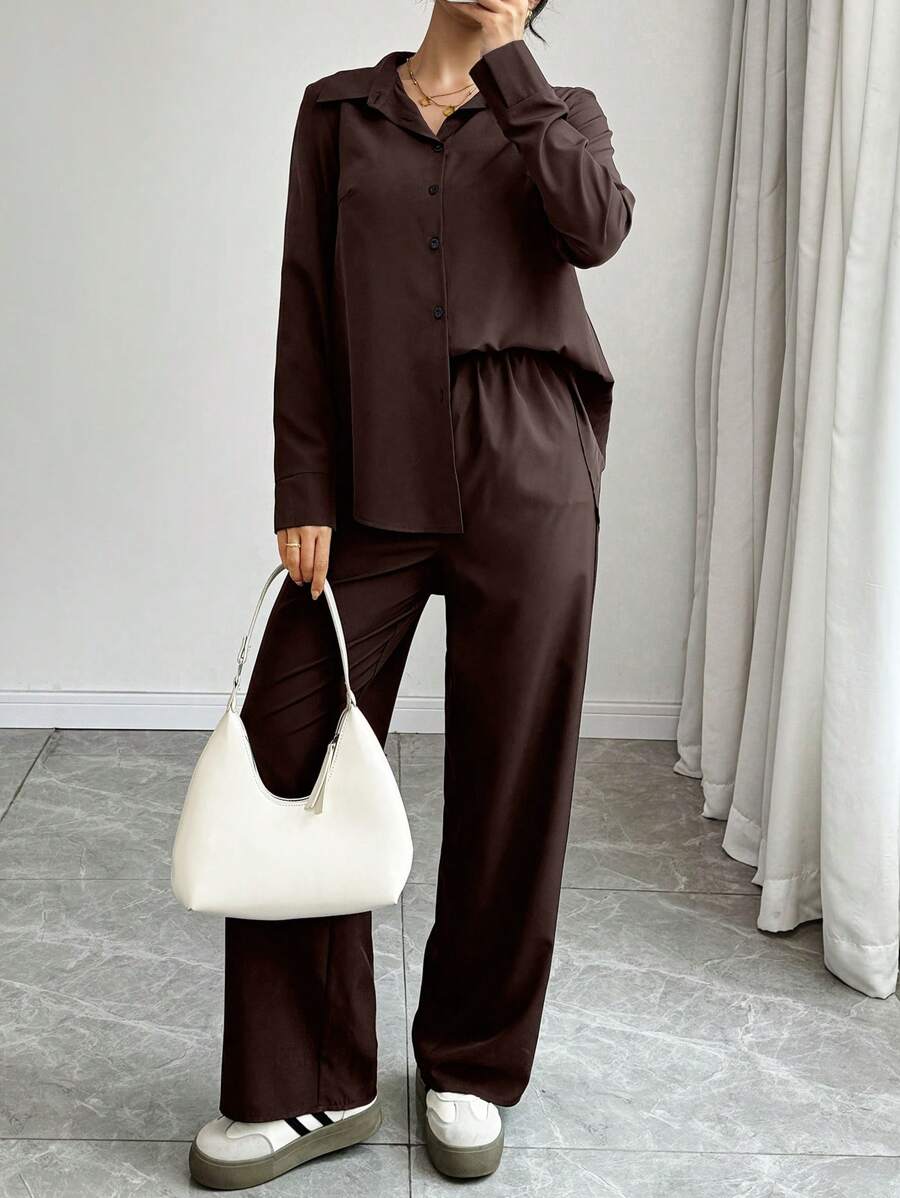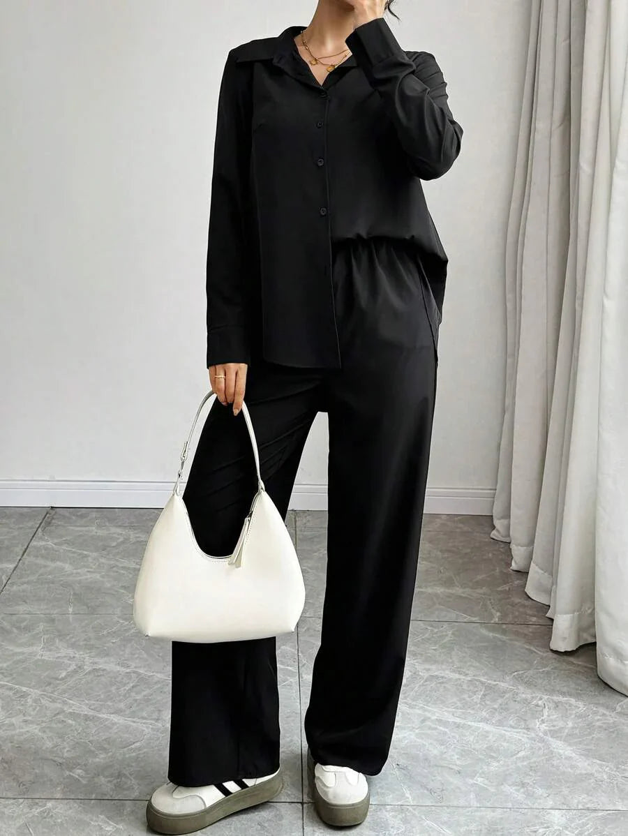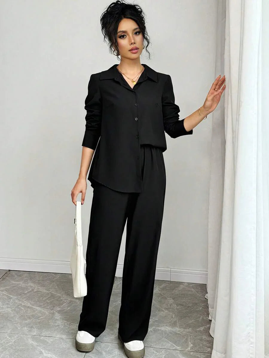 Set da 2 pezzi Magliette casual a maniche lunghe arricciati per donna