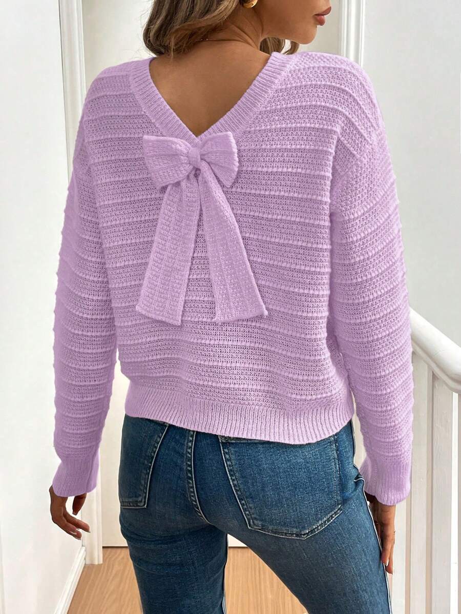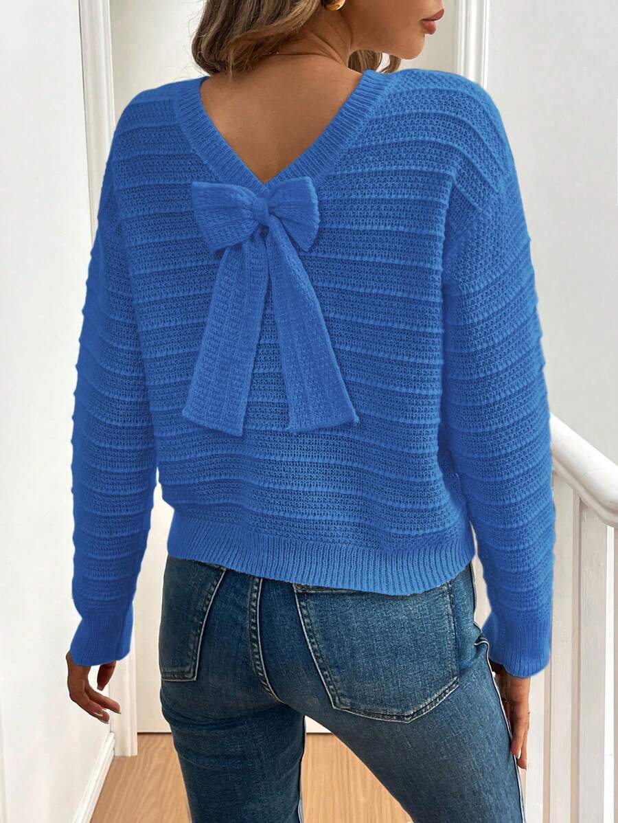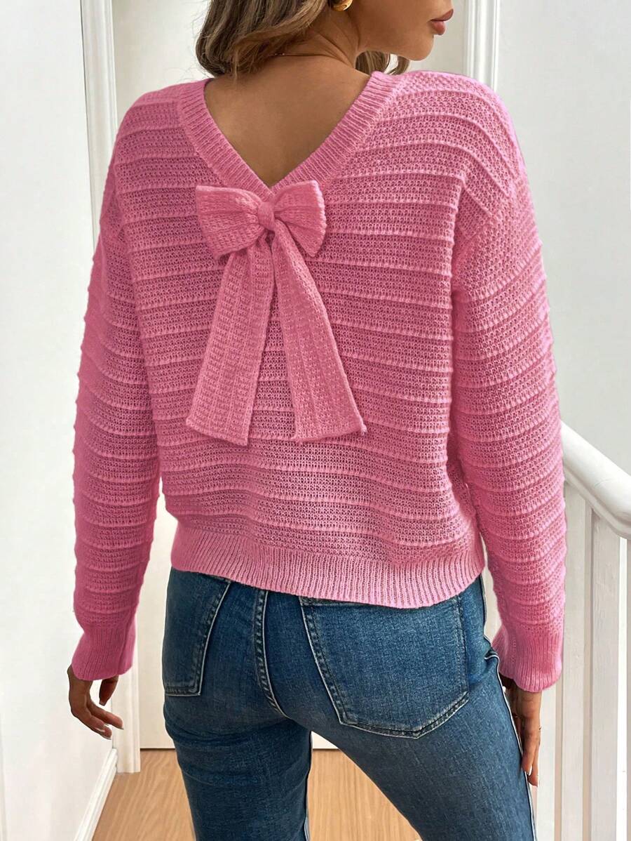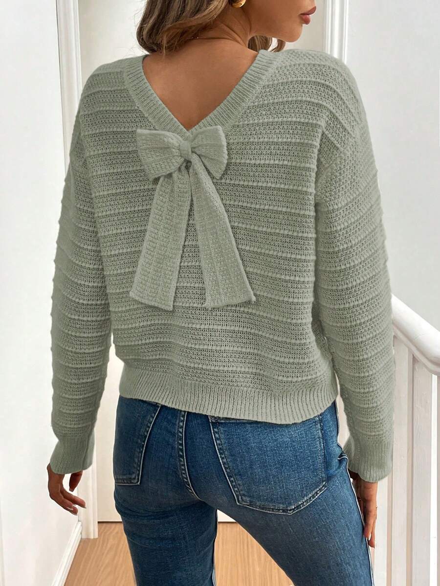 Maglione casual ed elegante da donna con decorazione a fiocco