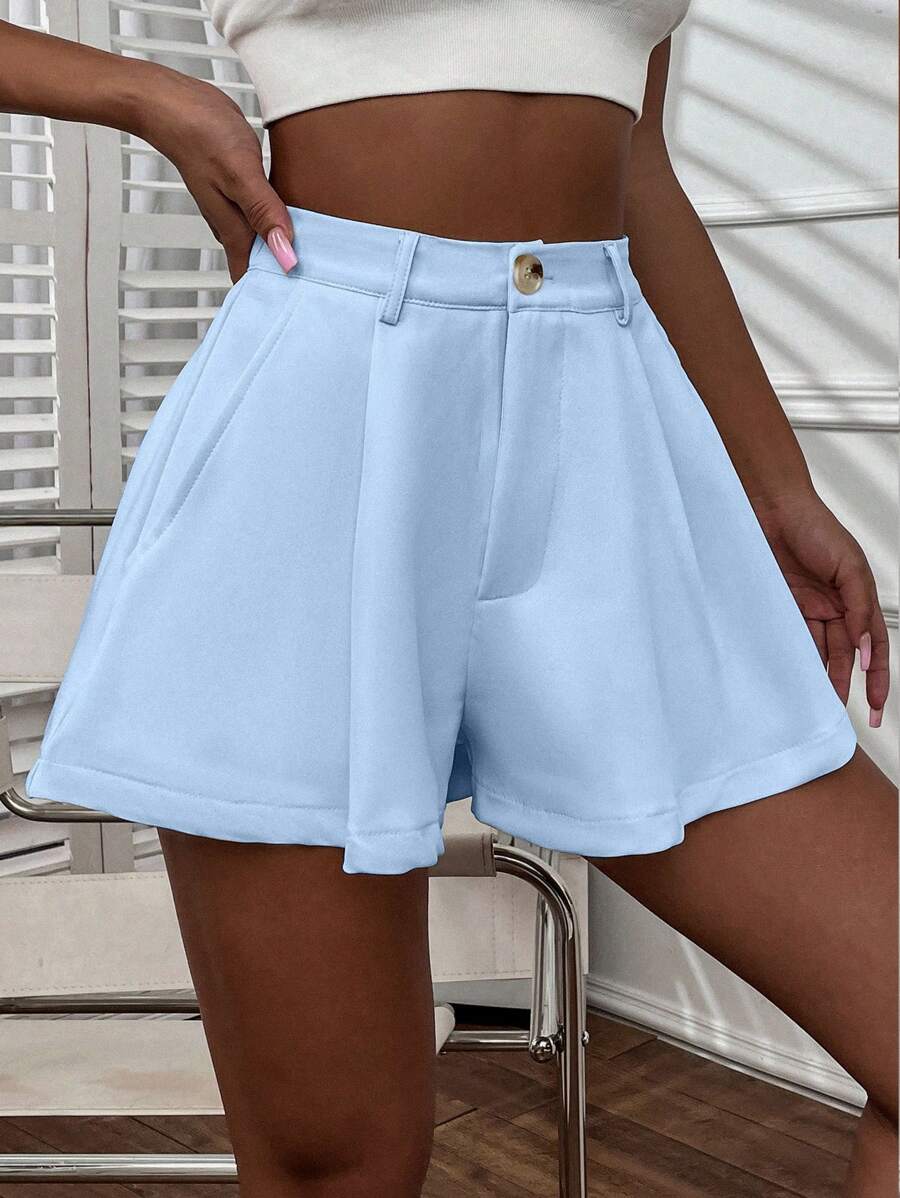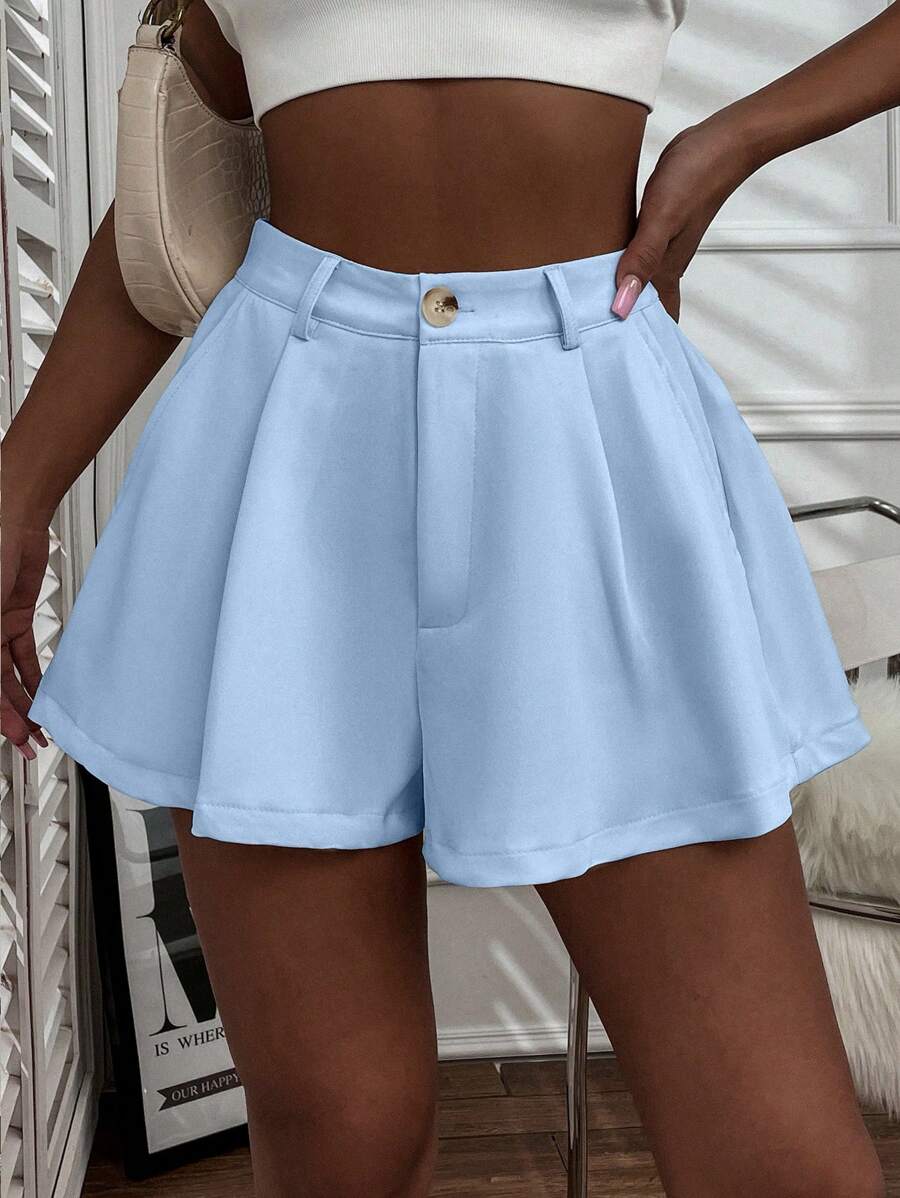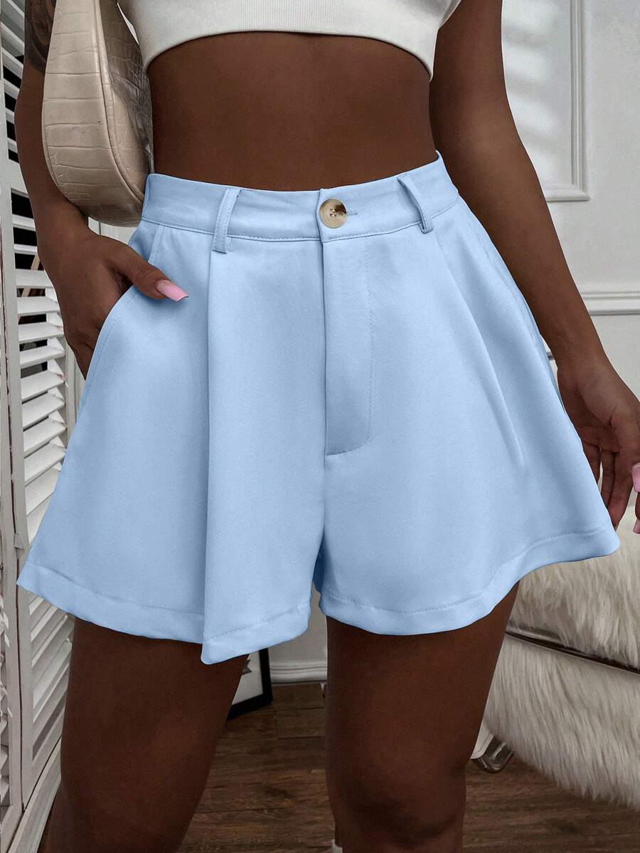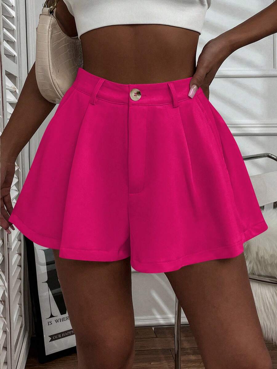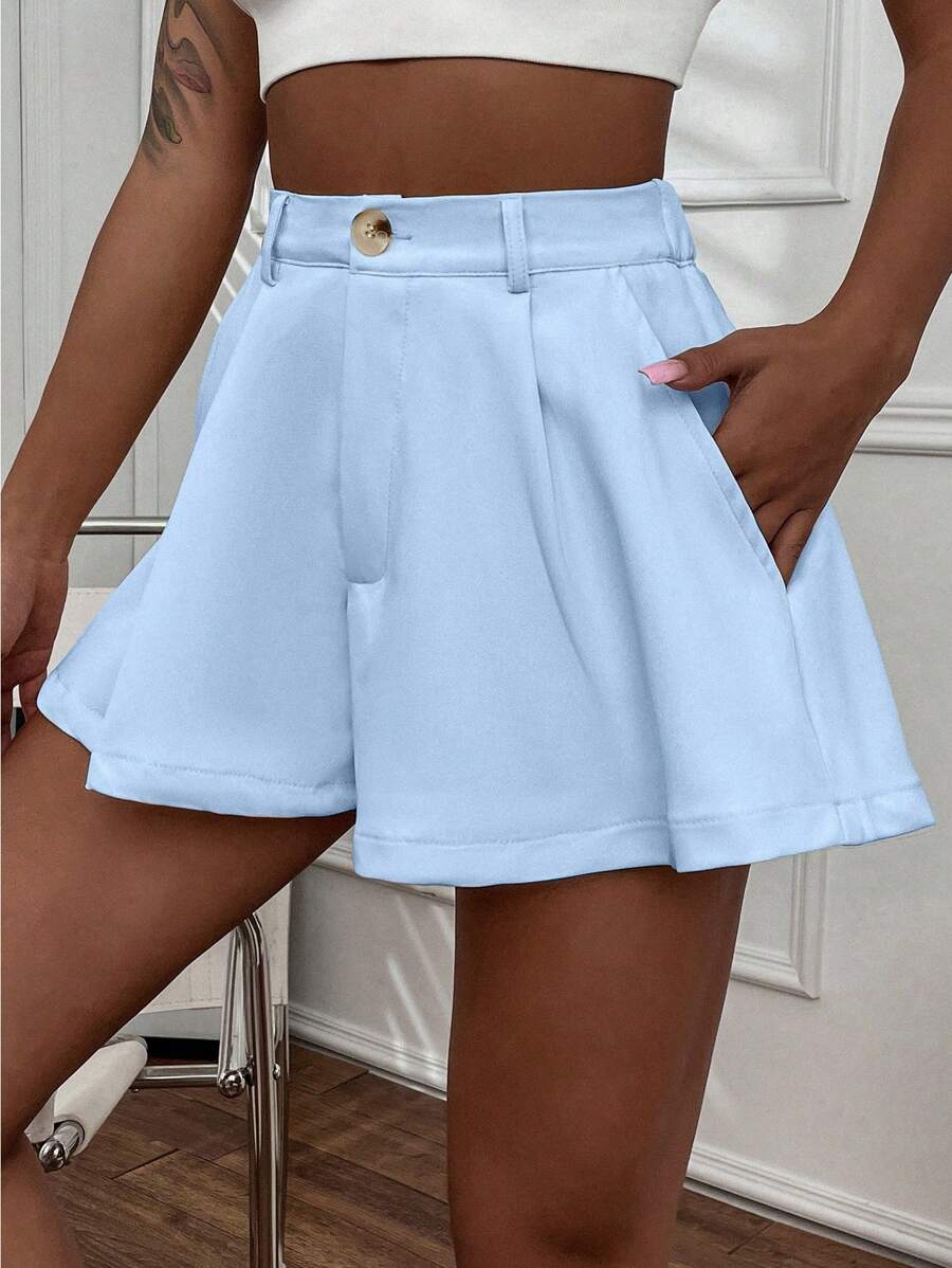Shorts con gamba ampia monocolore piegato