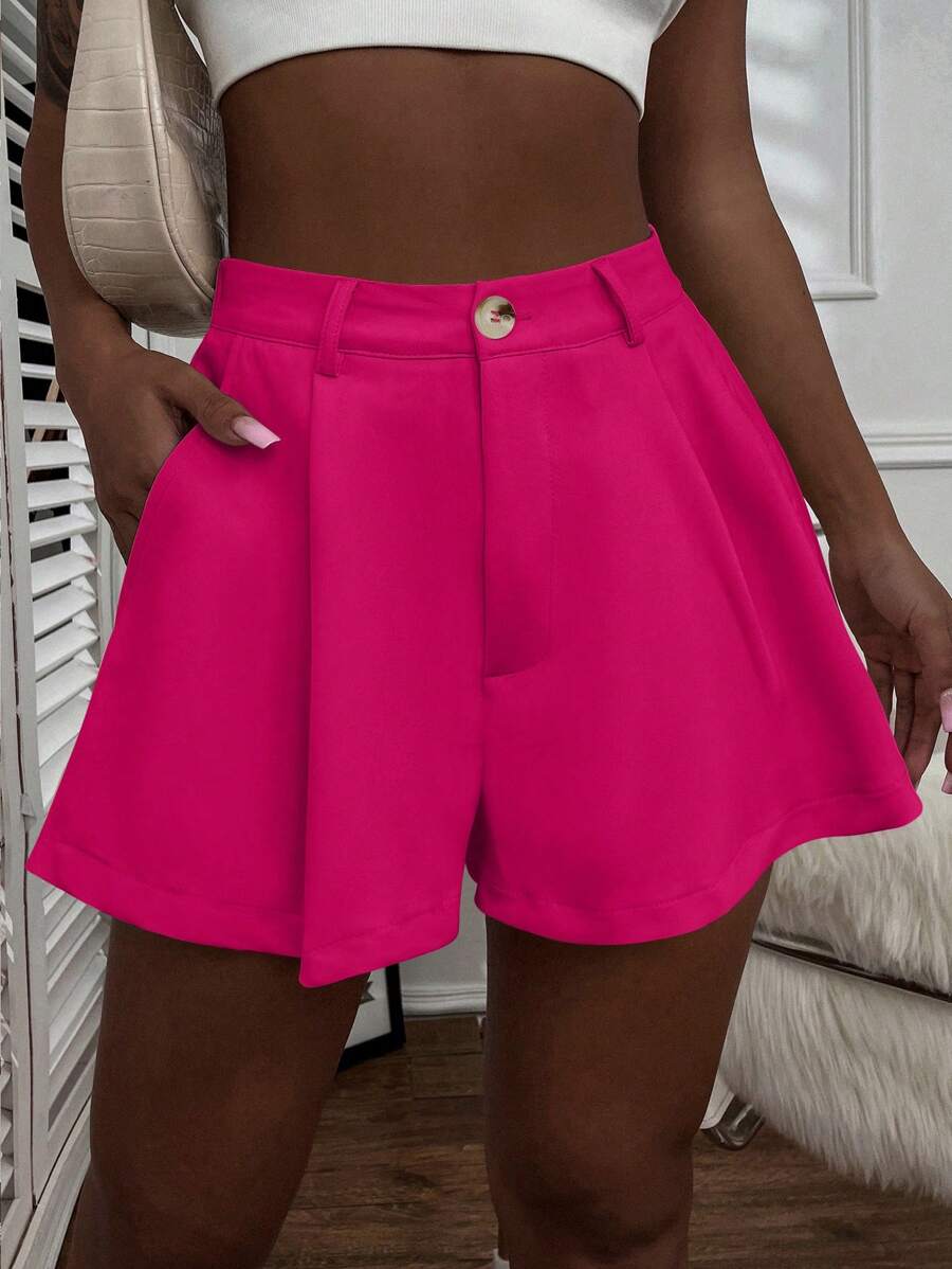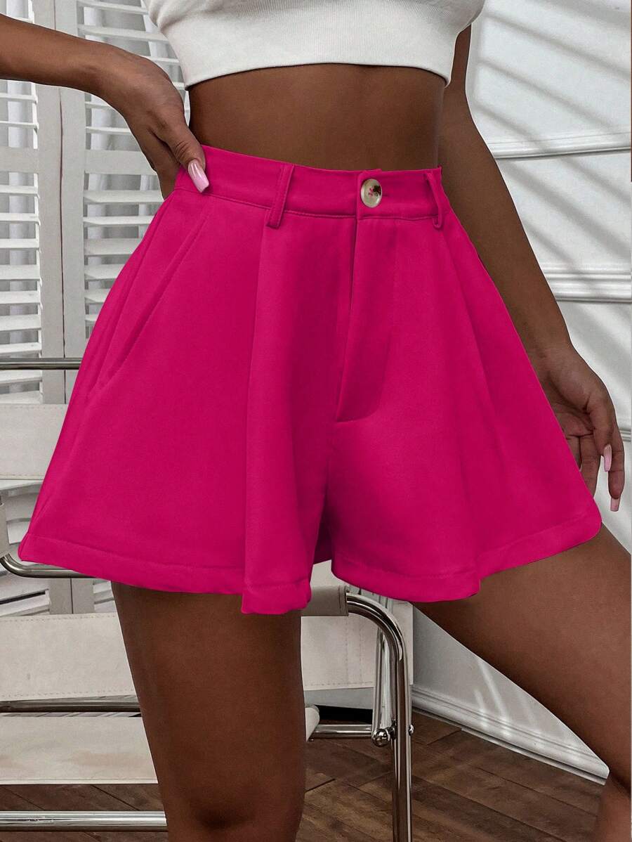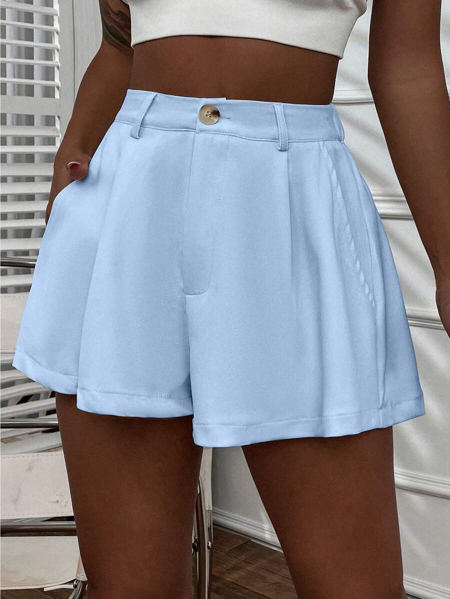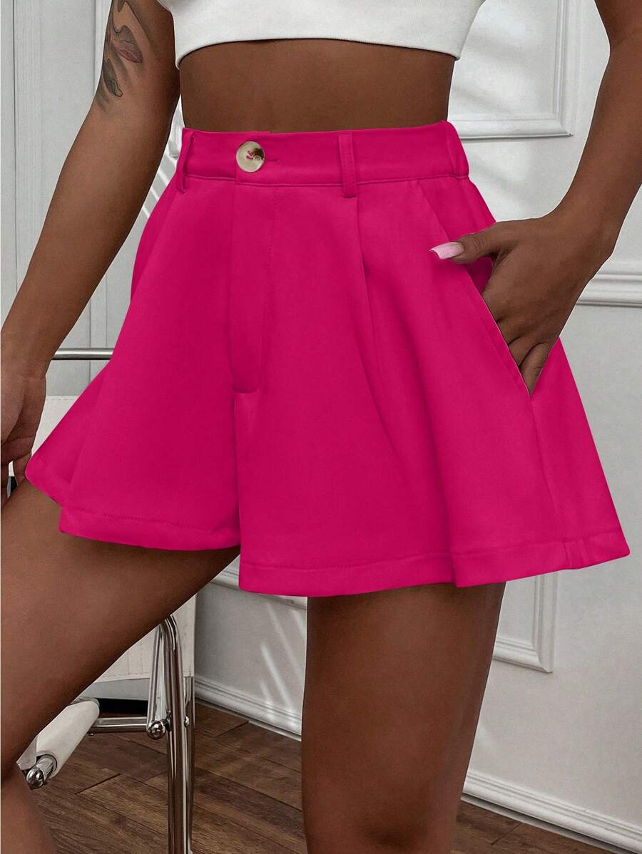 Shorts con gamba ampia monocolore piegato
