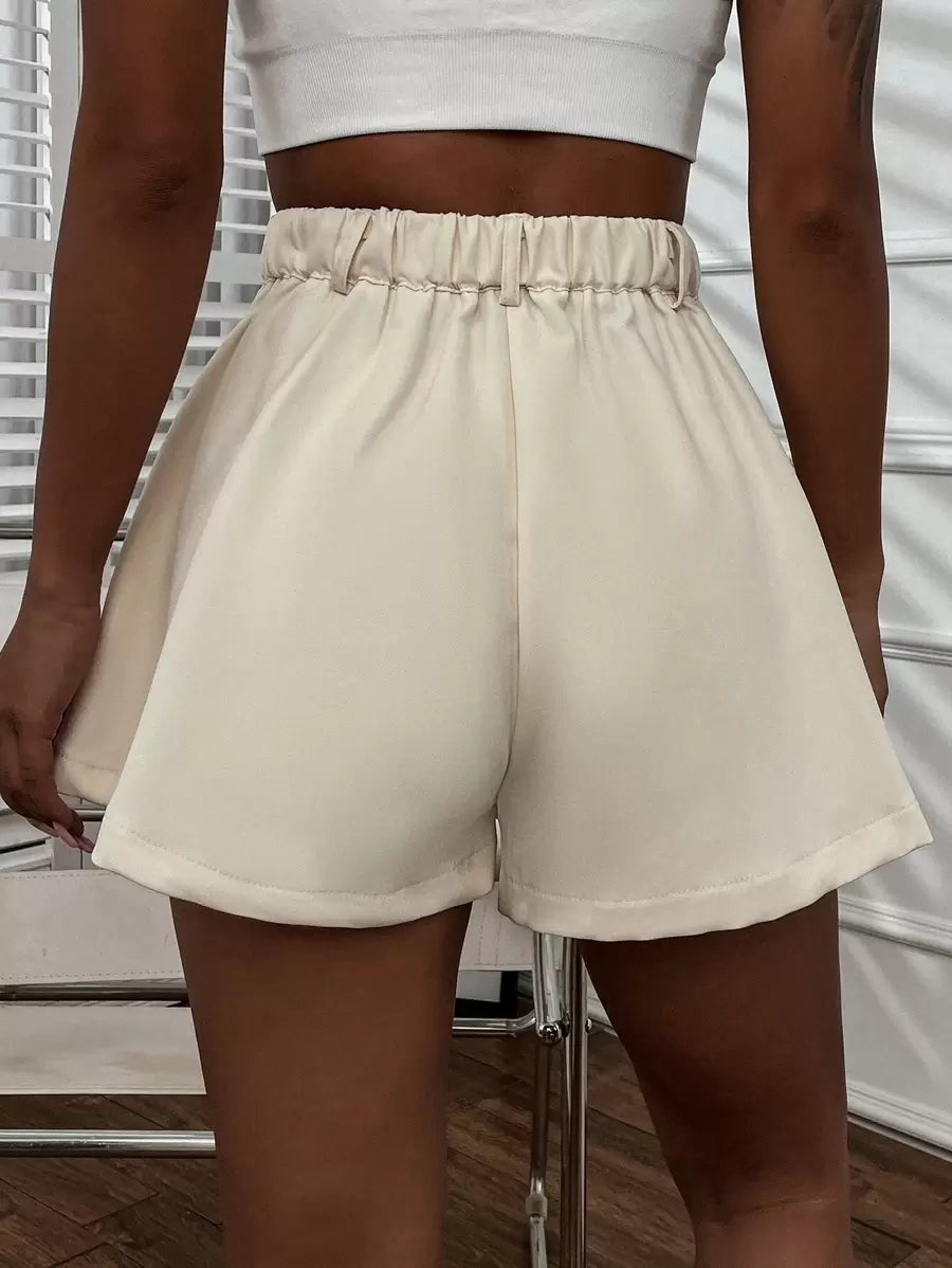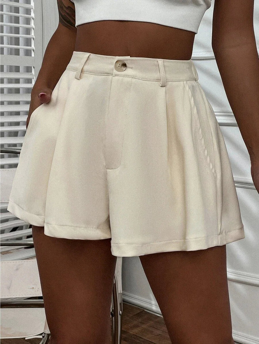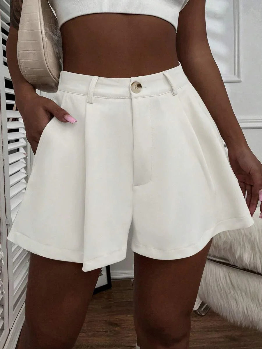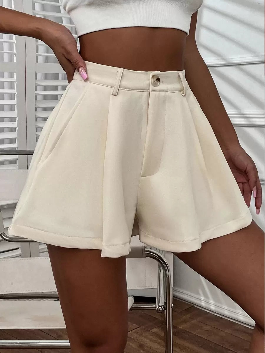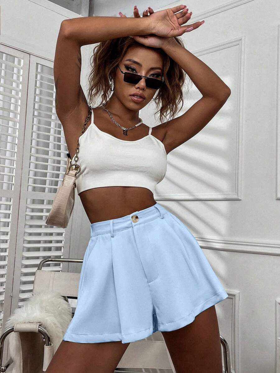 Shorts con gamba ampia monocolore piegato