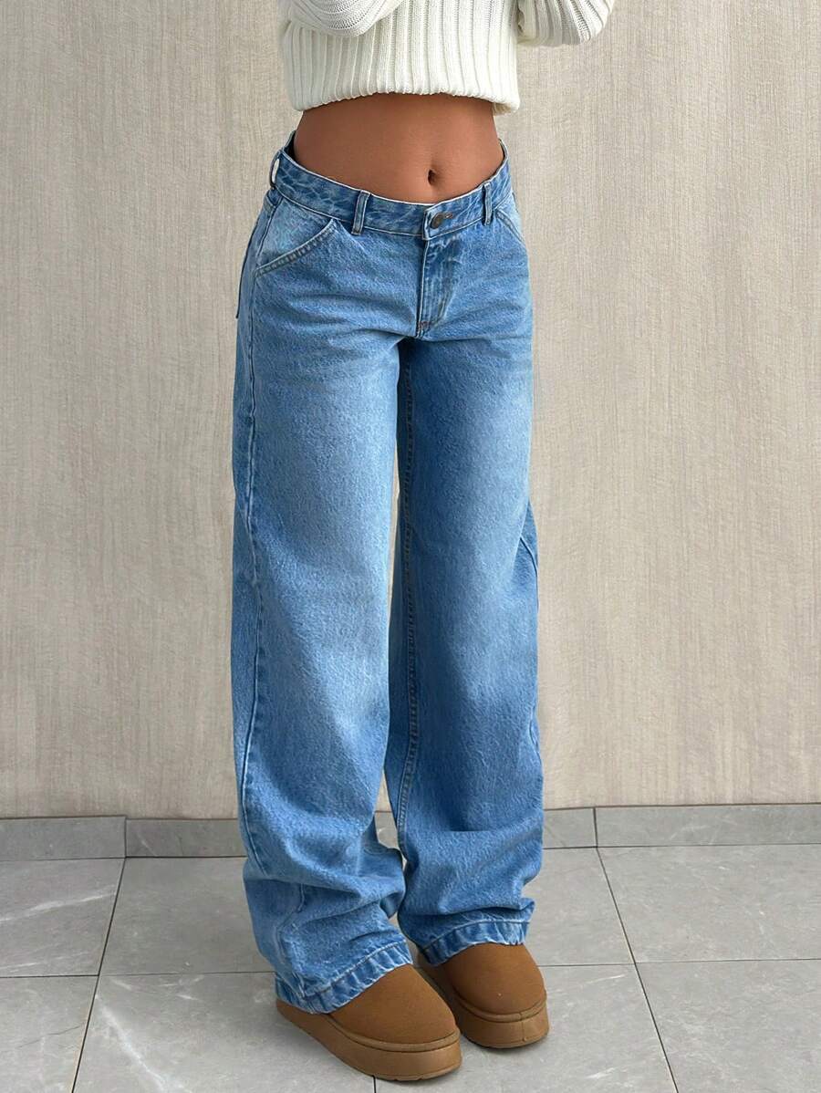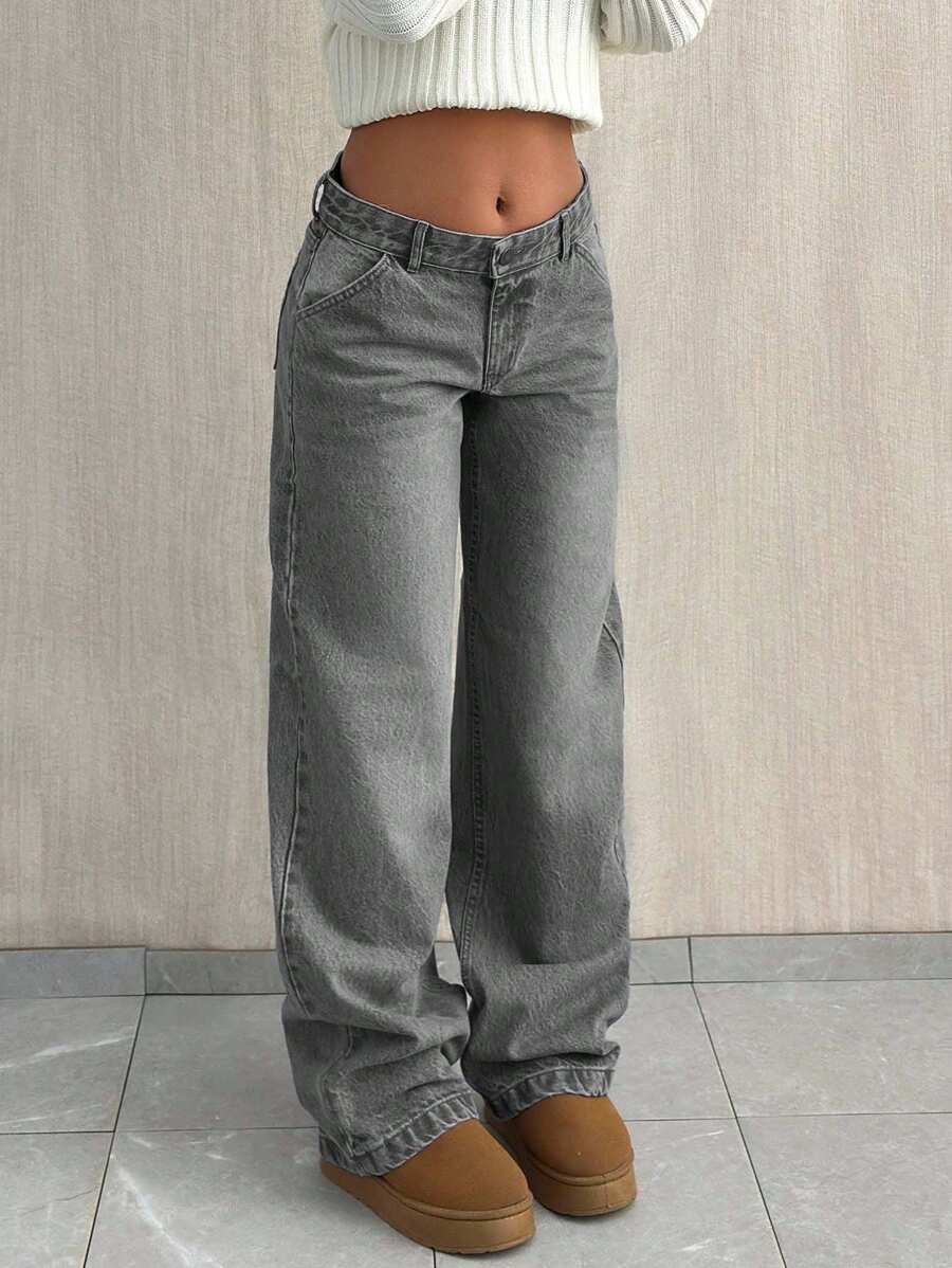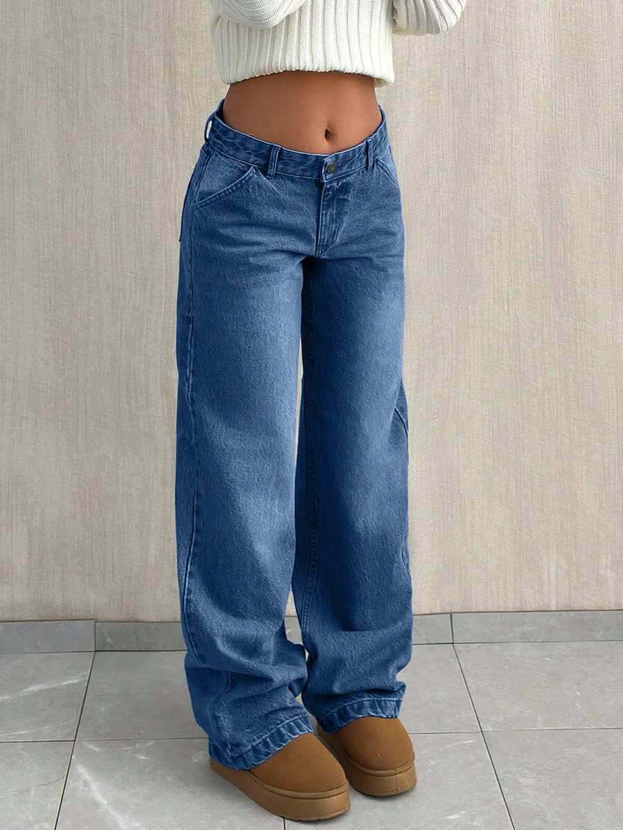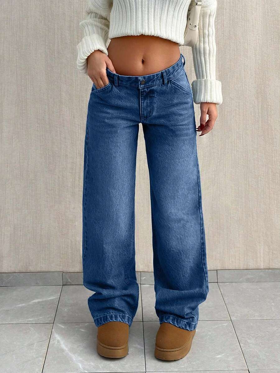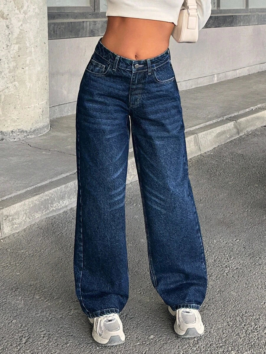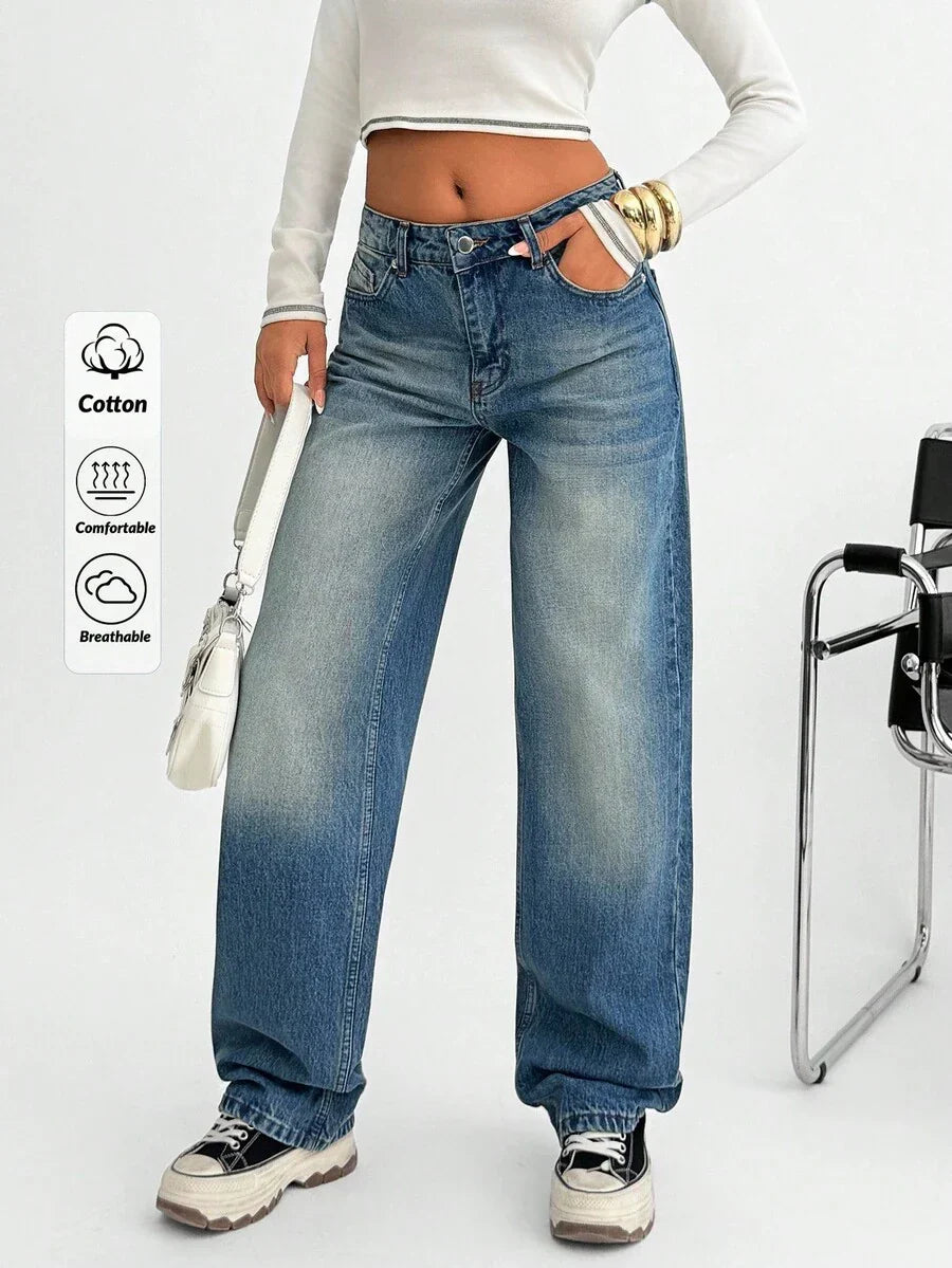Jeans casual larghi a vita media e gamba dritta da donna