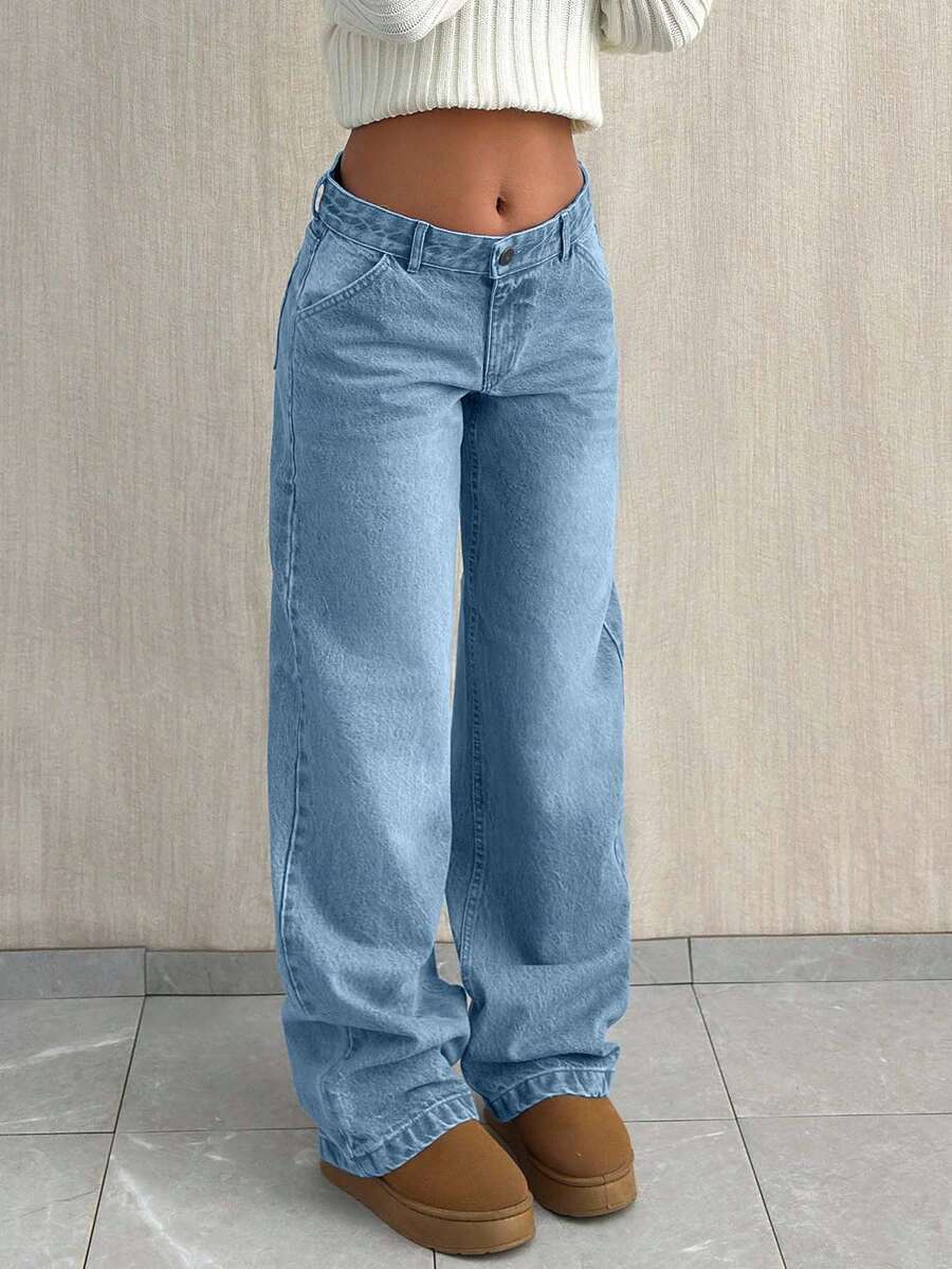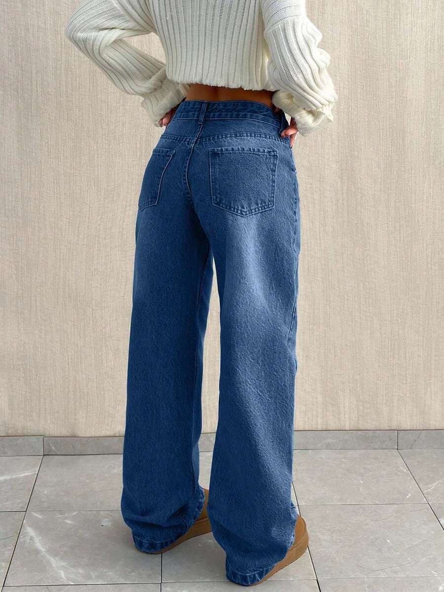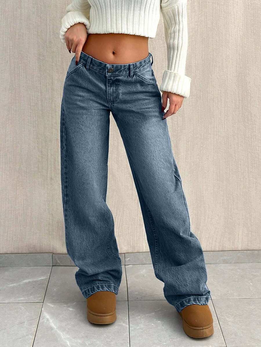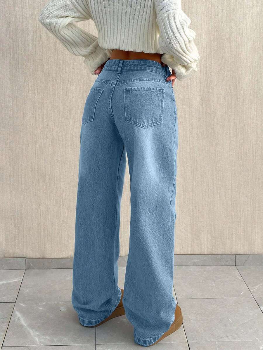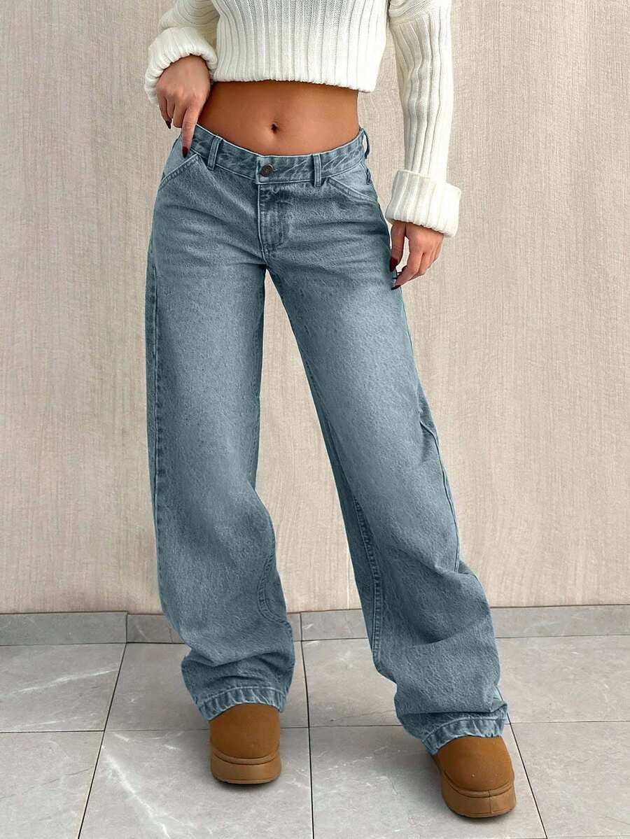 Jeans casual larghi a vita media e gamba dritta da donna