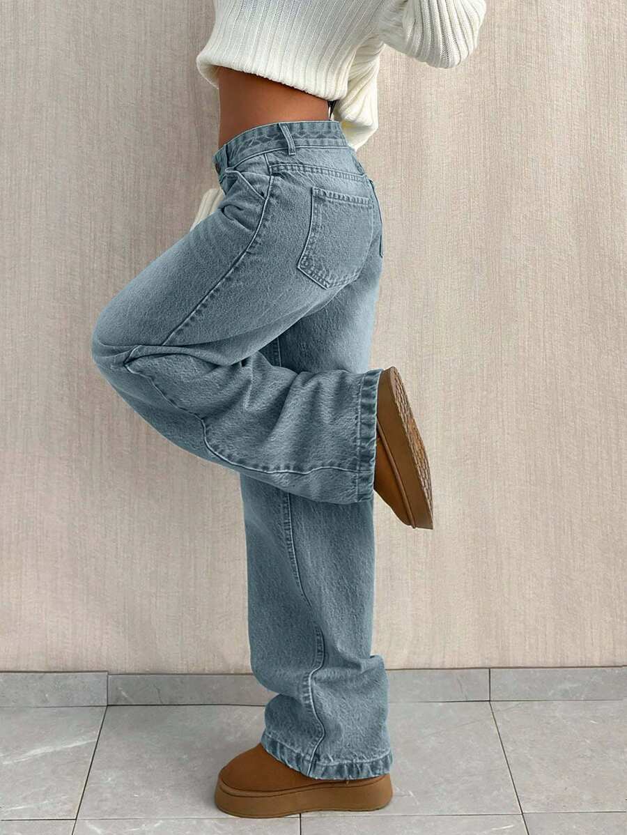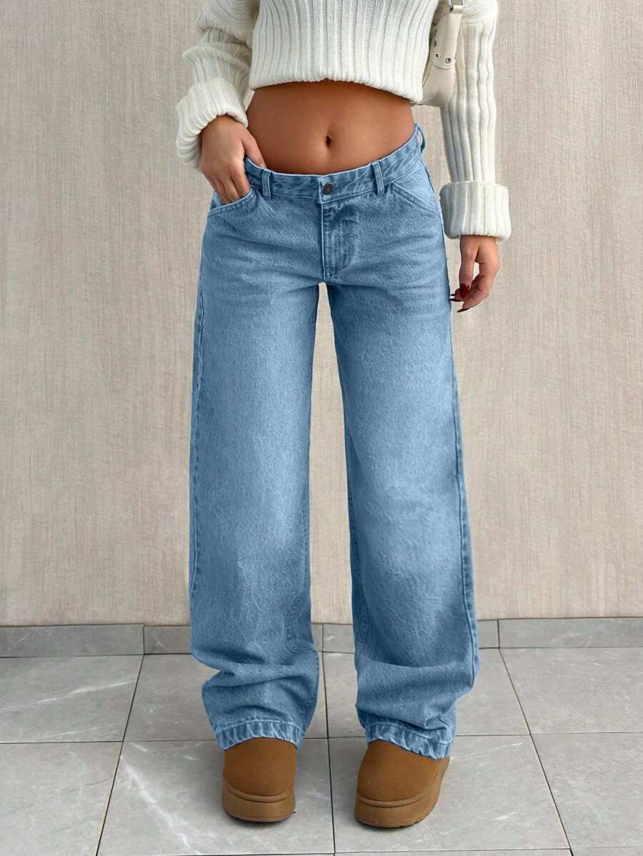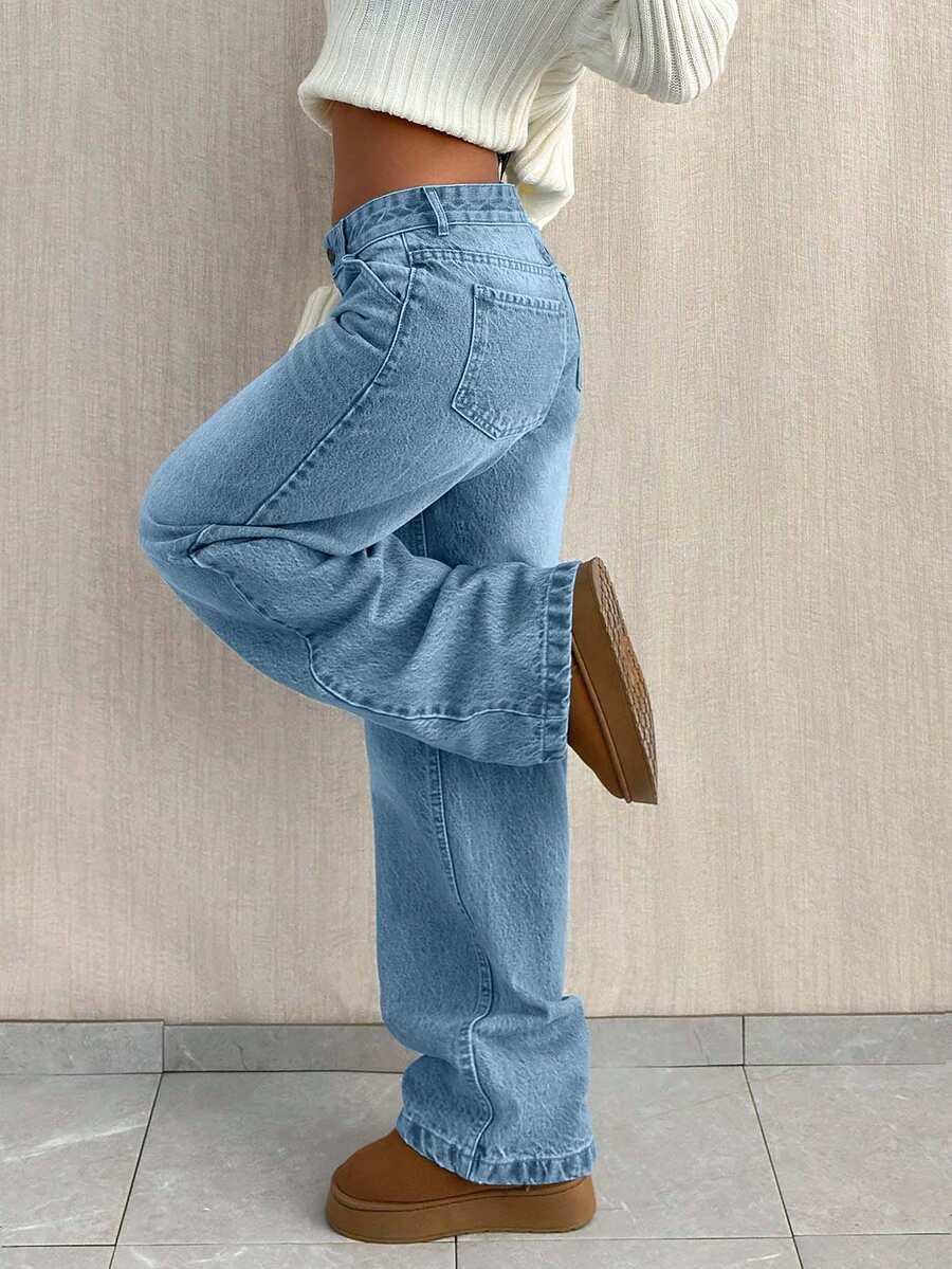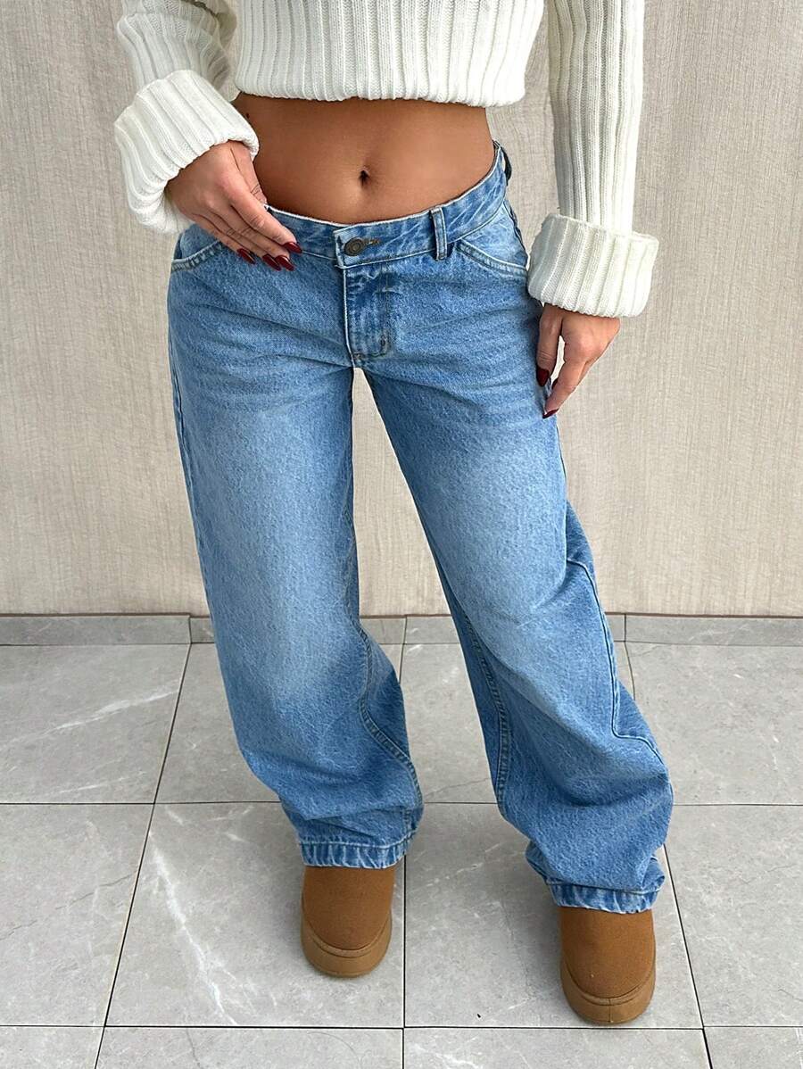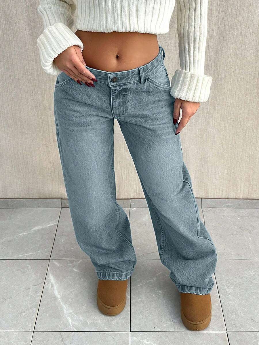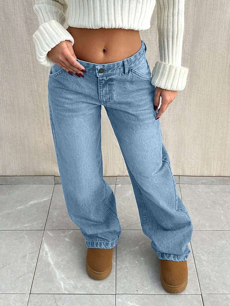 Jeans casual larghi a vita media e gamba dritta da donna