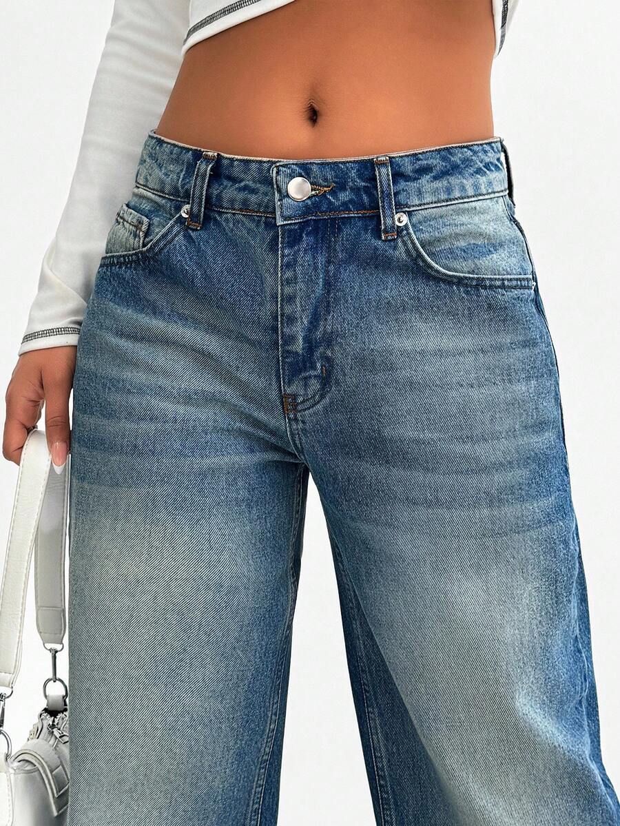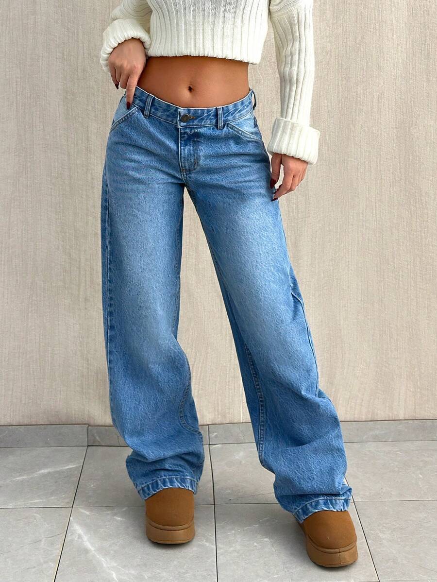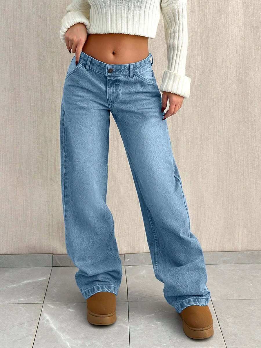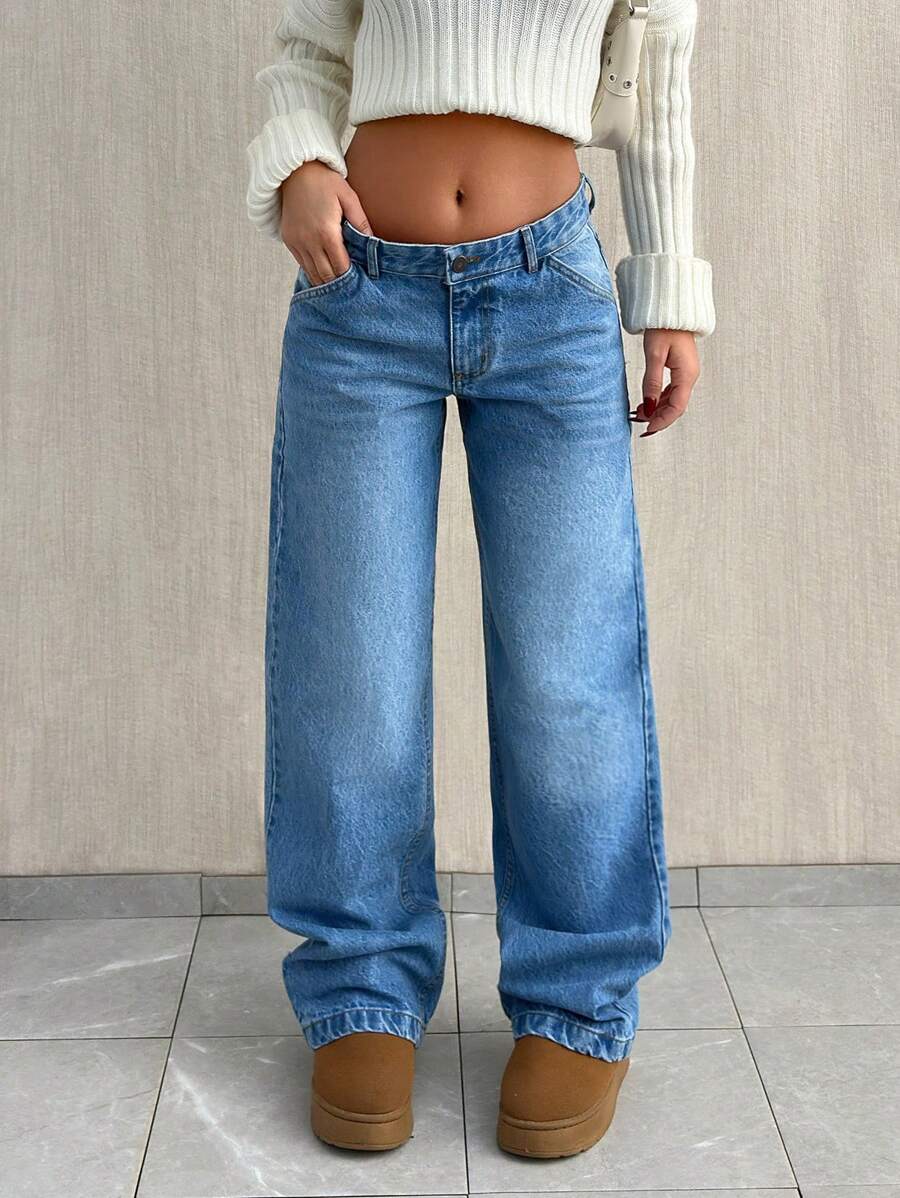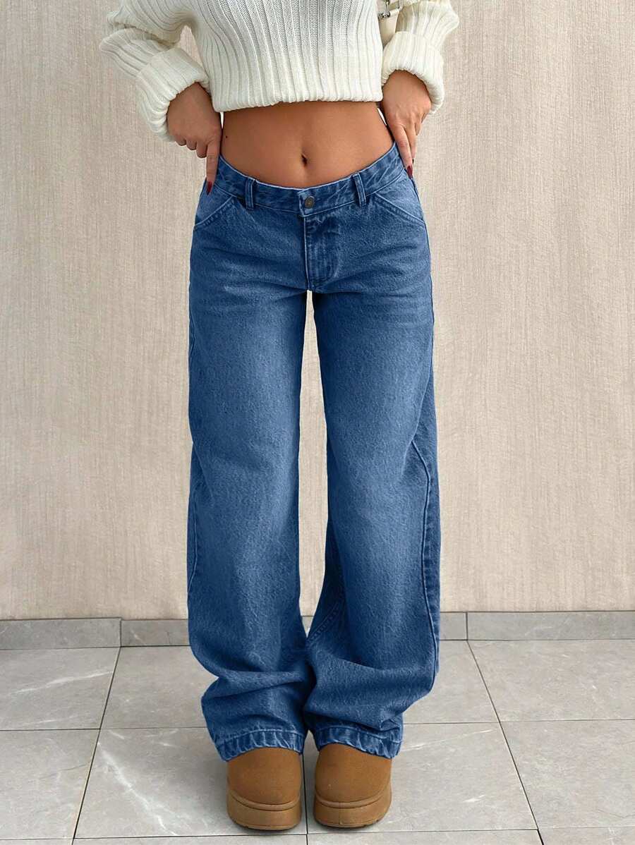 Jeans casual larghi a vita media e gamba dritta da donna