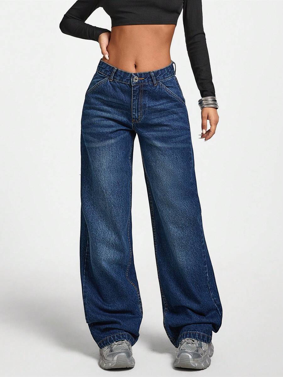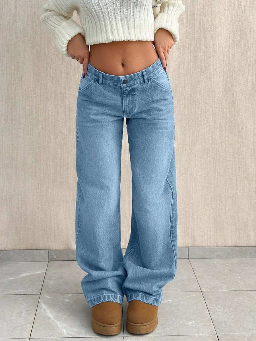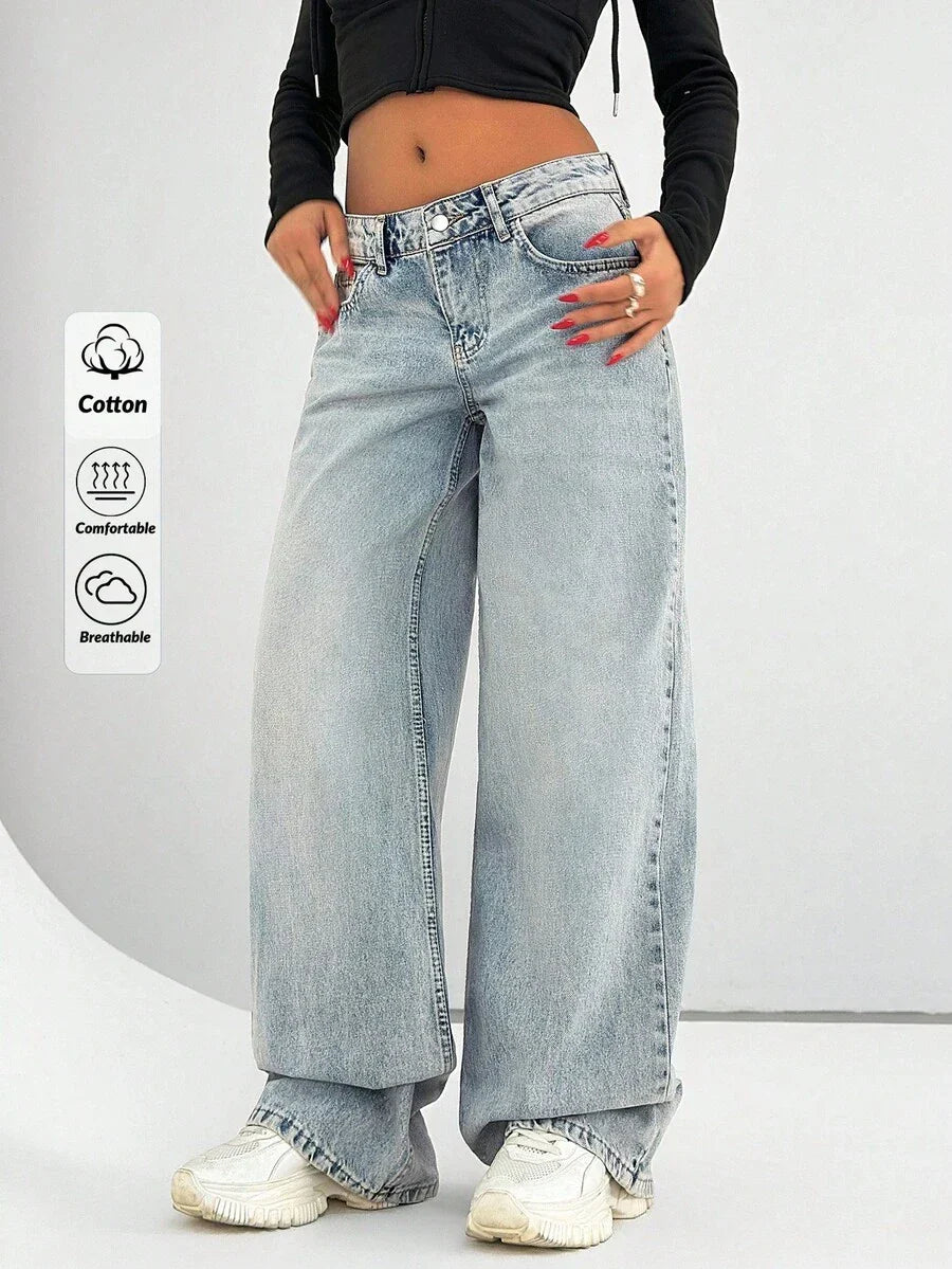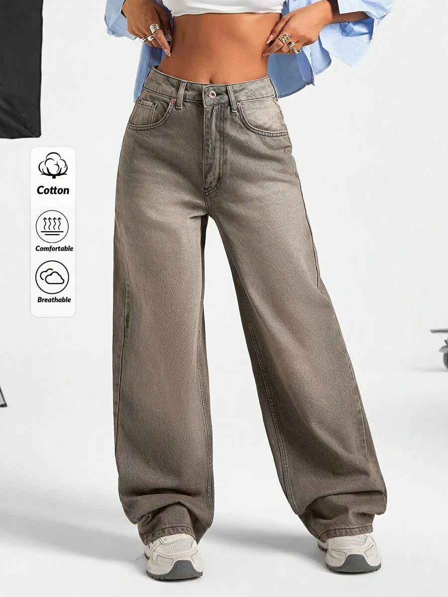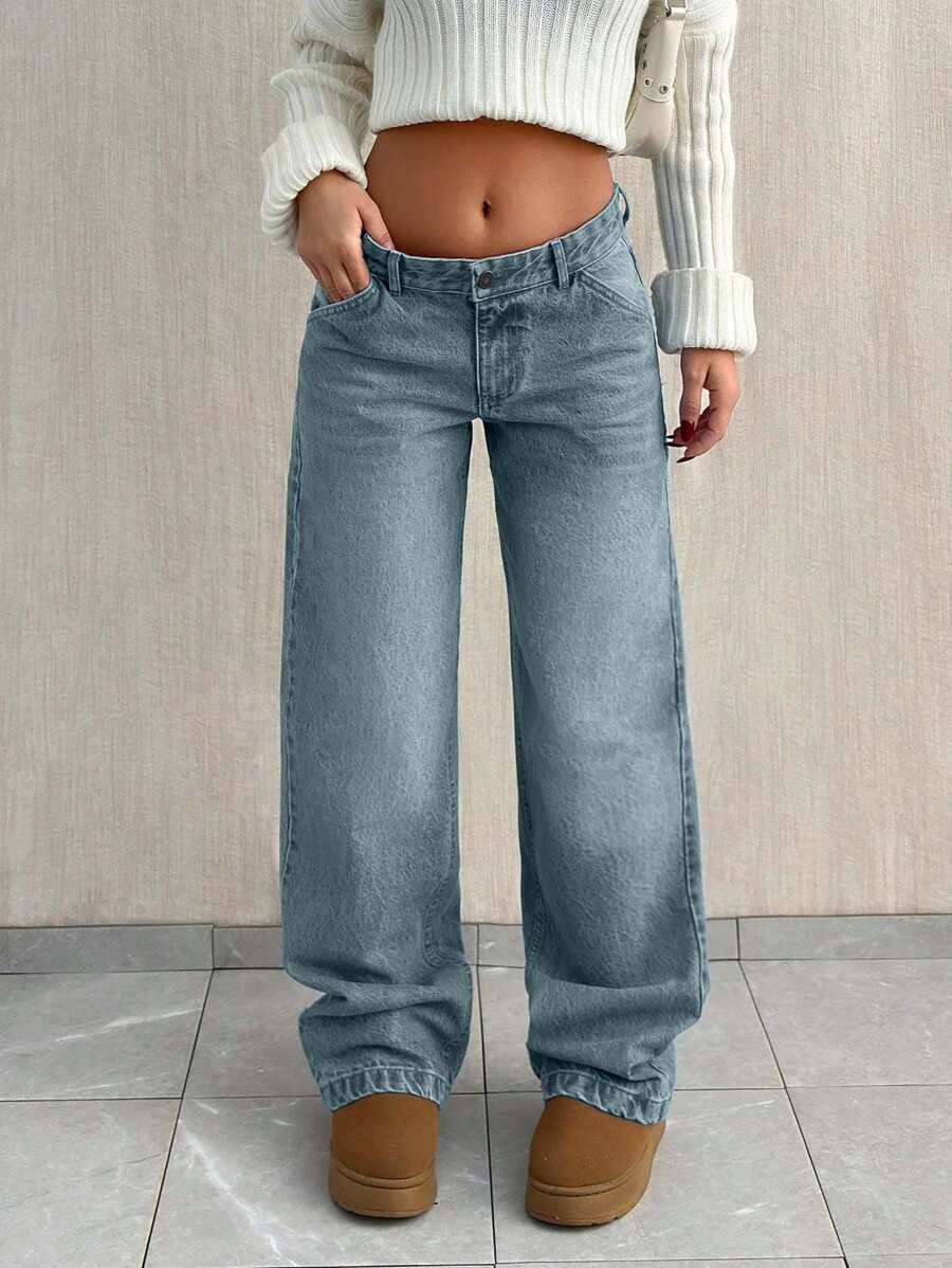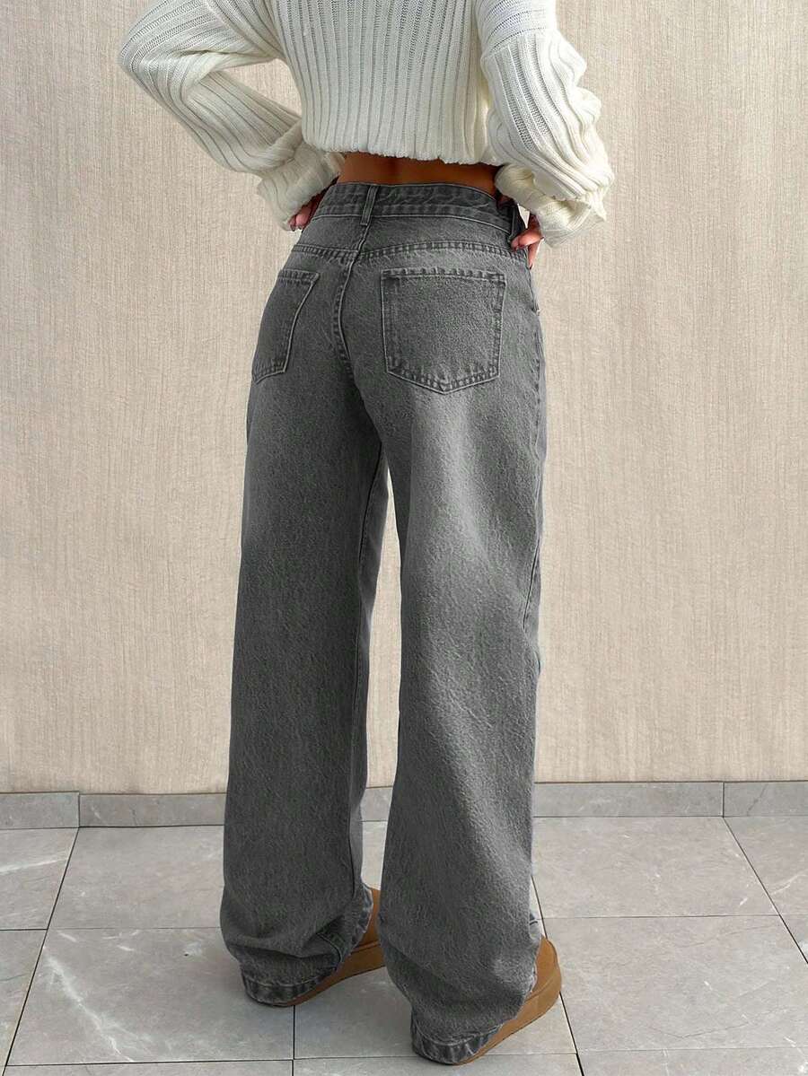 Jeans casual larghi a vita media e gamba dritta da donna
