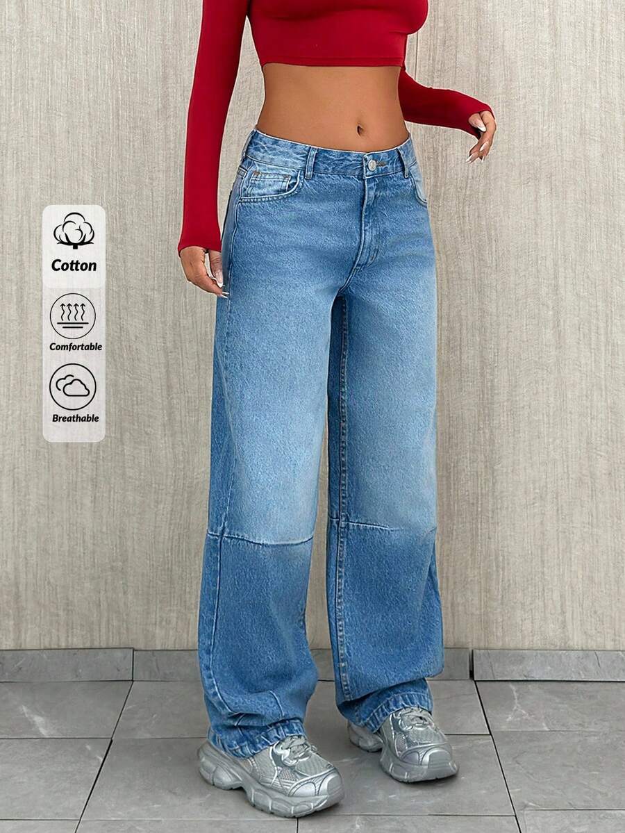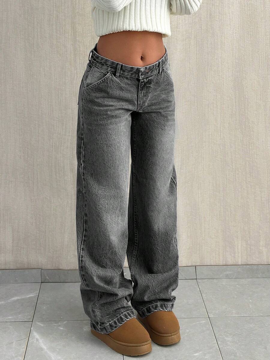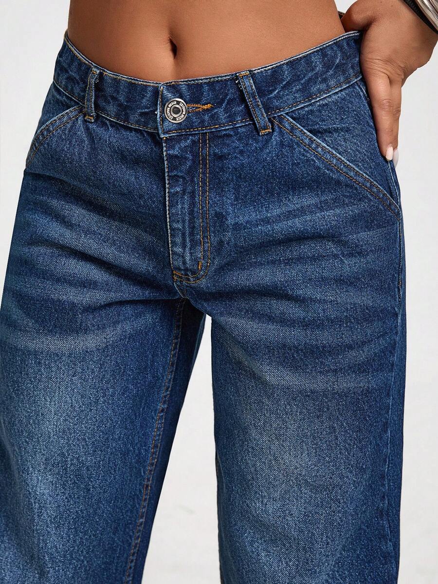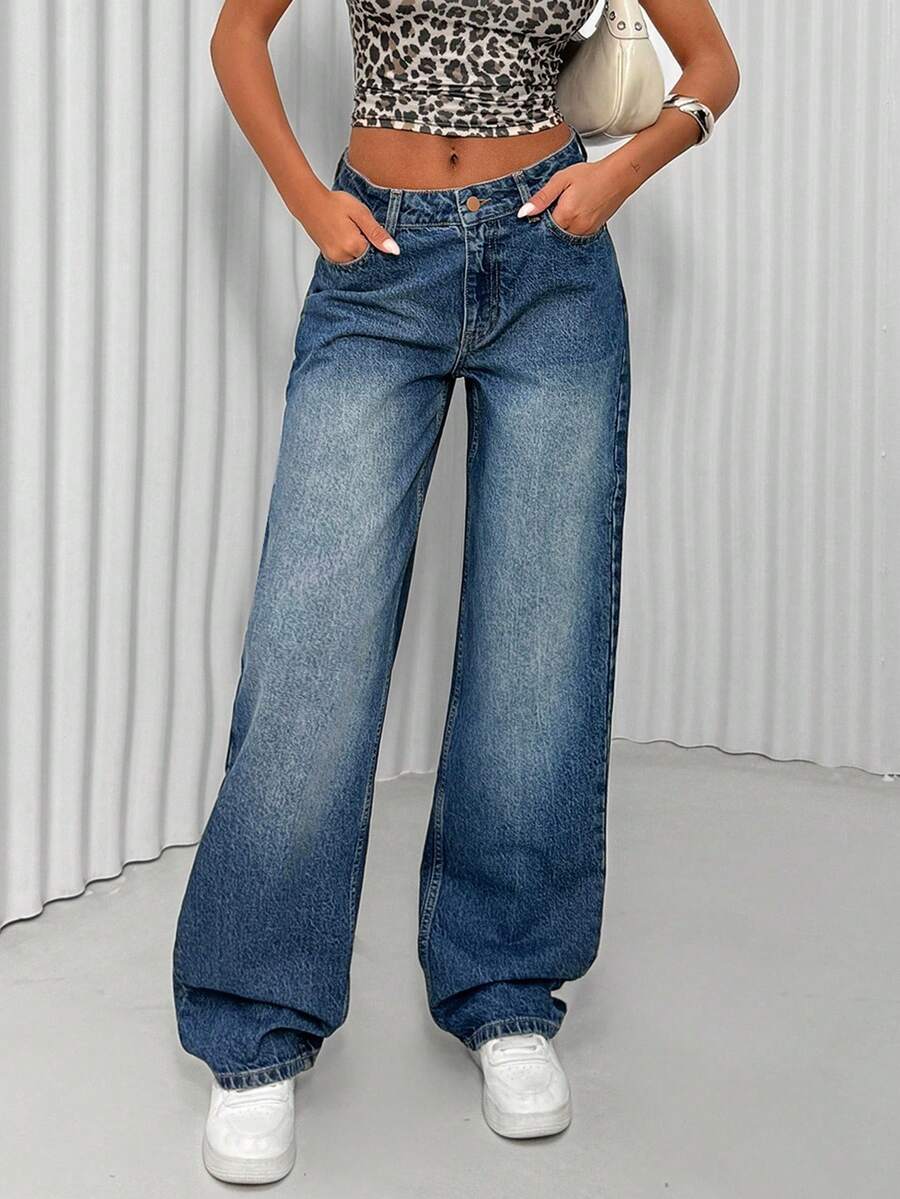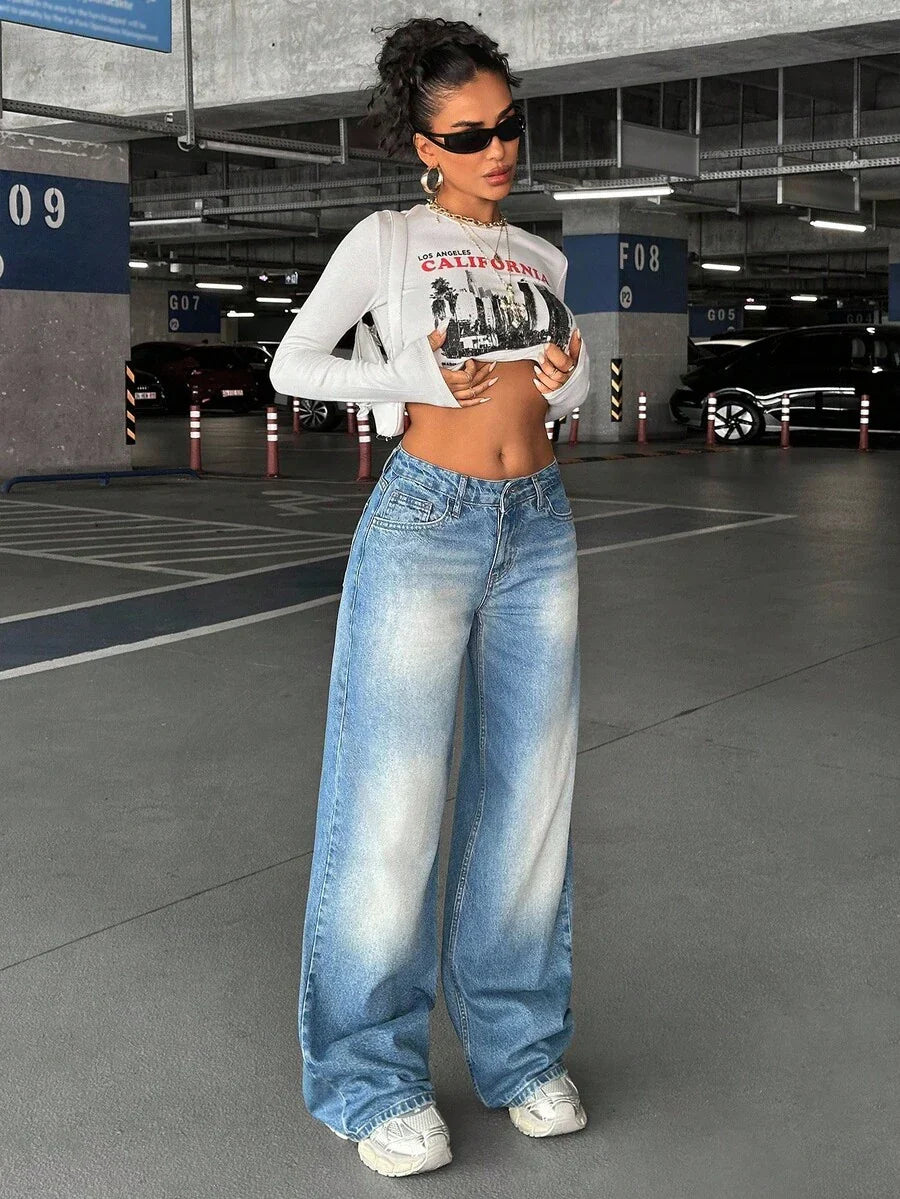 Jeans casual larghi a vita media e gamba dritta da donna